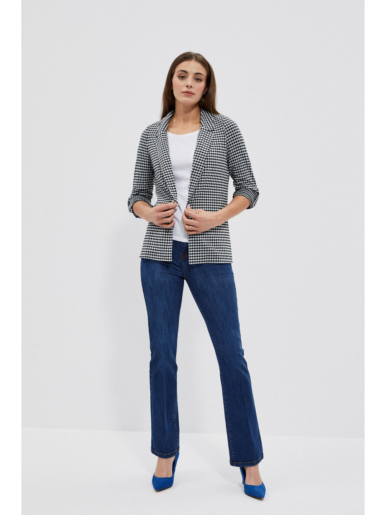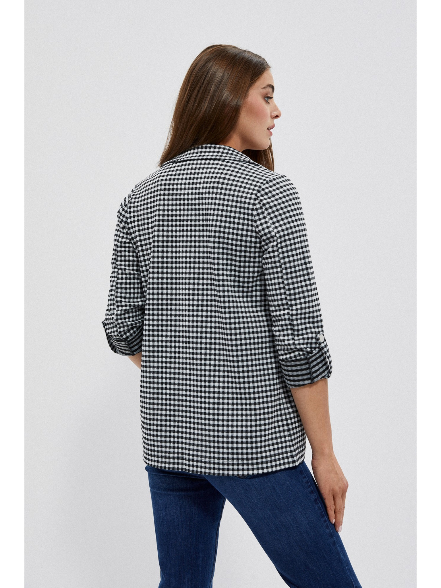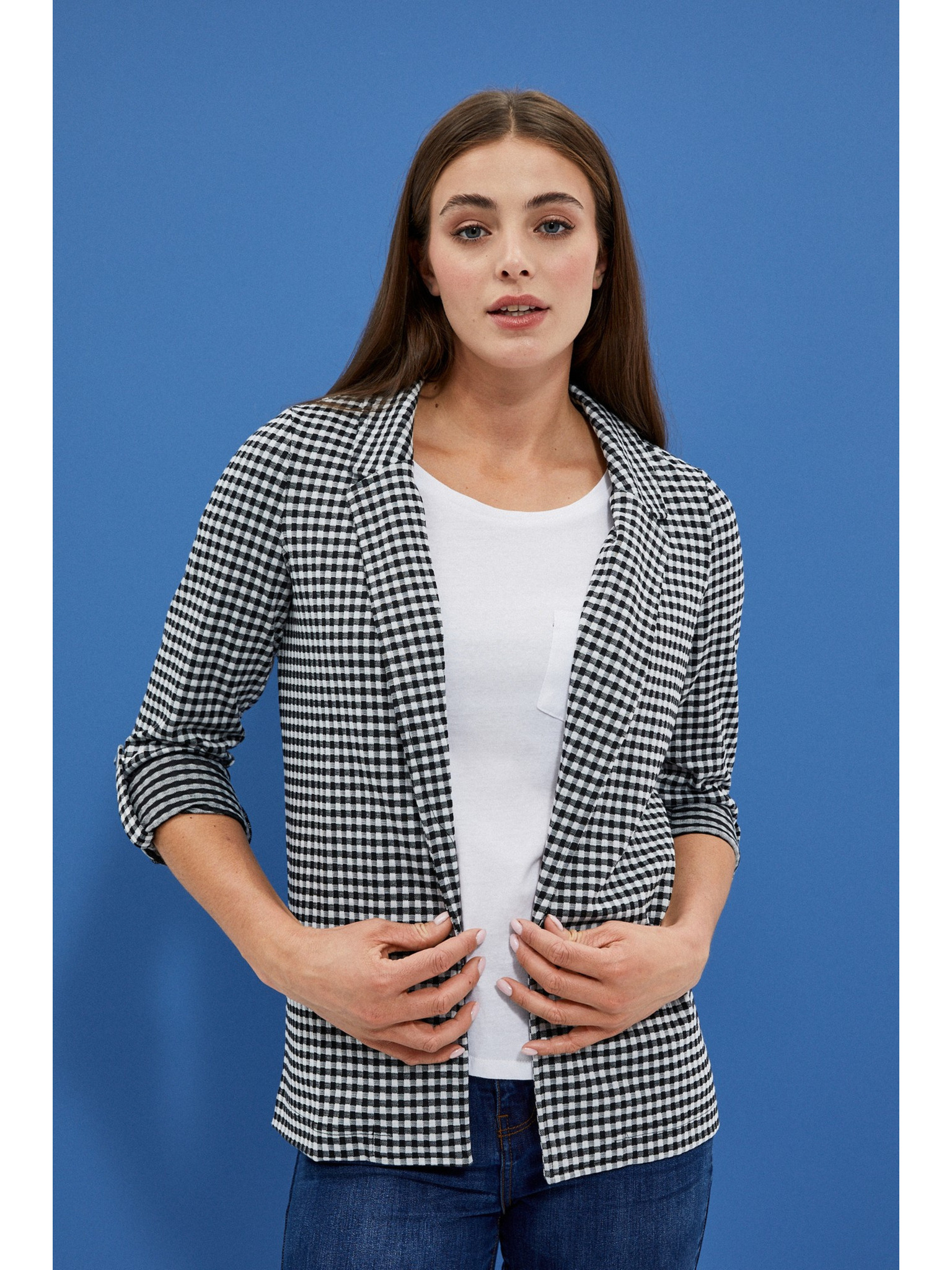 Modrá ľanová bunda s 3/4 rukávmi Moodo
