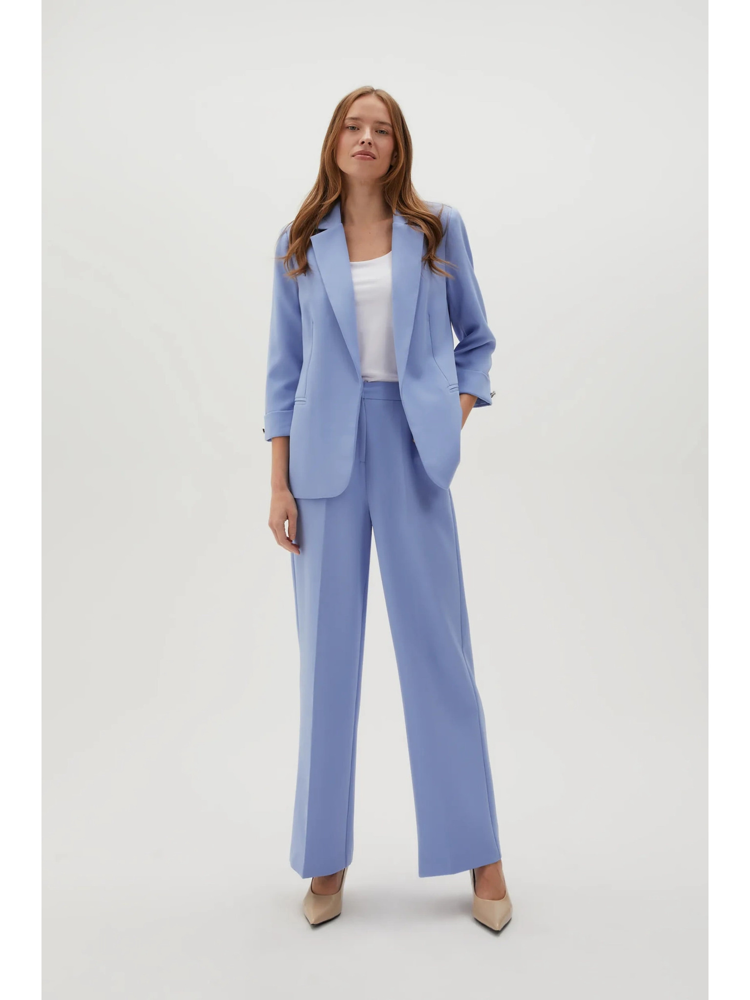 Béžové sako so záhybmi na rukávoch 3/4 Moodo