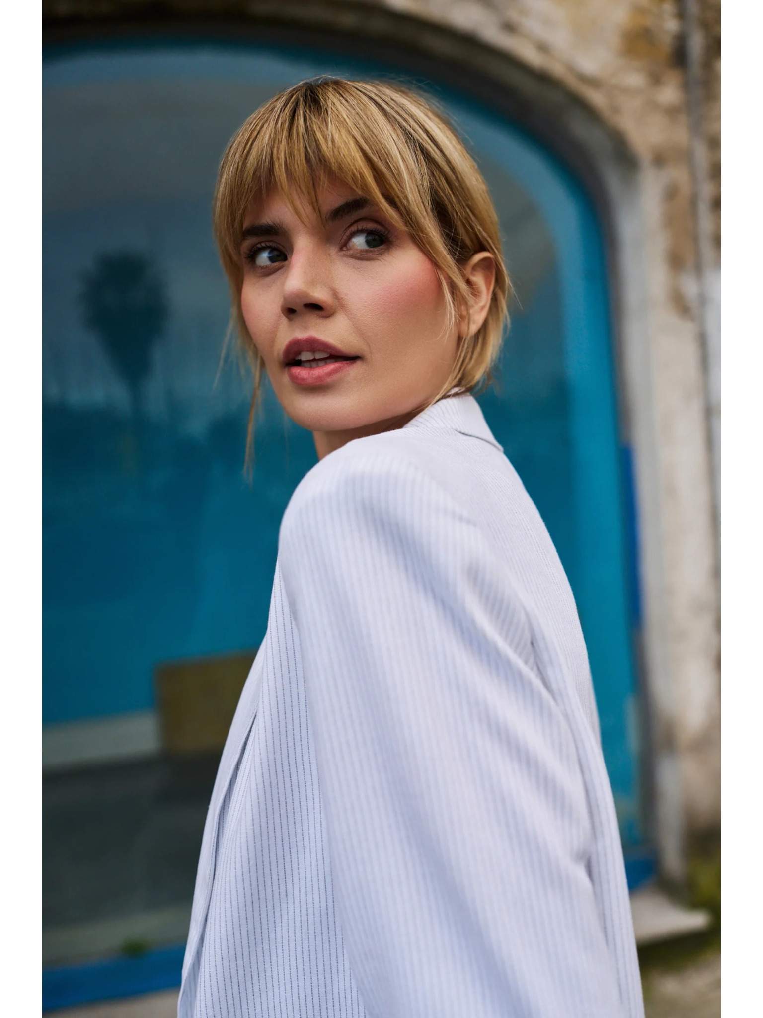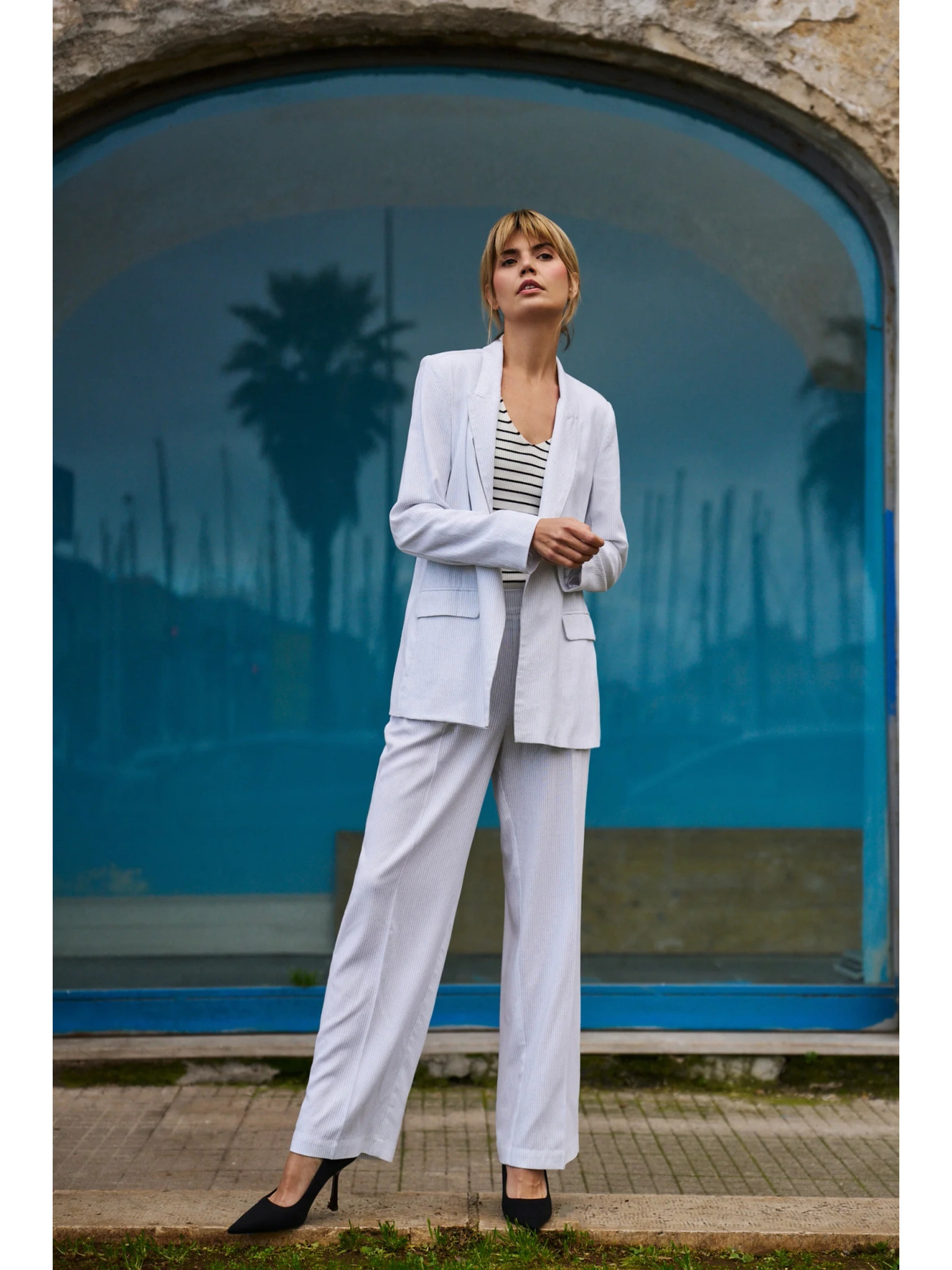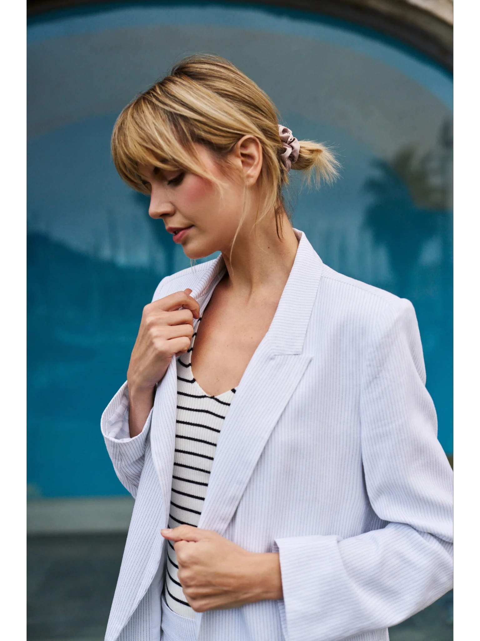 Modrá ľanová bunda s 3/4 rukávmi Moodo