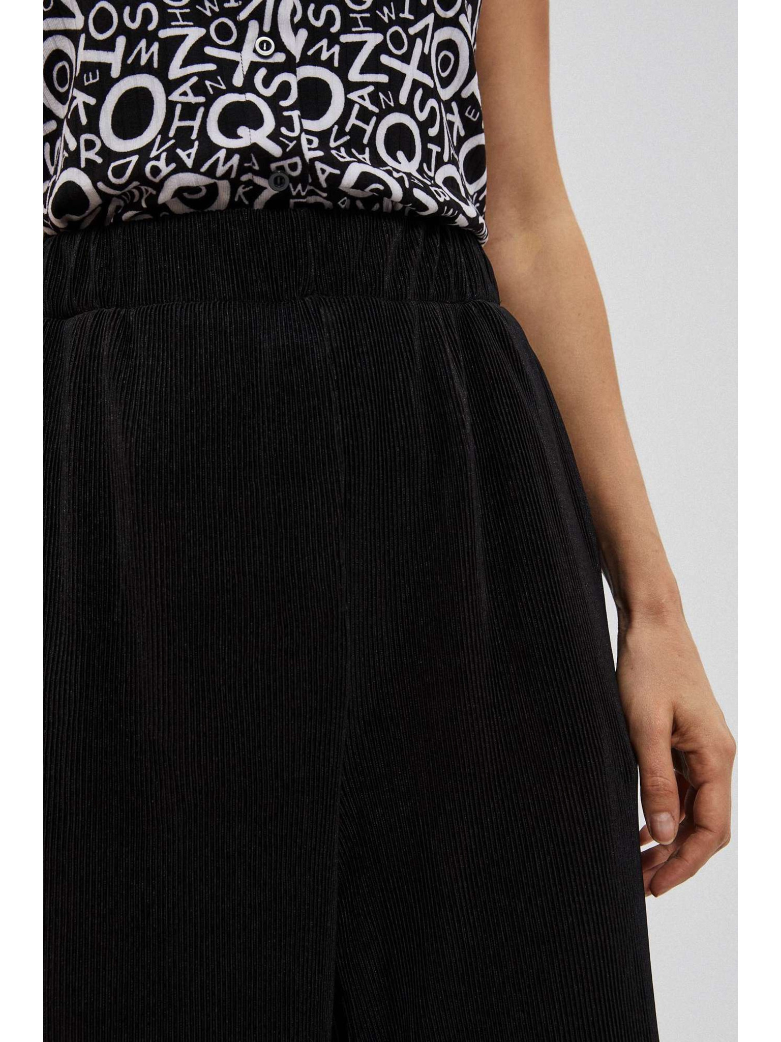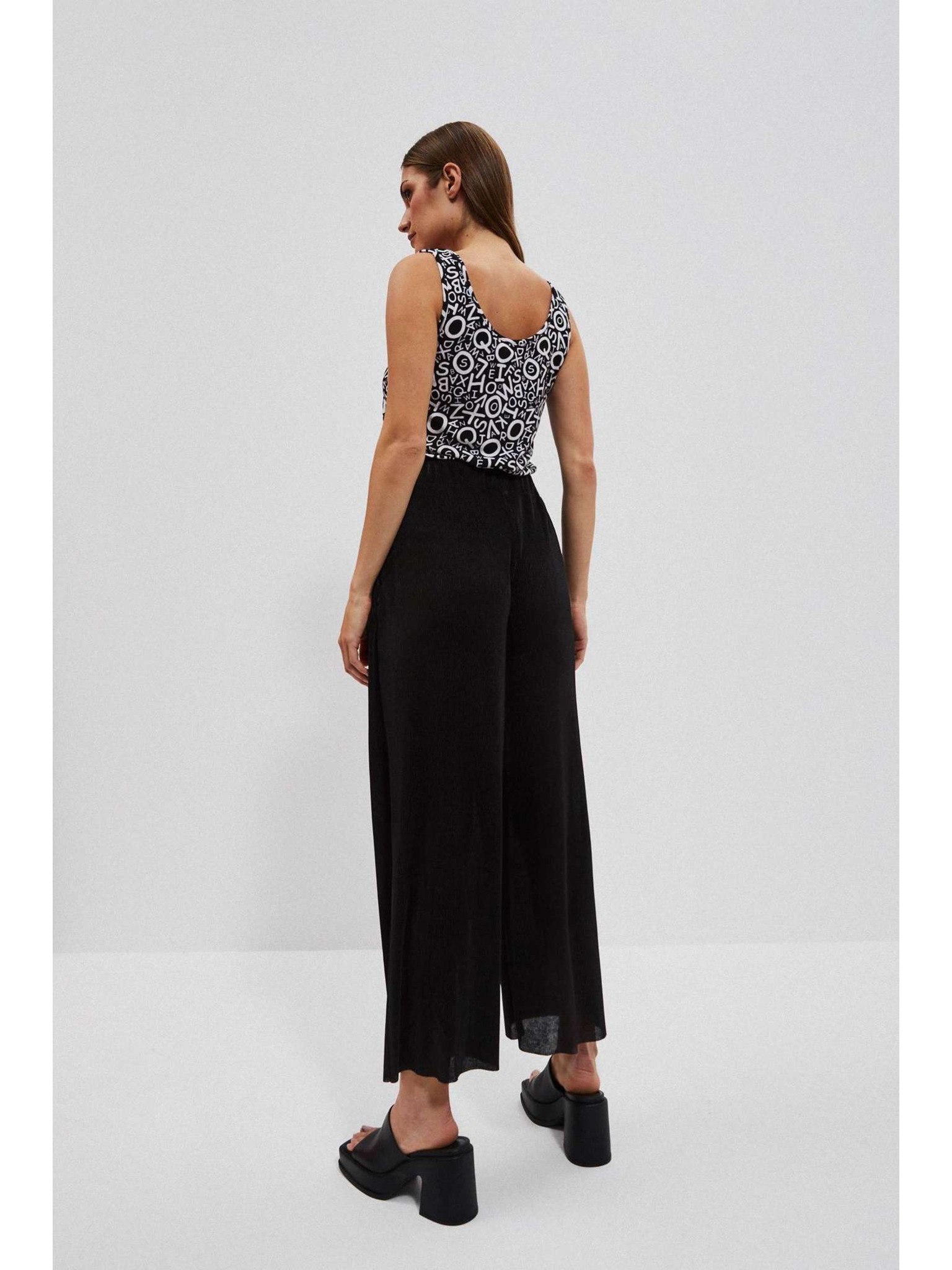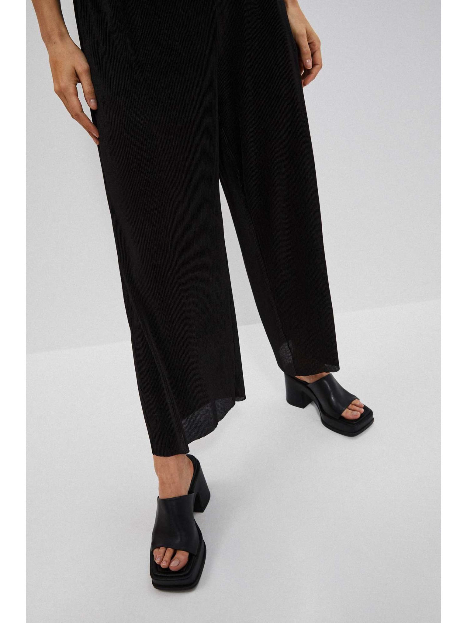 Čierne nohavice so širokými nohavicami z rebrovaného materiálu Moodo