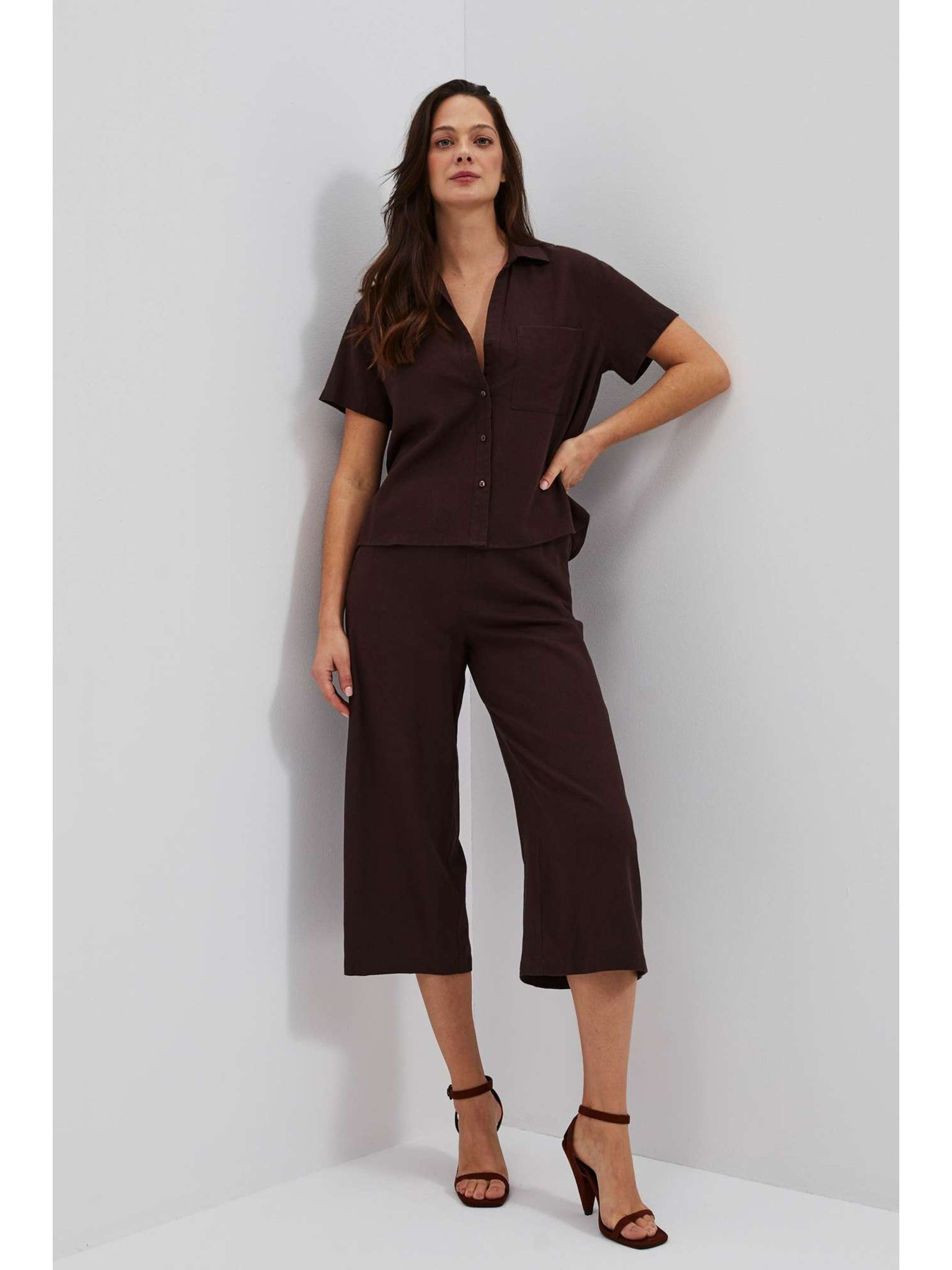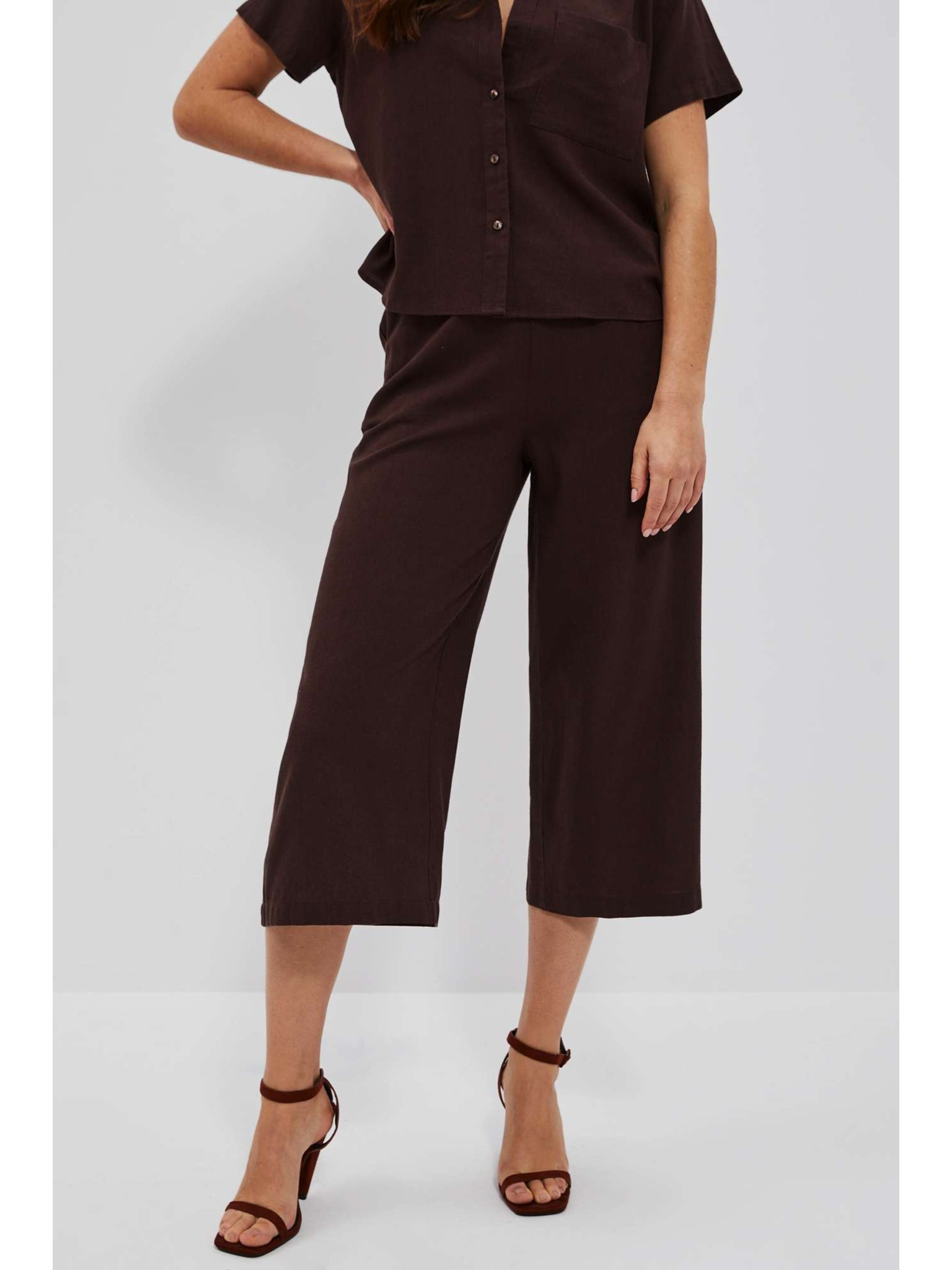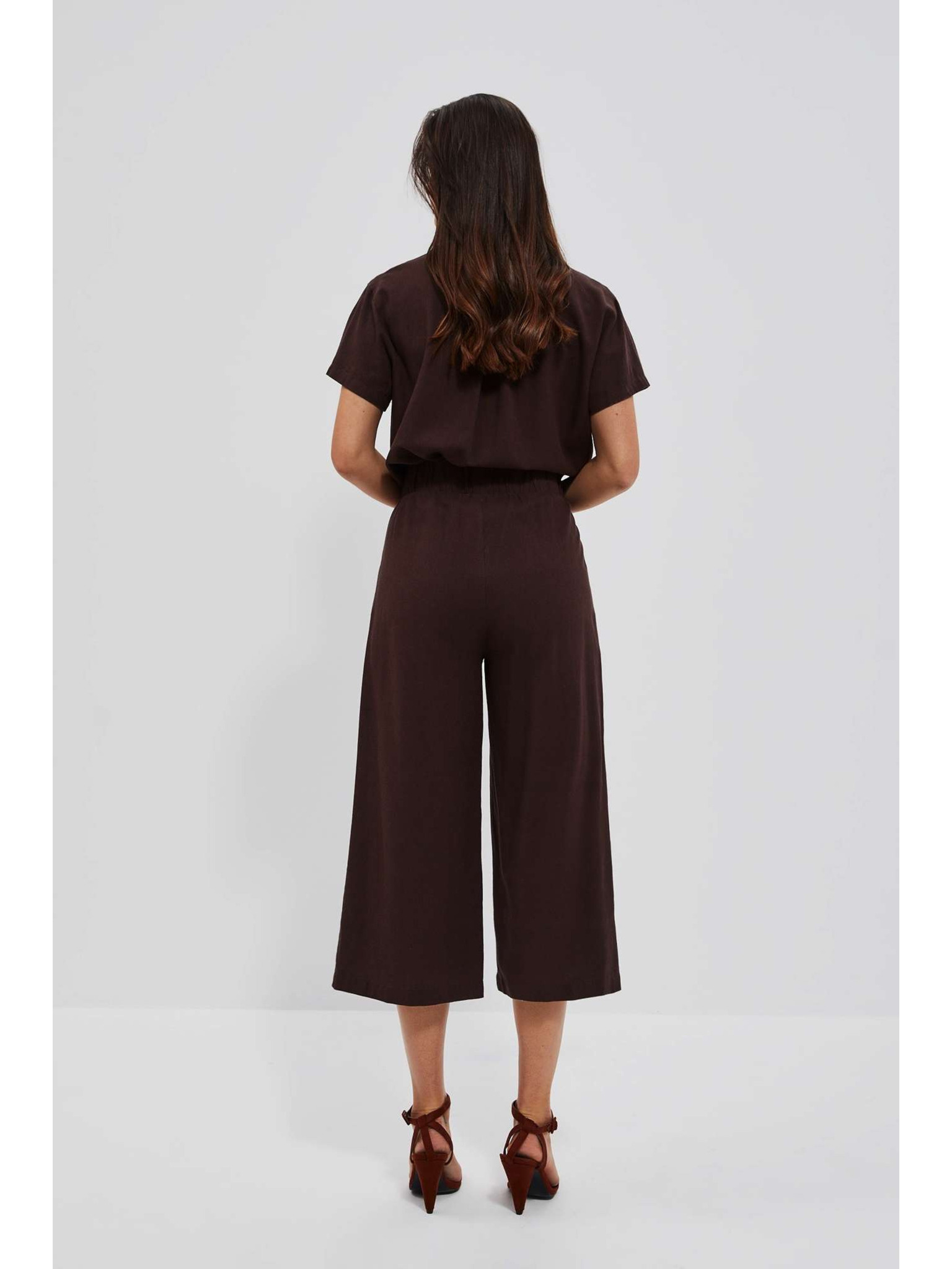 Tmavohnedé nohavicové sukne s gumou v páse Moodo