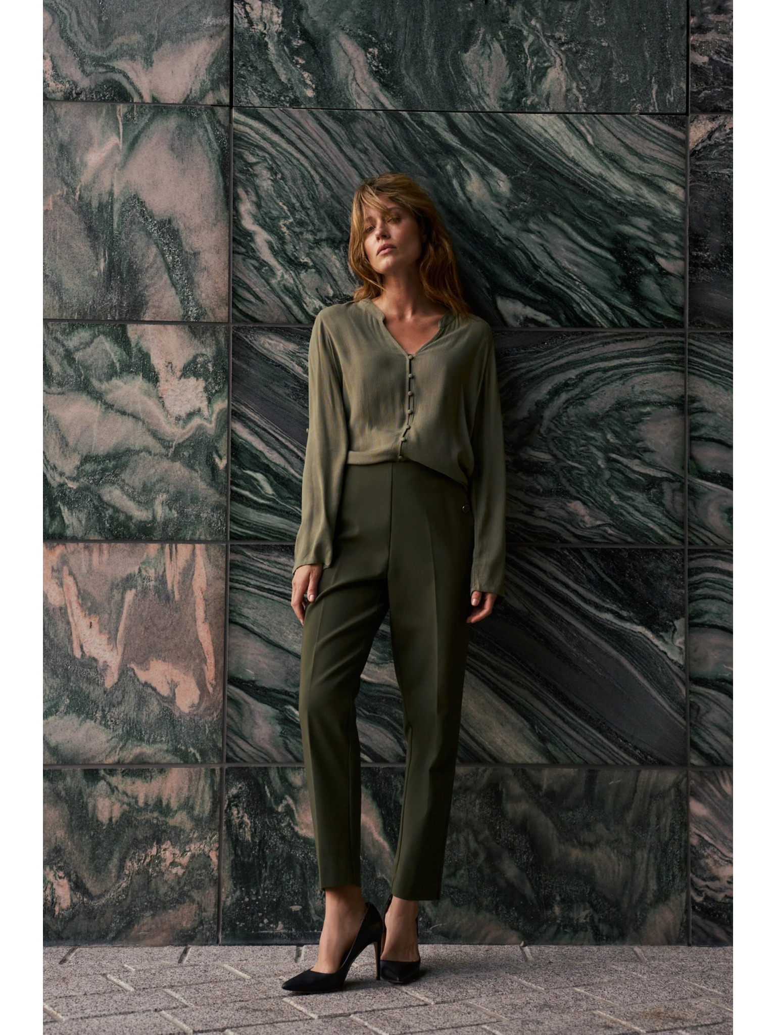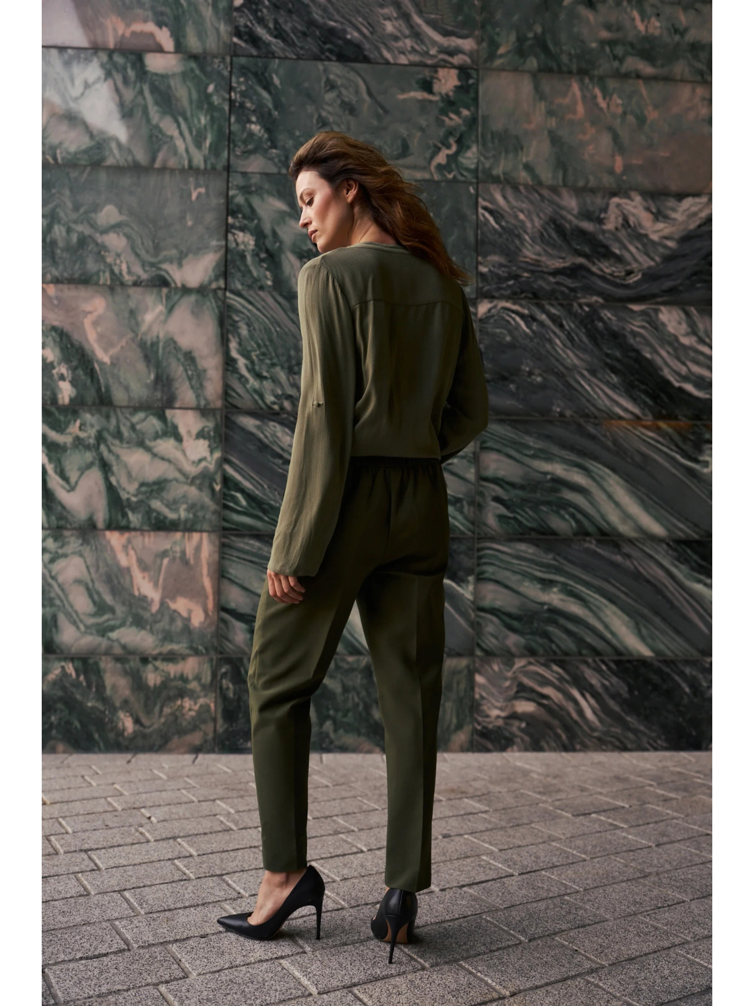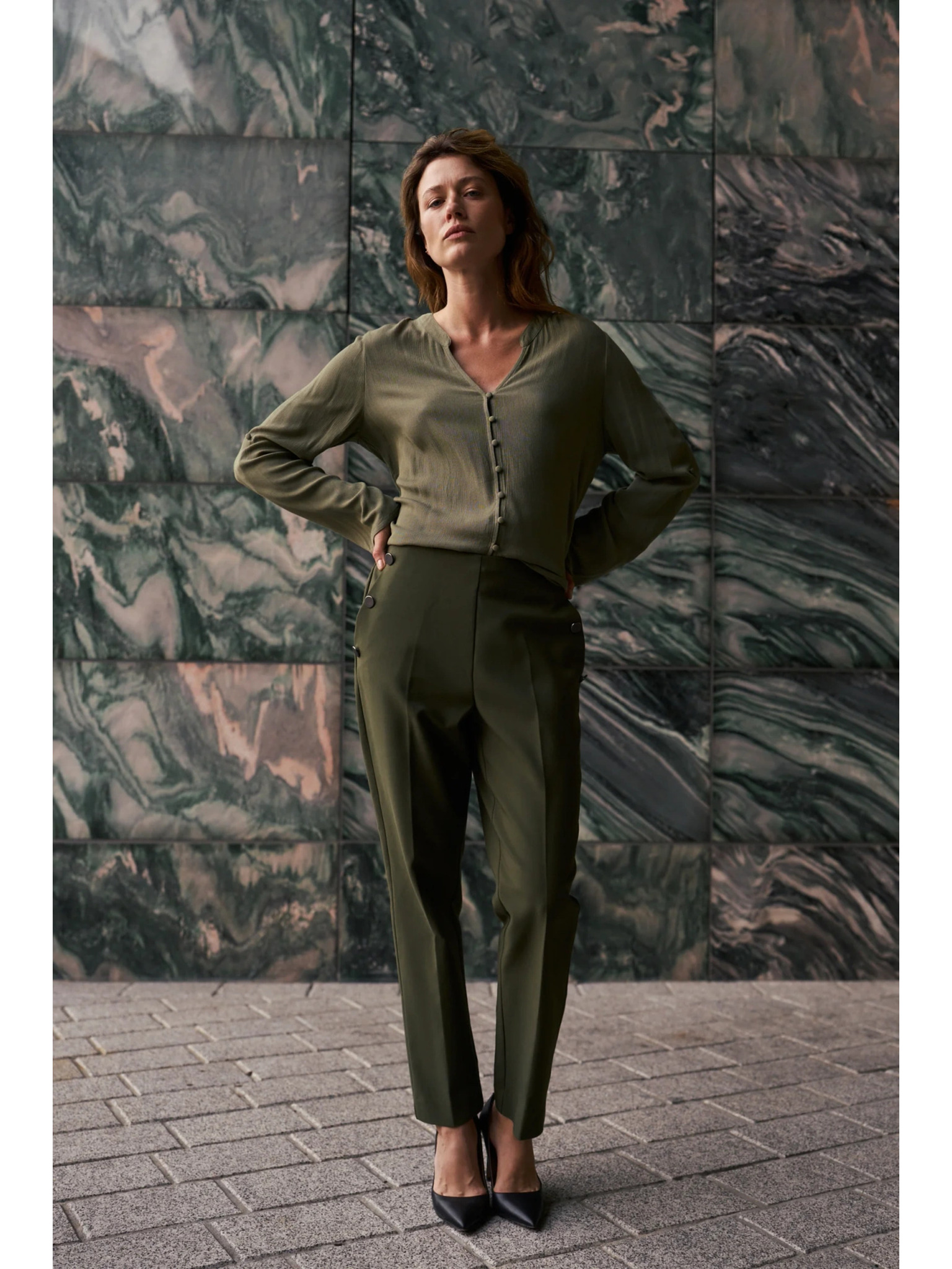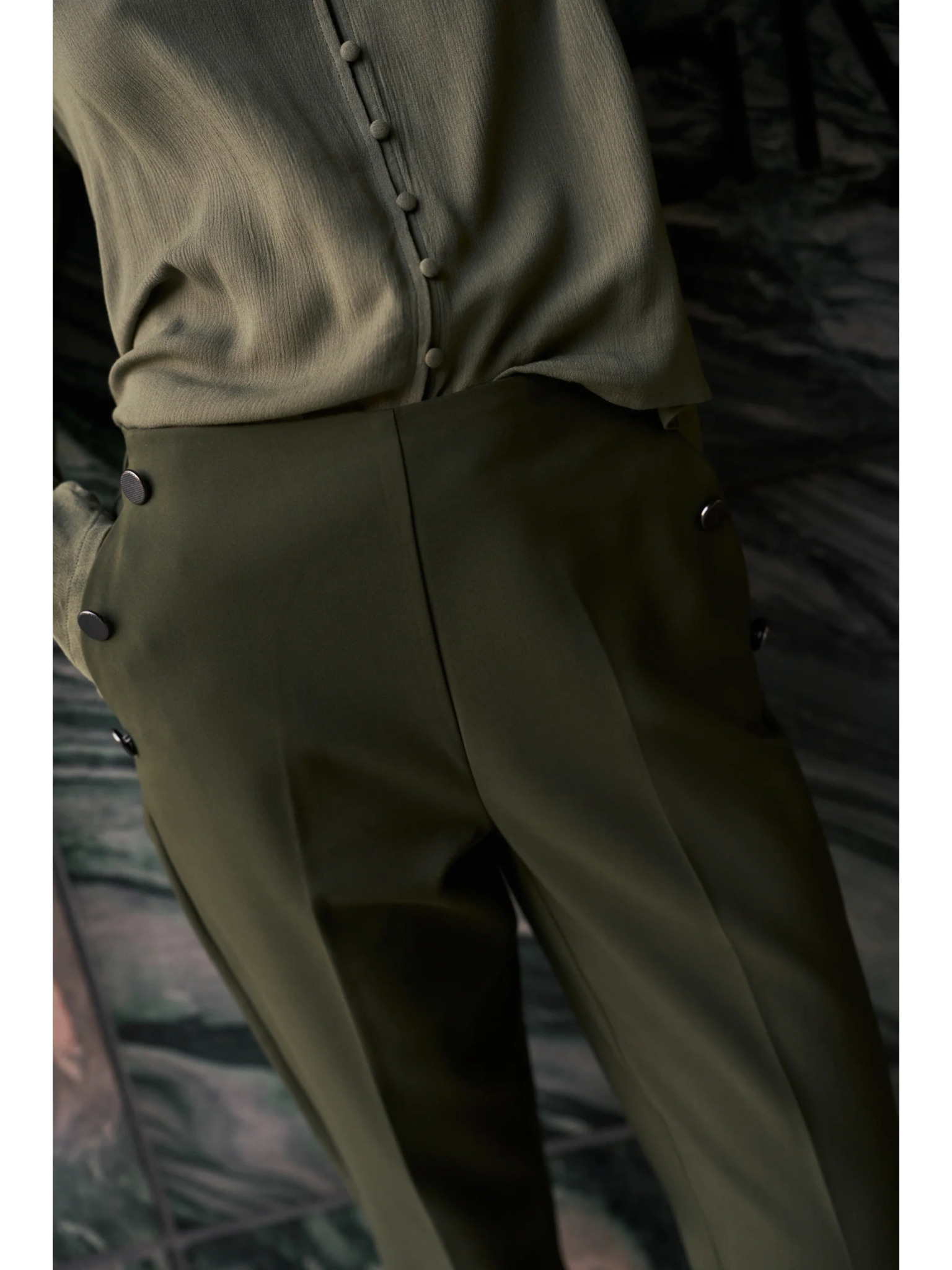 Khaki dámske nohavice so širokými nohavicami ZOOT.lab Tersita