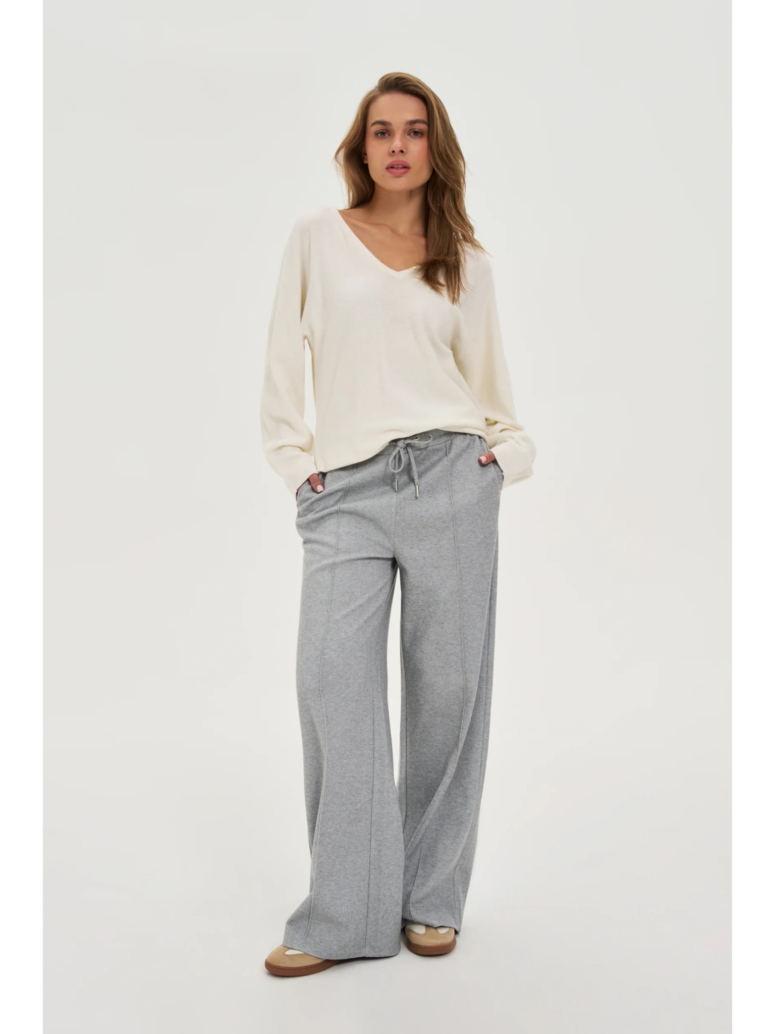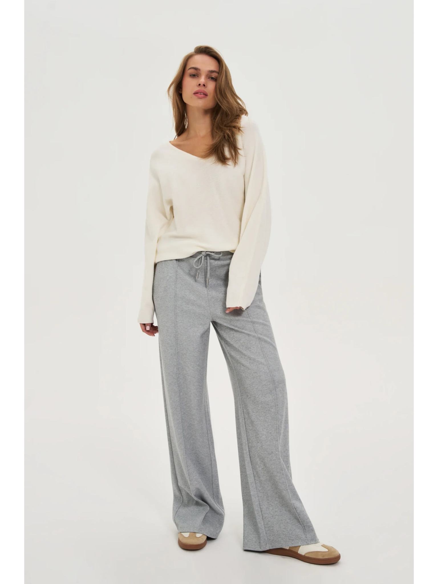 Sivé nohavice so širokými nohavicami Moodo