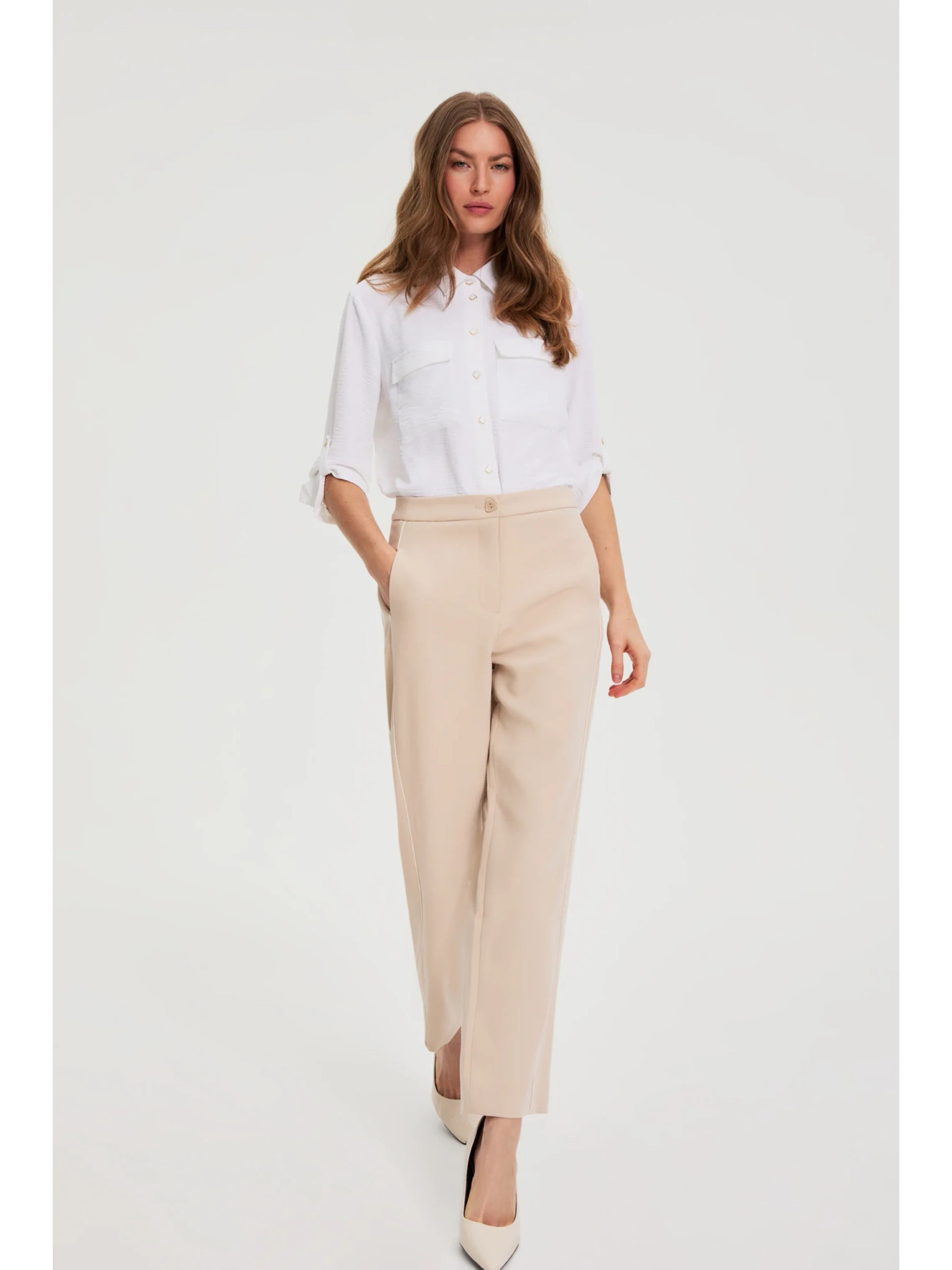 Hladké béžové nohavice Moodo
