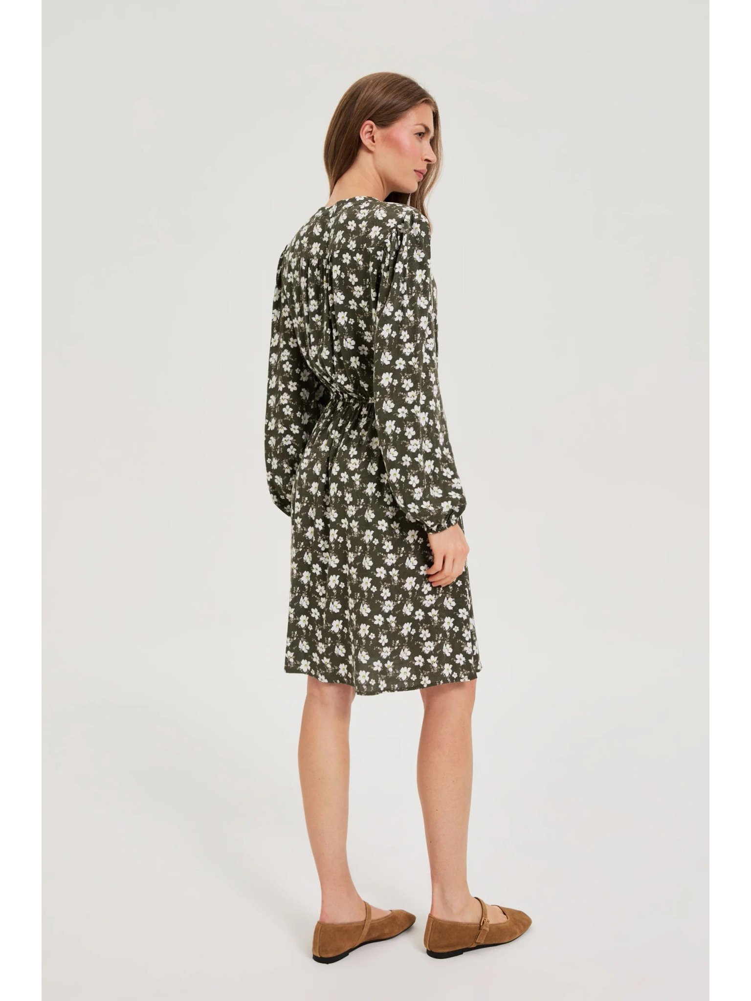 Pohodlné trapézové šaty s dlhými rukávmi - zelené Numoco IVANA