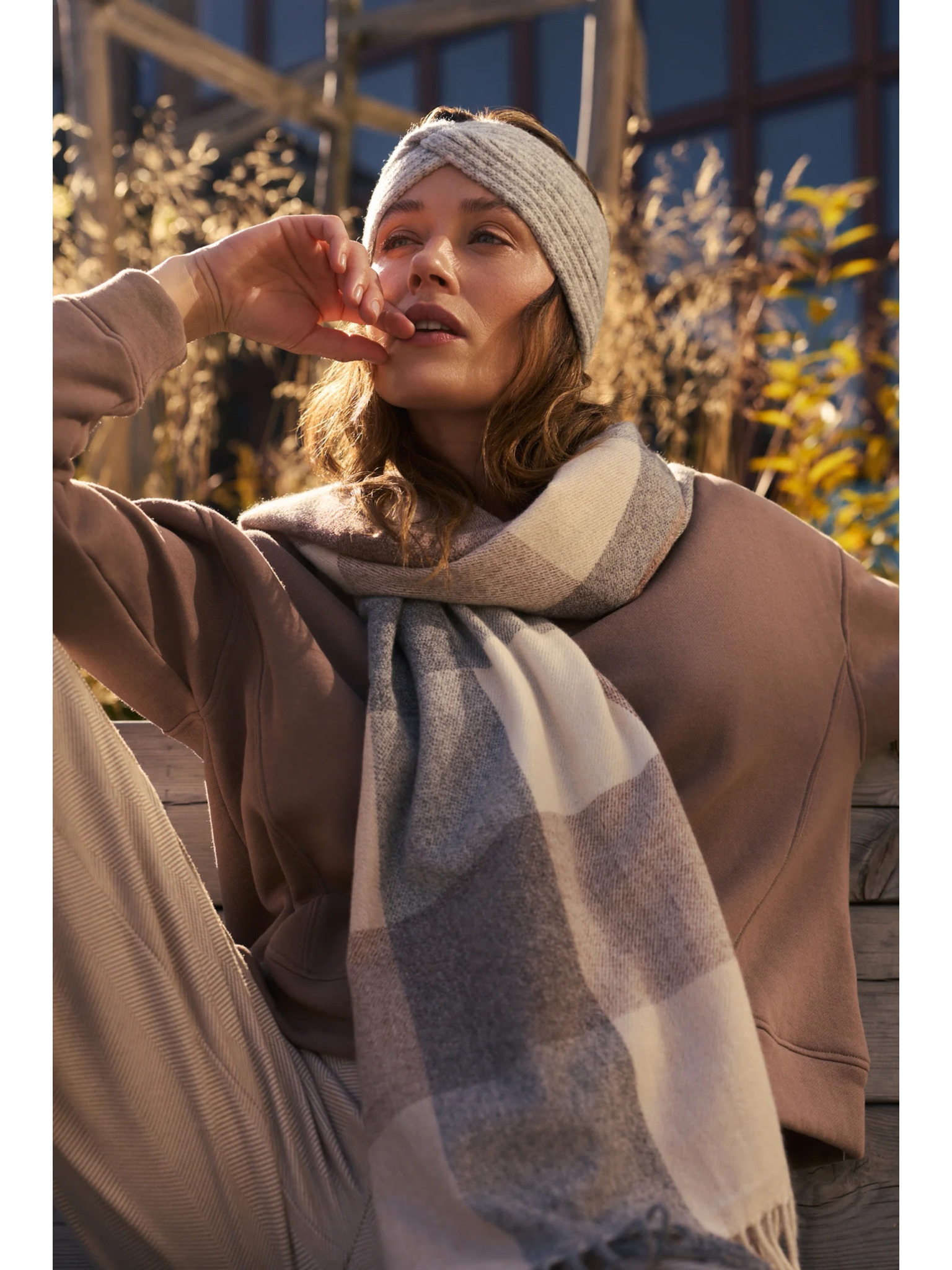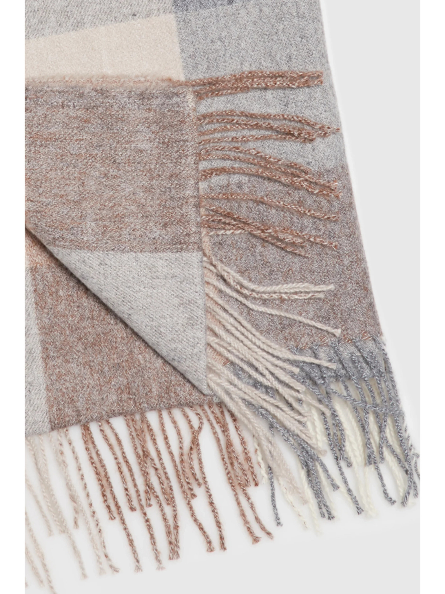 Šál v kostke so strapcami tmavo béžový Moodo