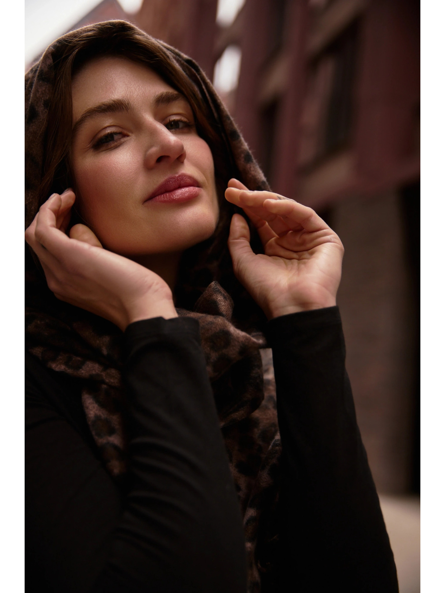 Hnedý šál s leopardím vzorom Moodo