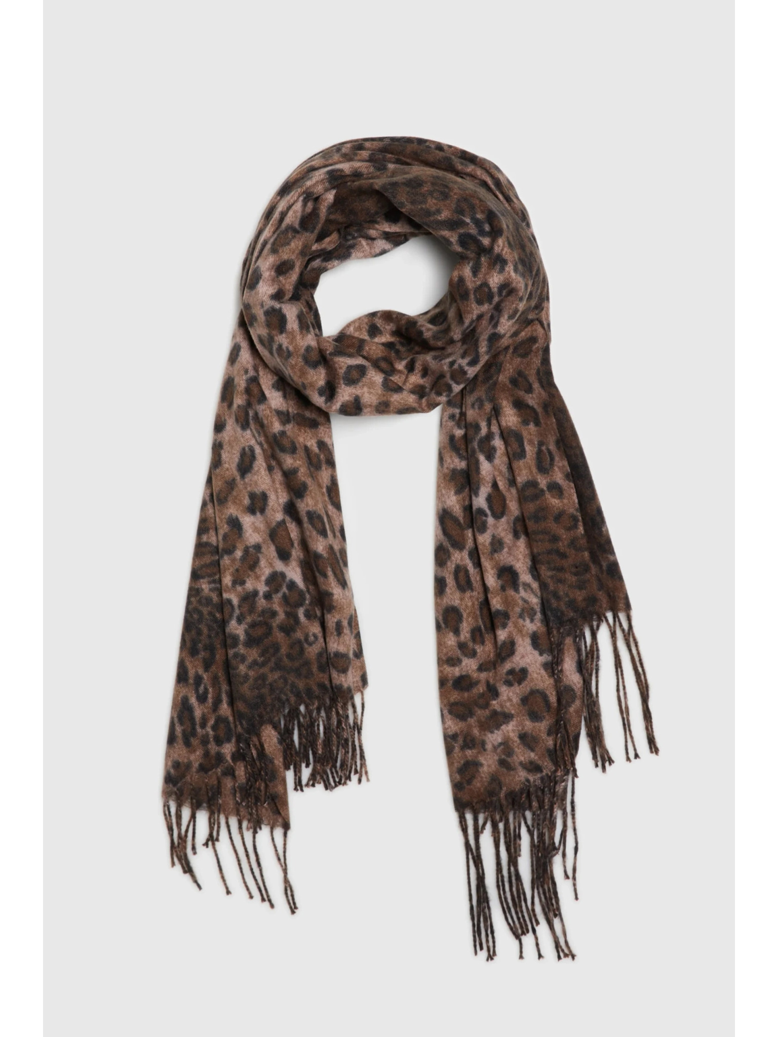 Šál v leopardím vzore so strapcom hnedý Moodo