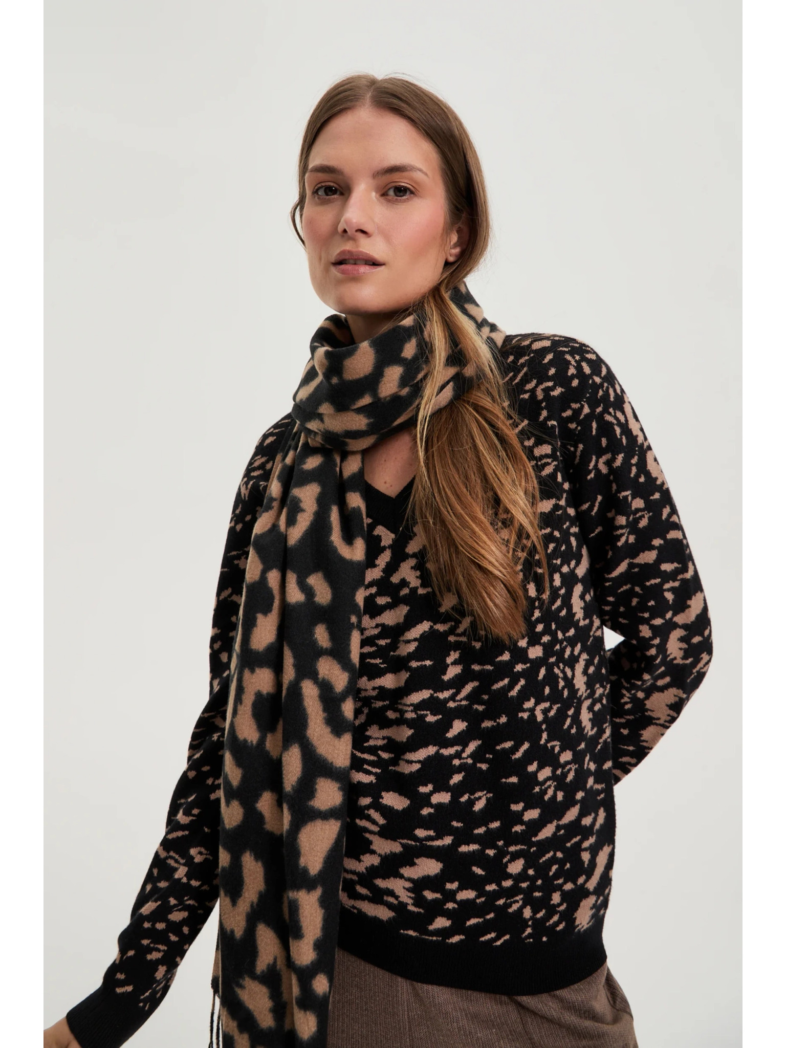 Šál v leopardím vzore hnedý Moodo