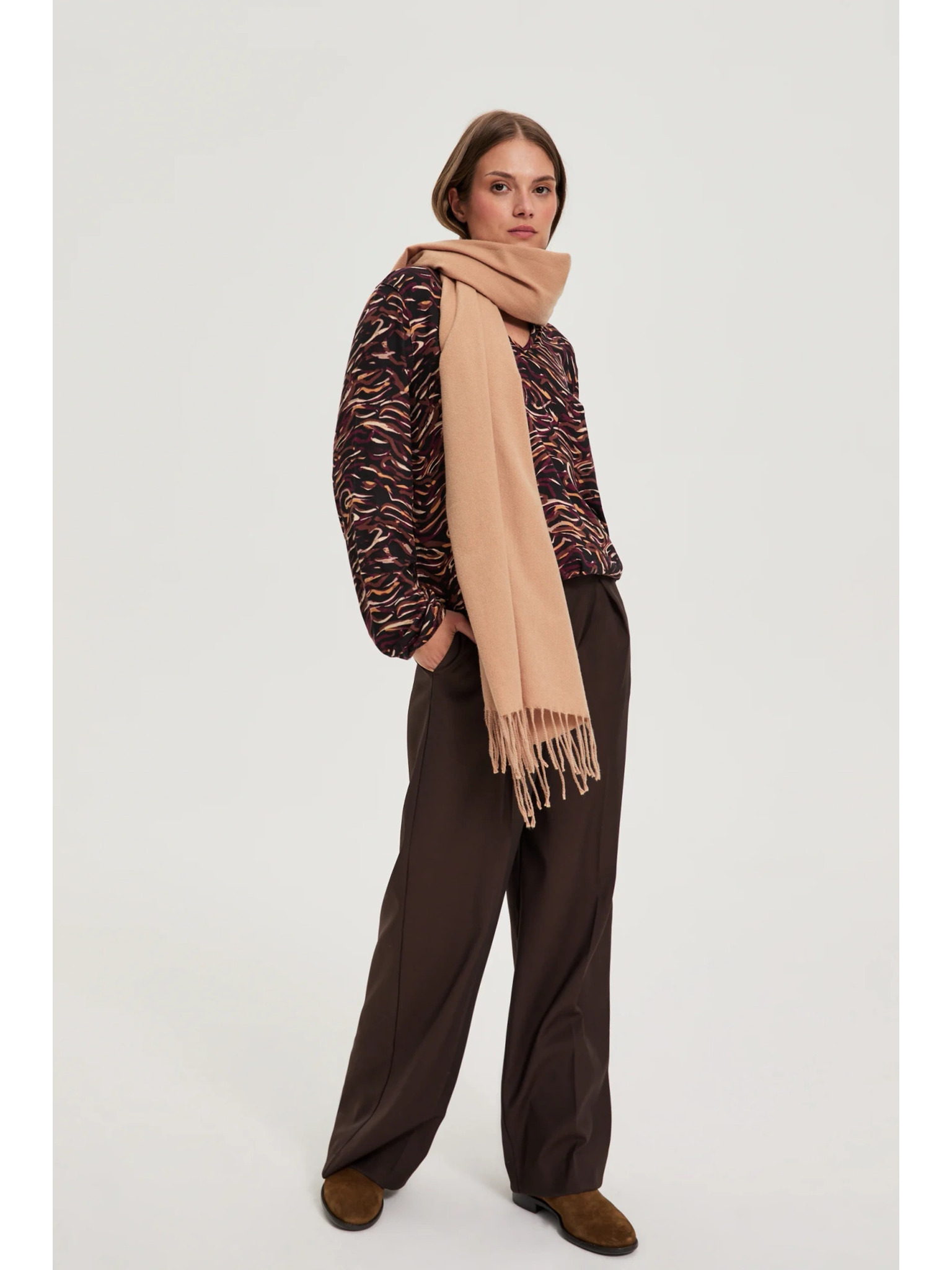 Šál so vzorom béžový Moodo