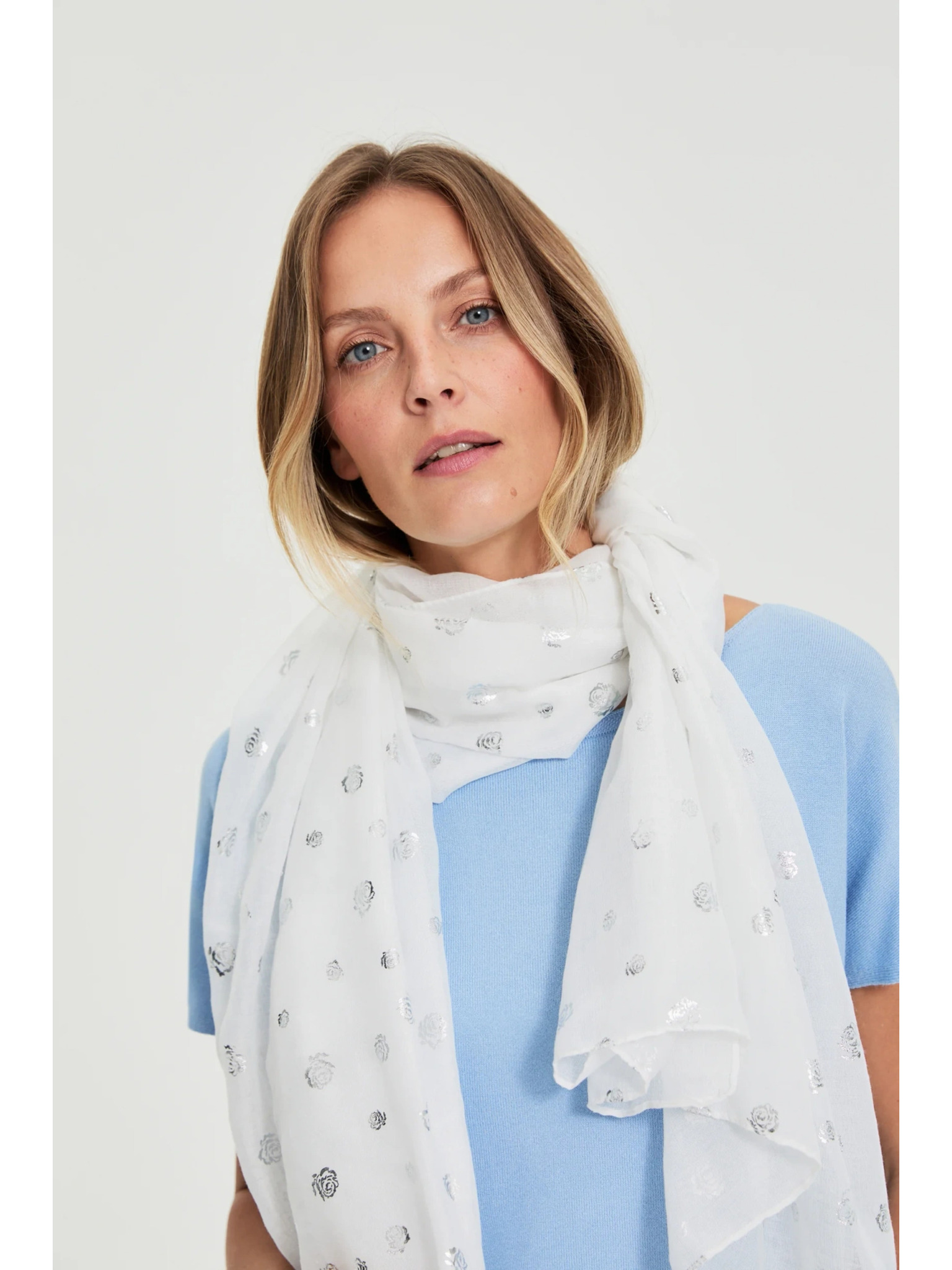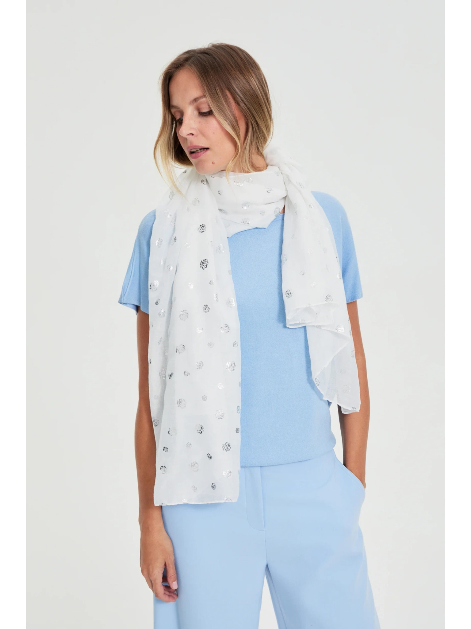 Šál vo štvorčekoch biely Moodo