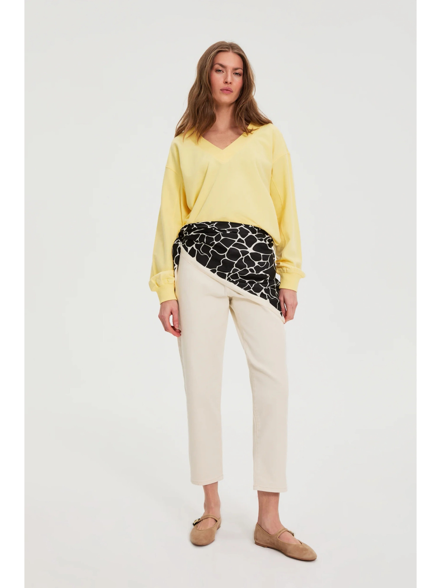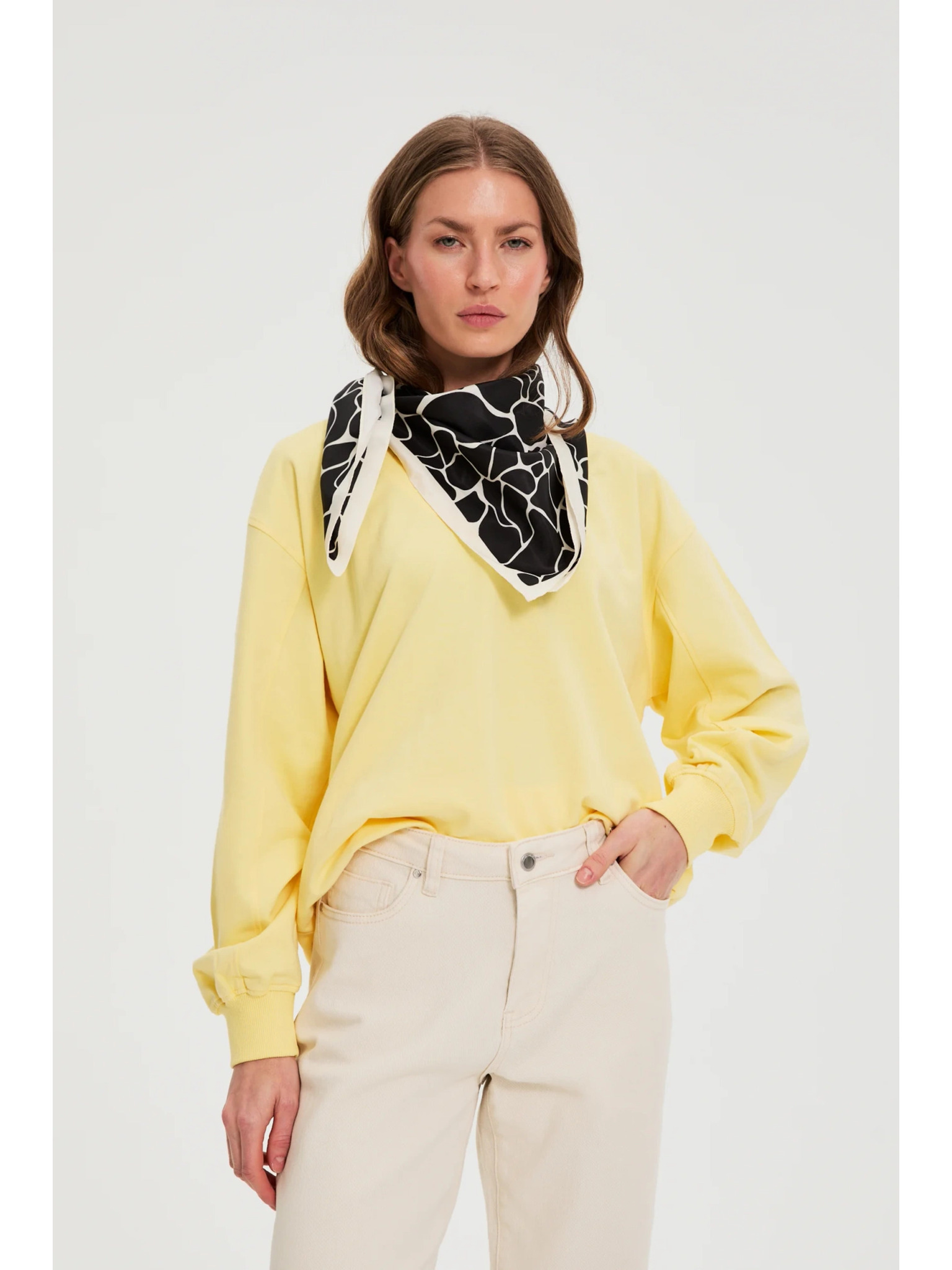 Krémová a hnedá dámska vzorovaná šatka Moodo