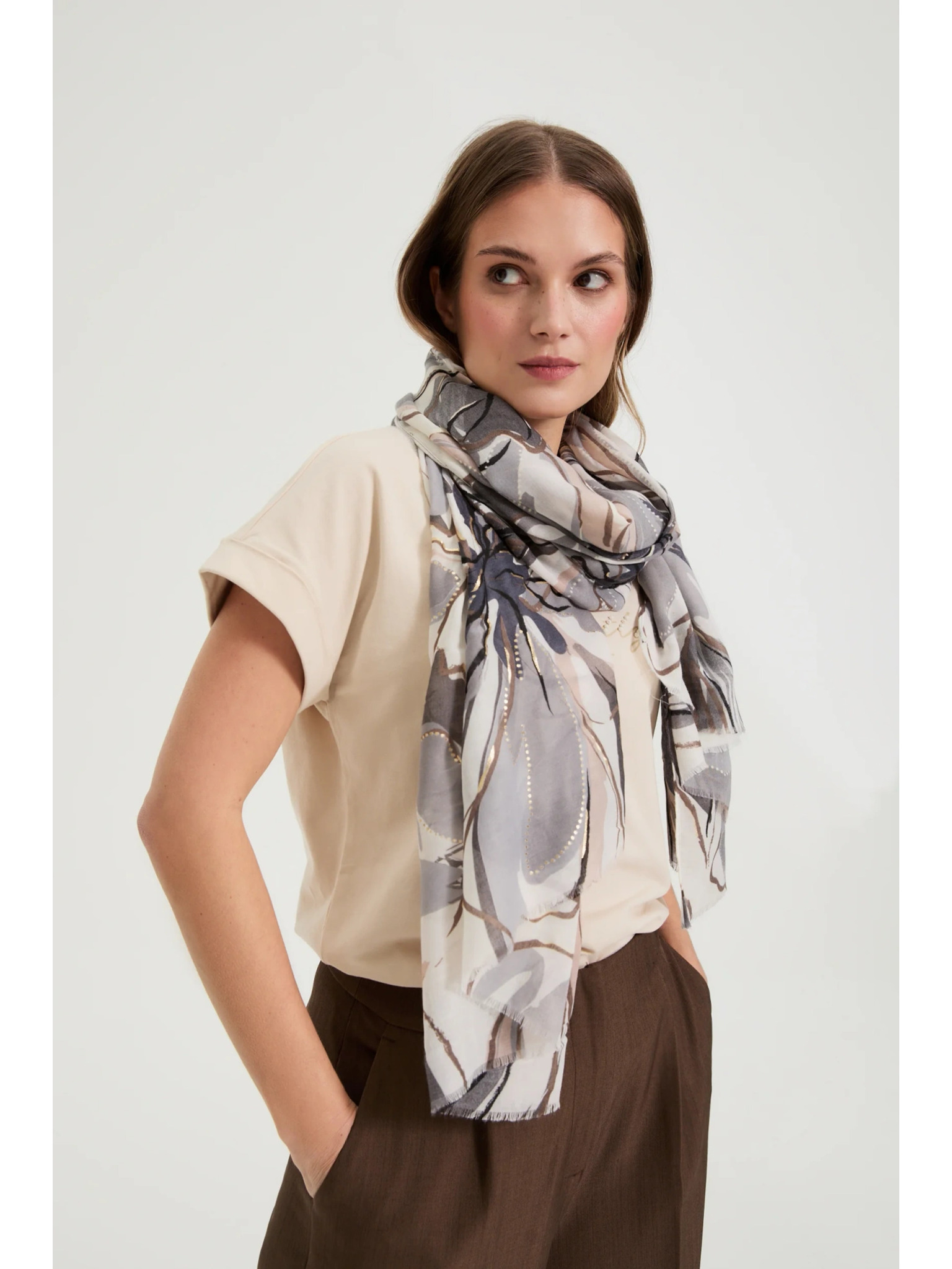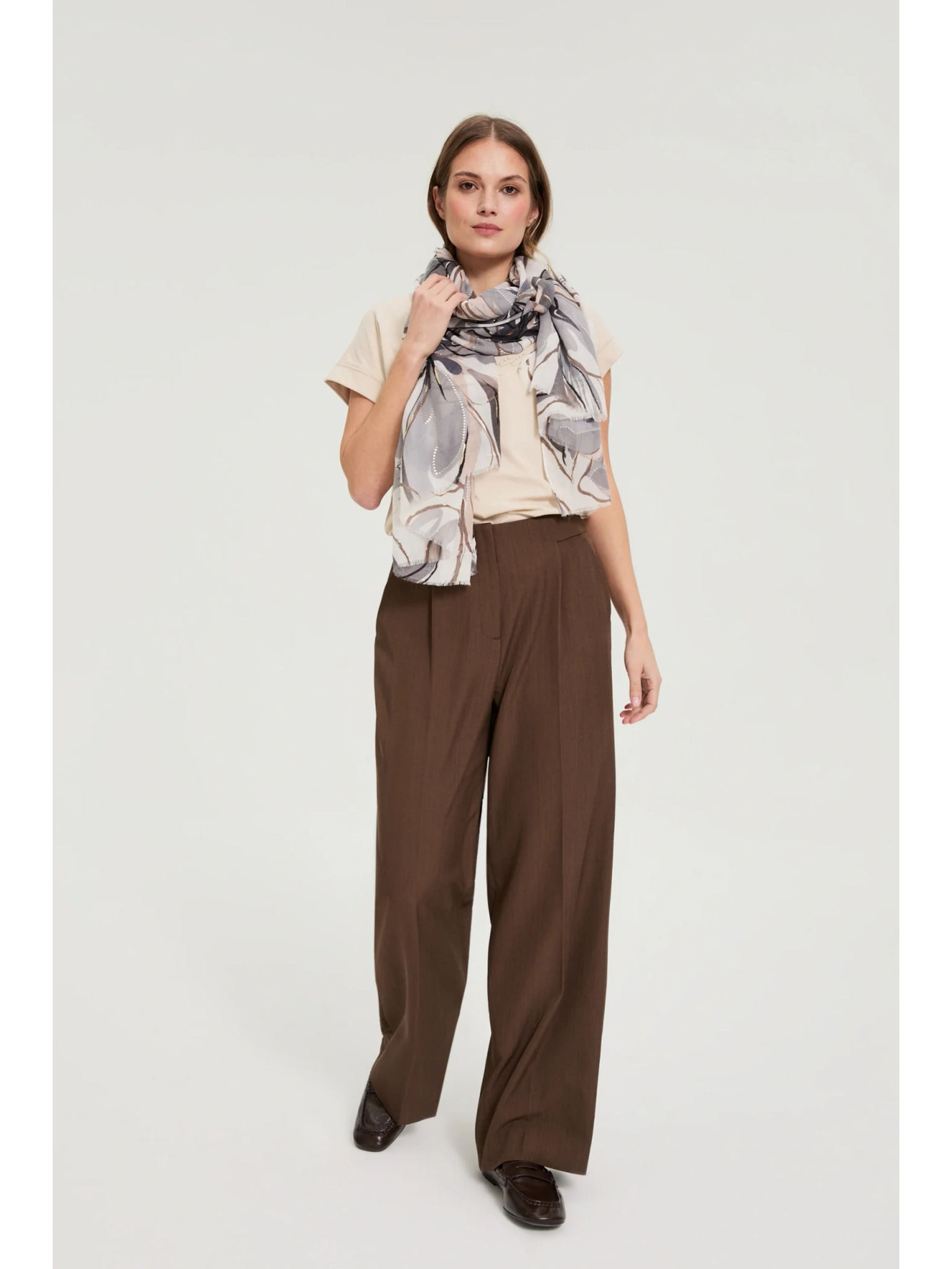 Krémová a hnedá dámska vzorovaná šatka Moodo