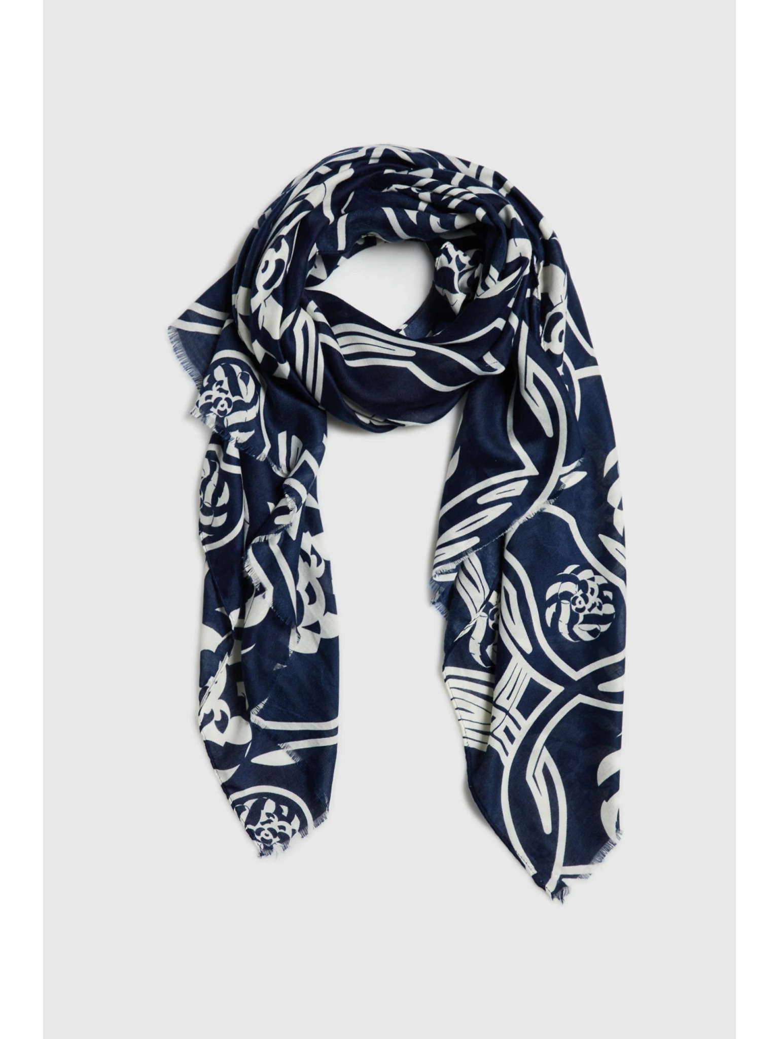 Šál s rastlinným vzorom tmavomodrý Moodo