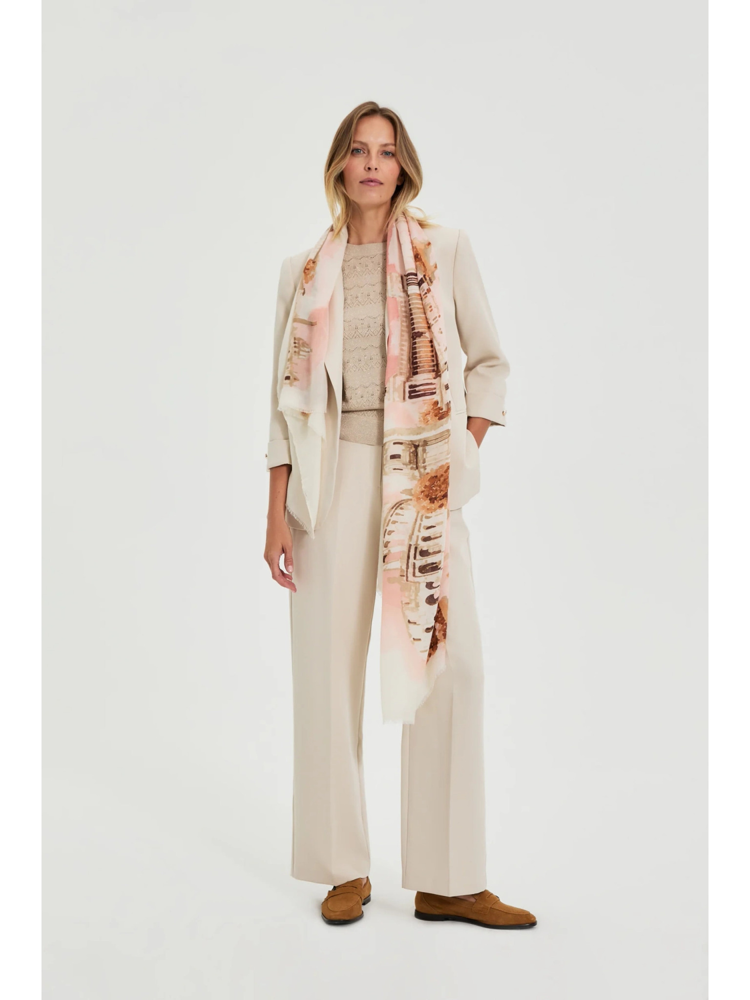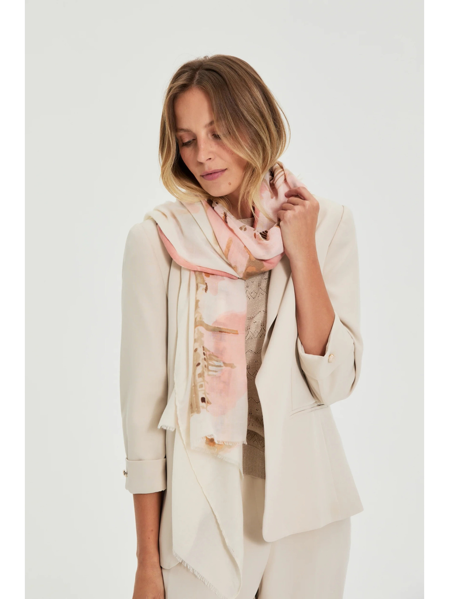 Svetloružový dámsky vzorovaný šál Moodo