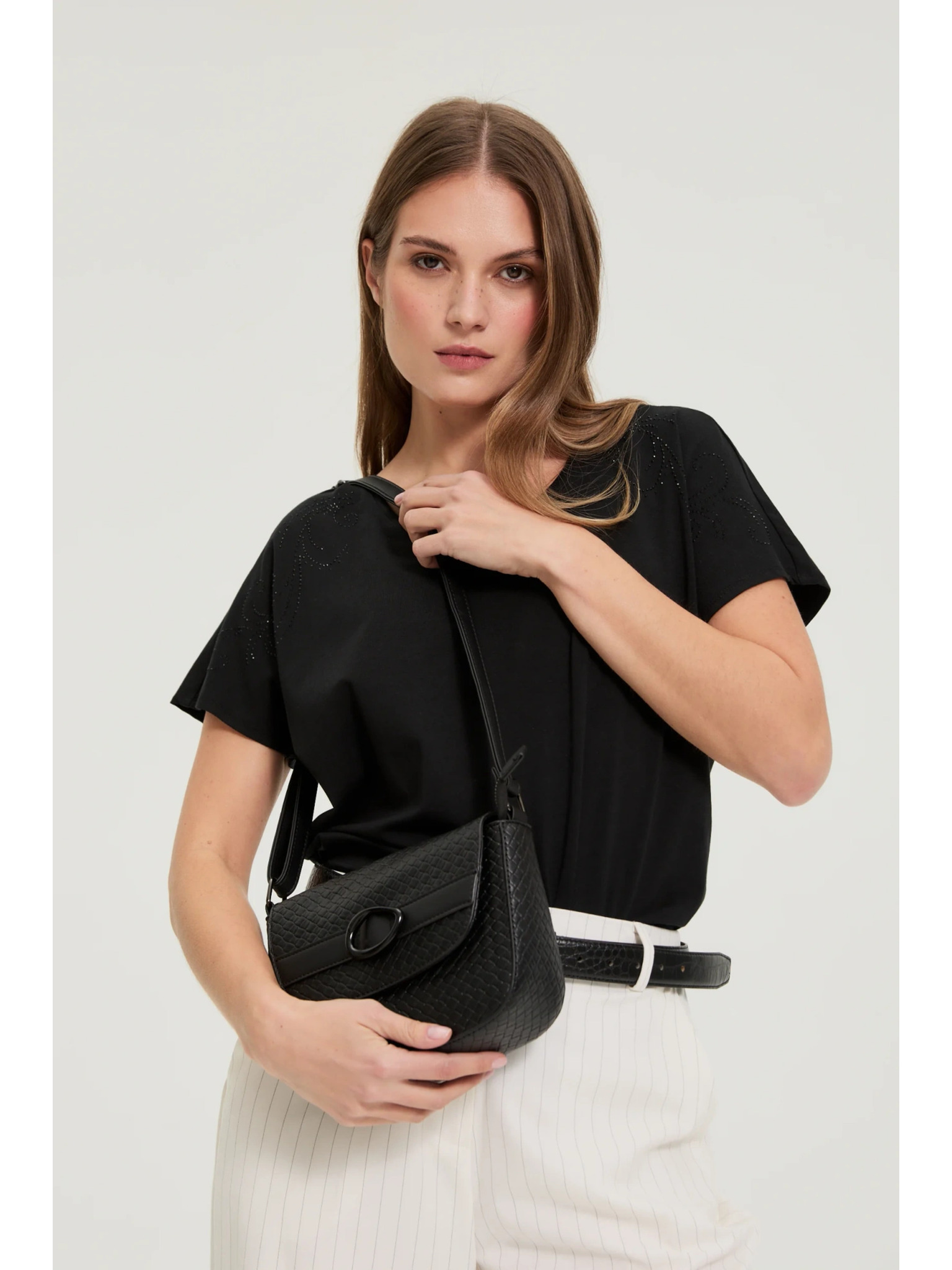 Prešívaná kabelka s nastaviteľnou rukoväťou čierna Moodo