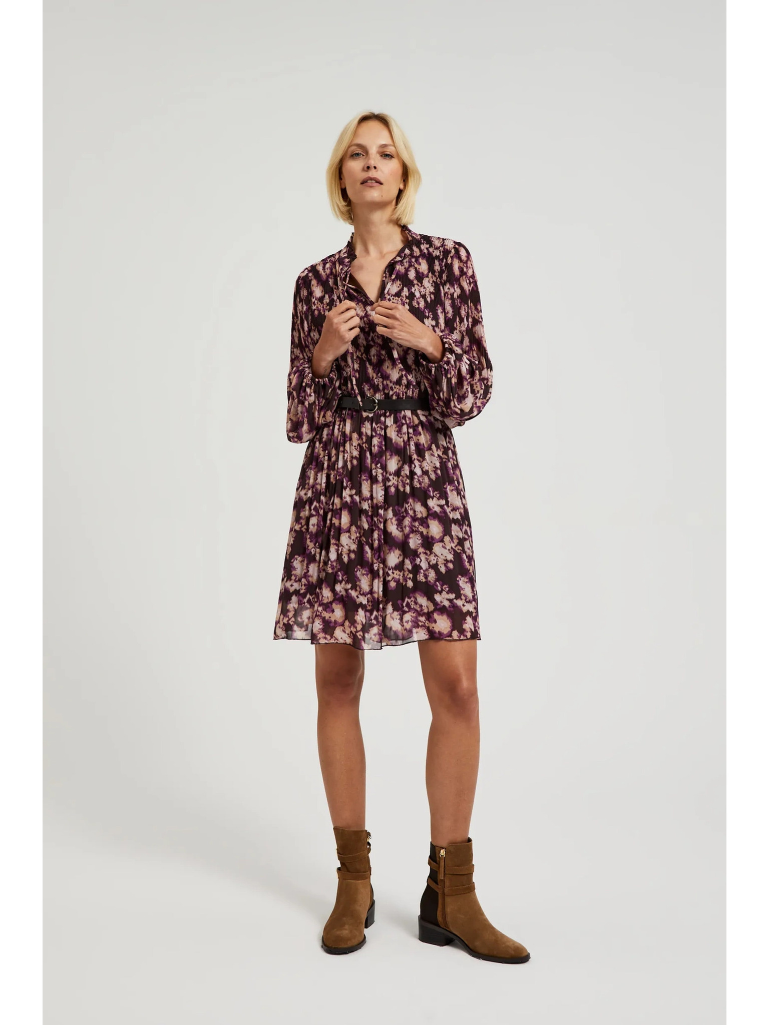 Predpísané šaty s gombíkmi a golierom - bordové Numoco