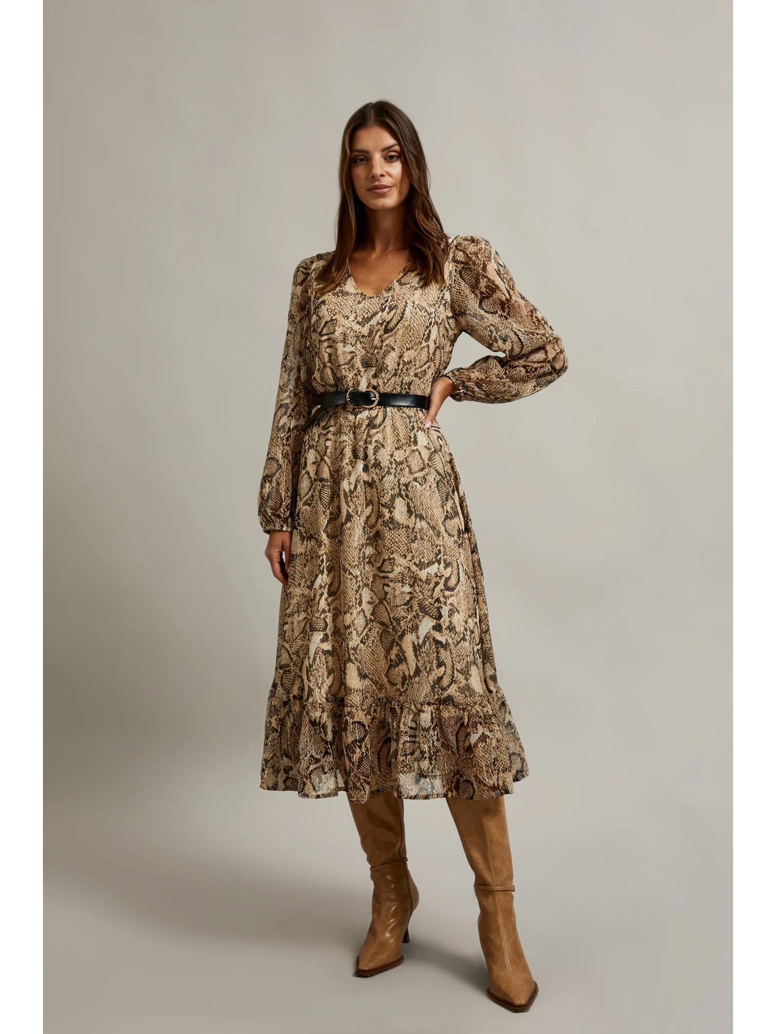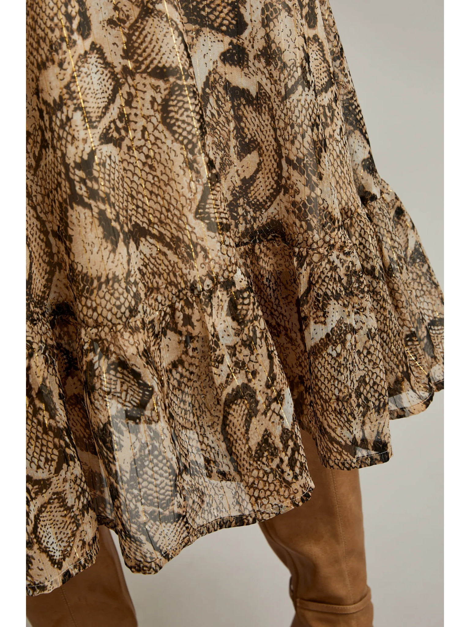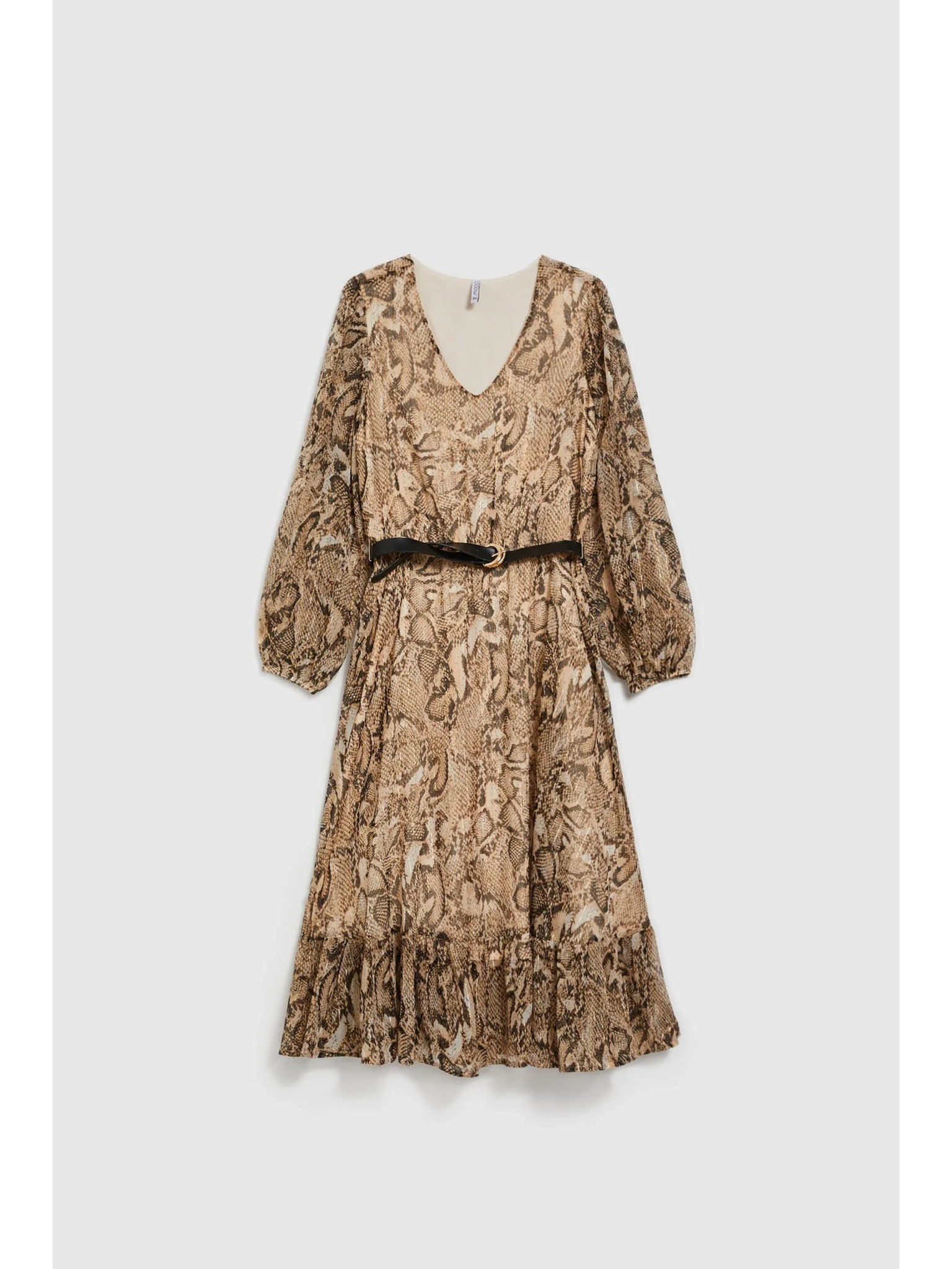 Béžové šaty s nafúknutými rukávmi a zvieracím vzorom Moodo