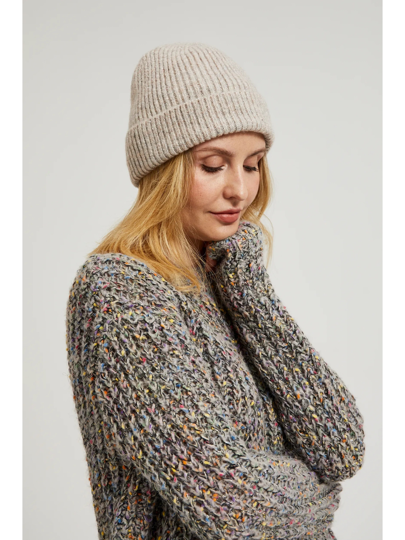 Rebrovaná čiapka béžová Moodo