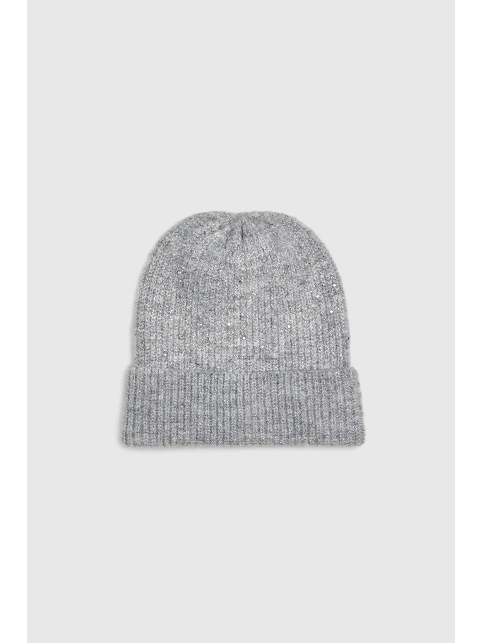 Rebrovaná čiapka s perličkami sivá Moodo