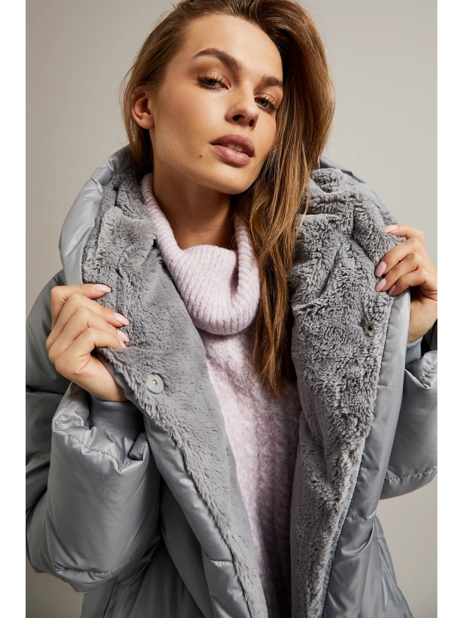 Svetloružová prešívaná bunda s manžetami Moodo