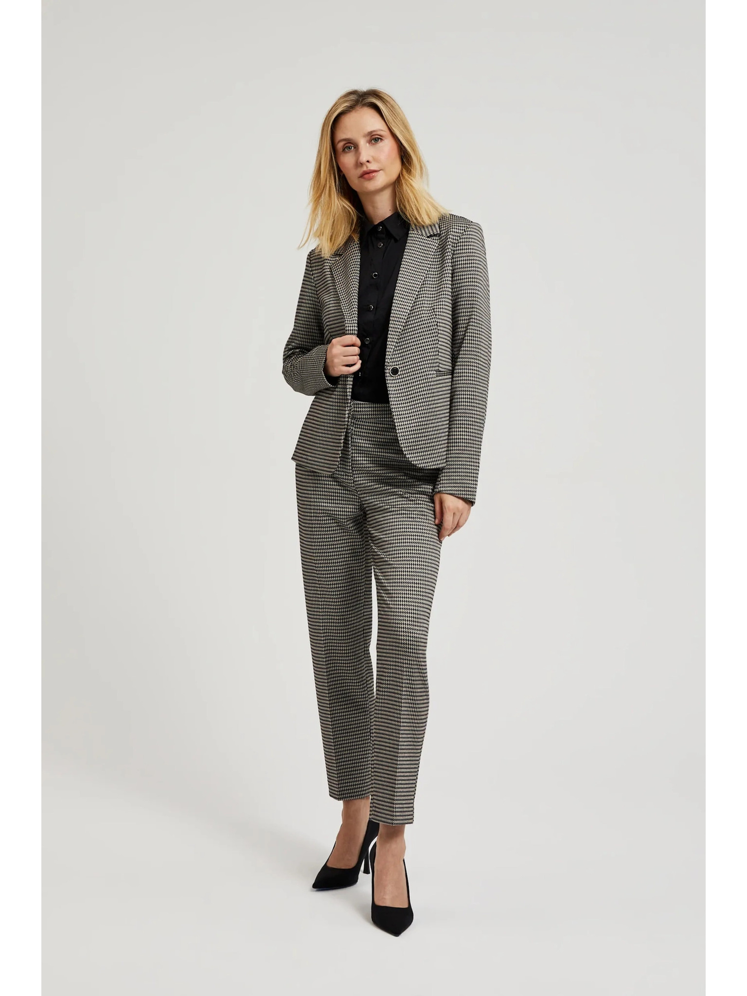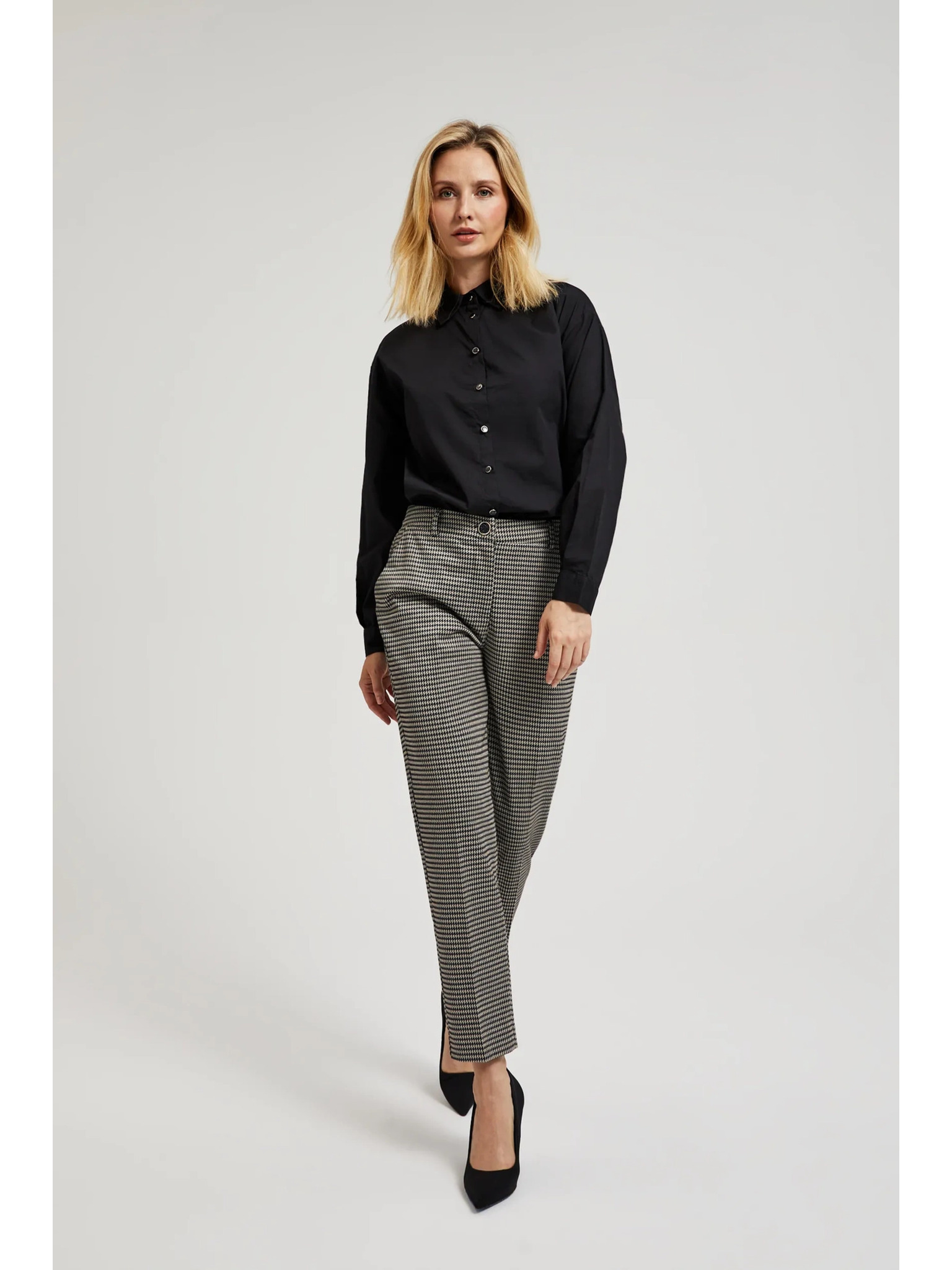 Elegantné béžové nohavice v pepito vzore Moodo