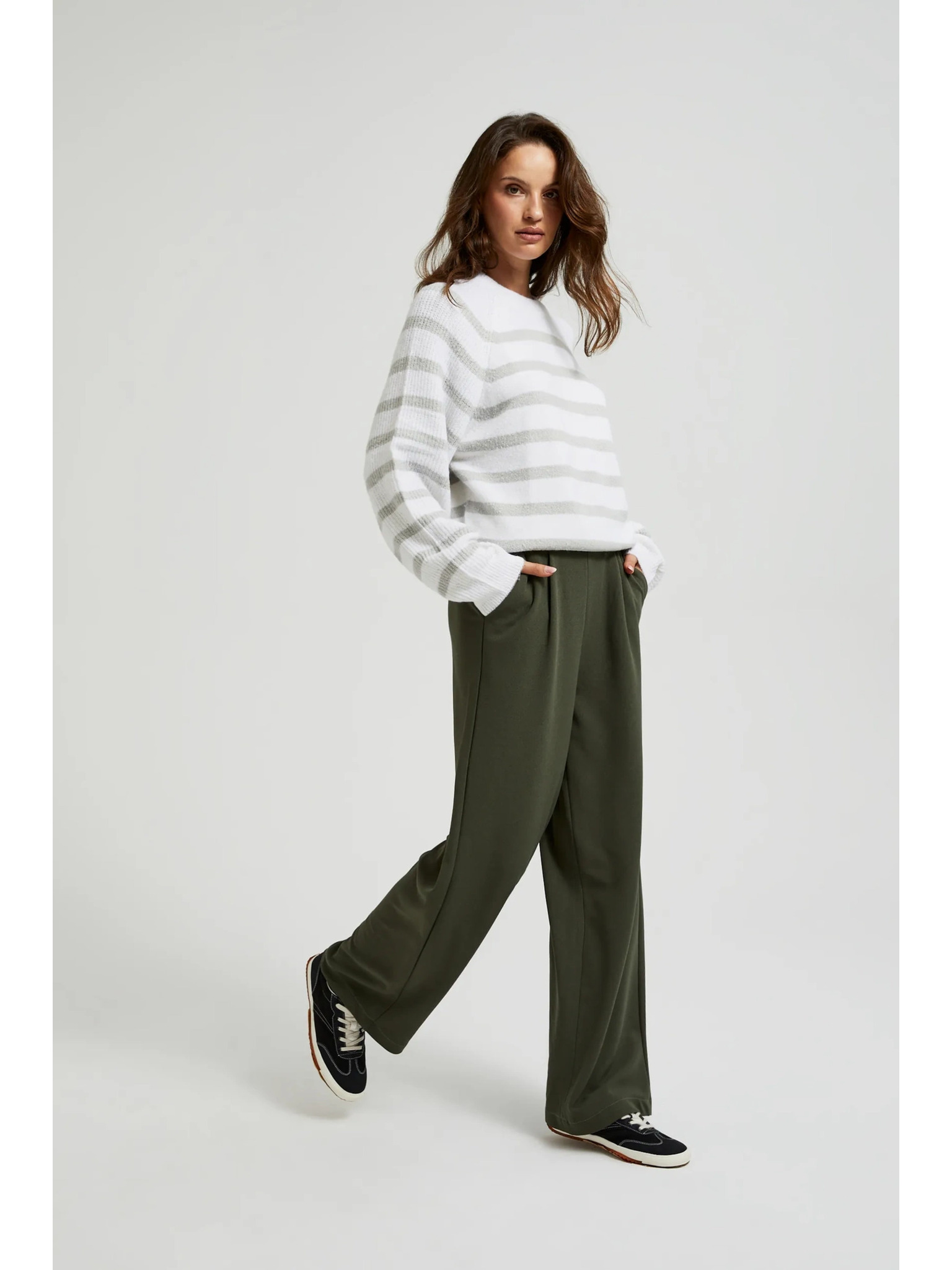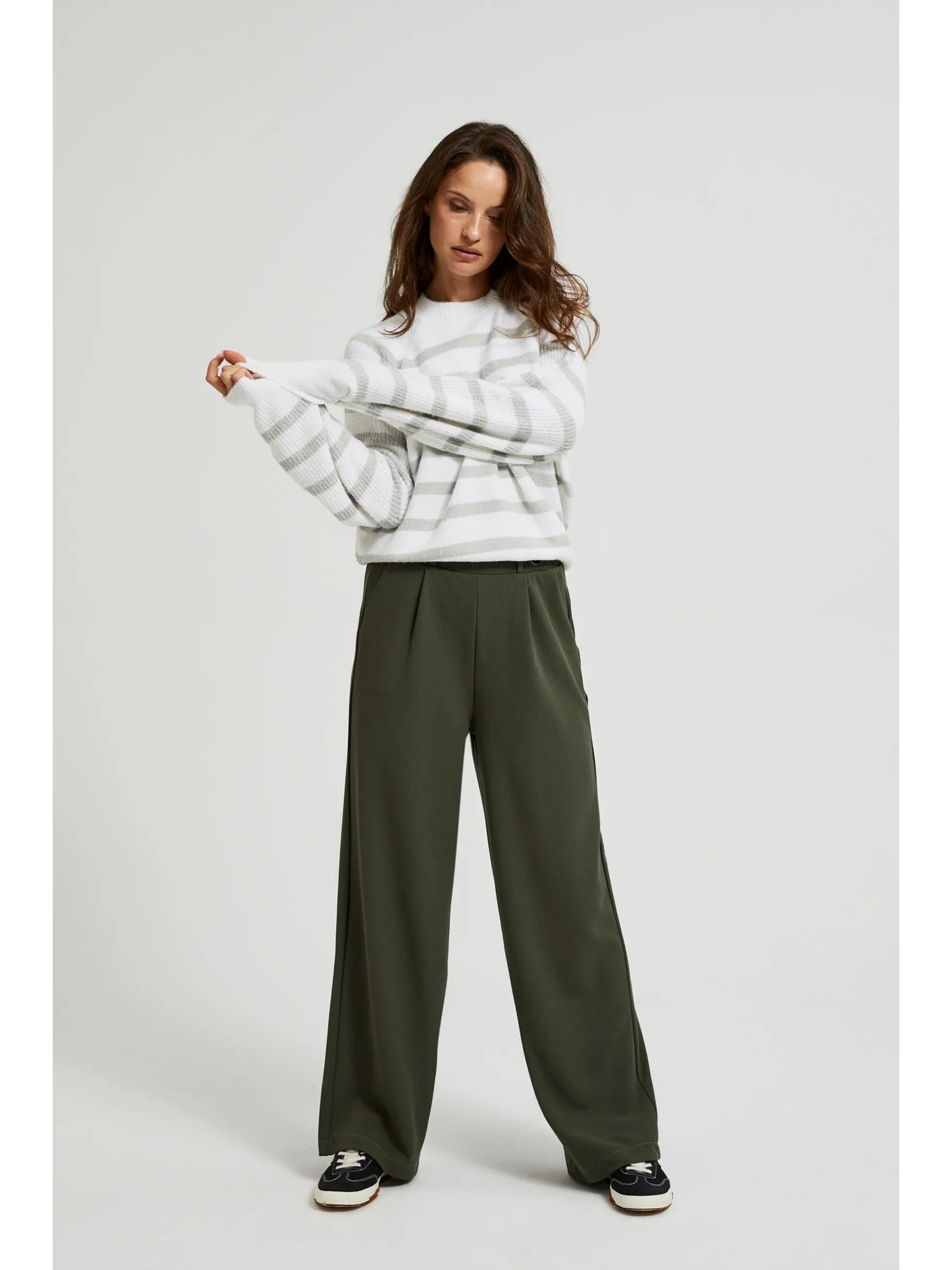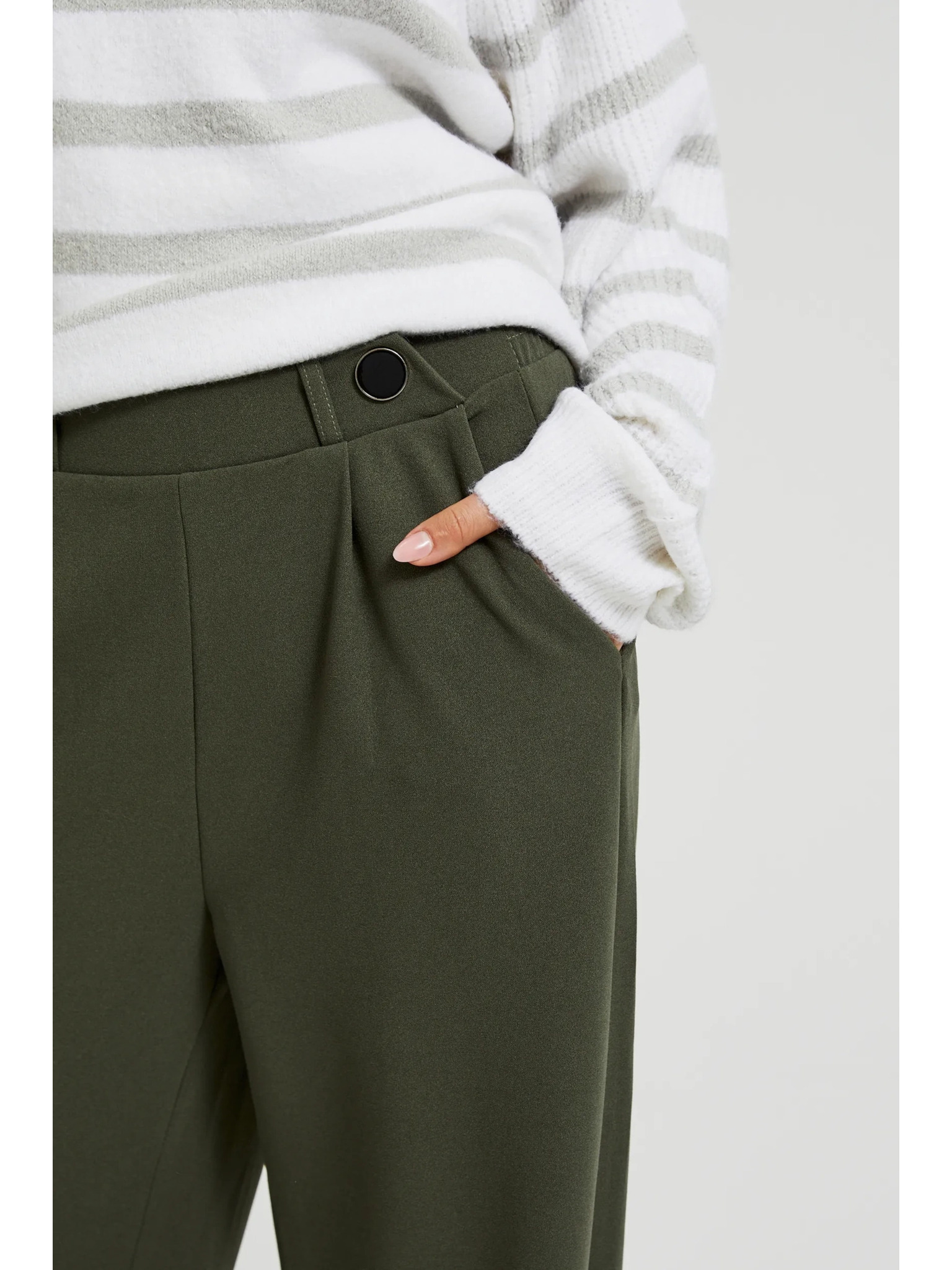 Khaki dámske nohavice so širokými nohavicami ZOOT.lab Tersita