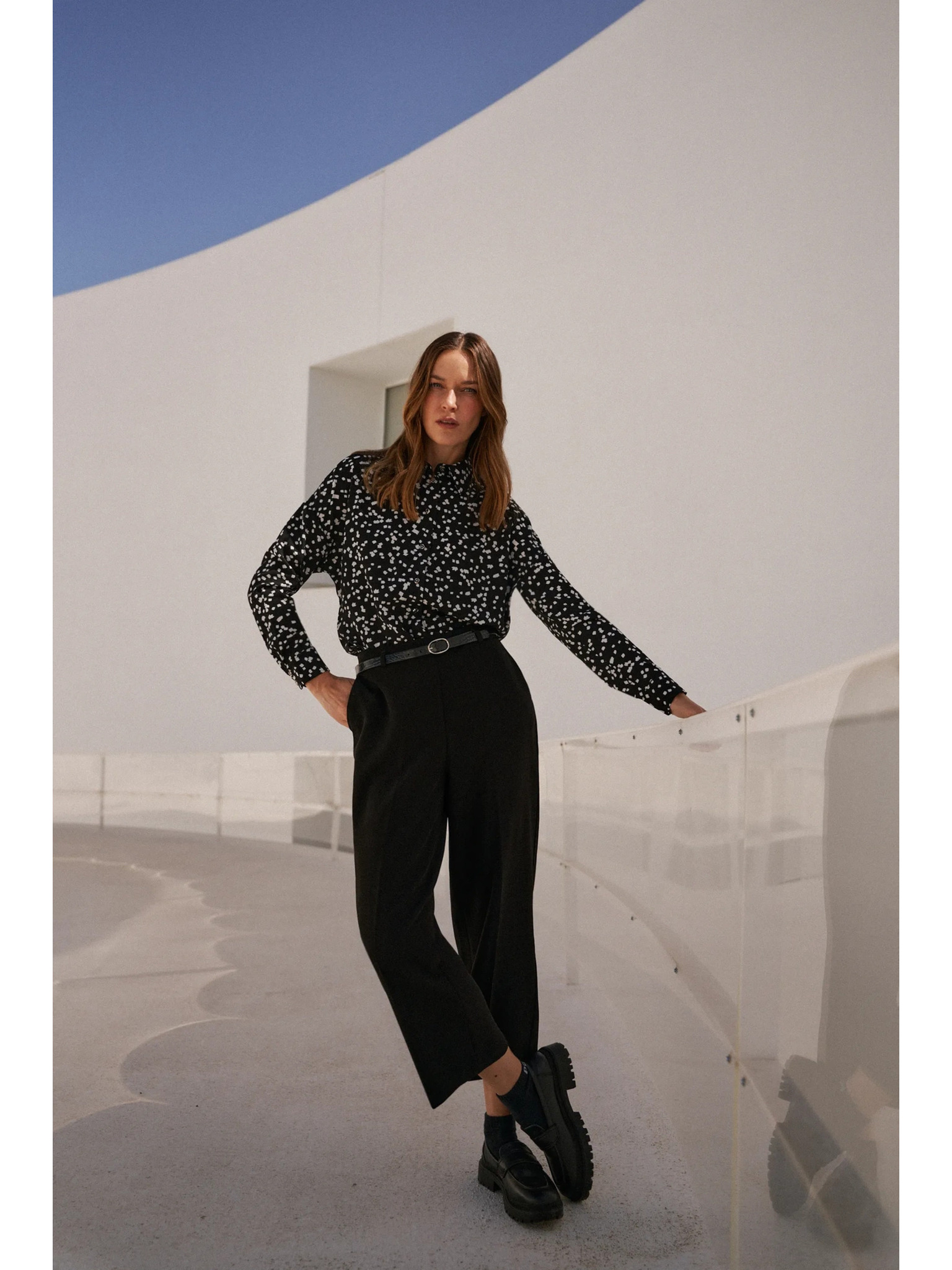 Biela blúzka s čiernymi kvetmi
