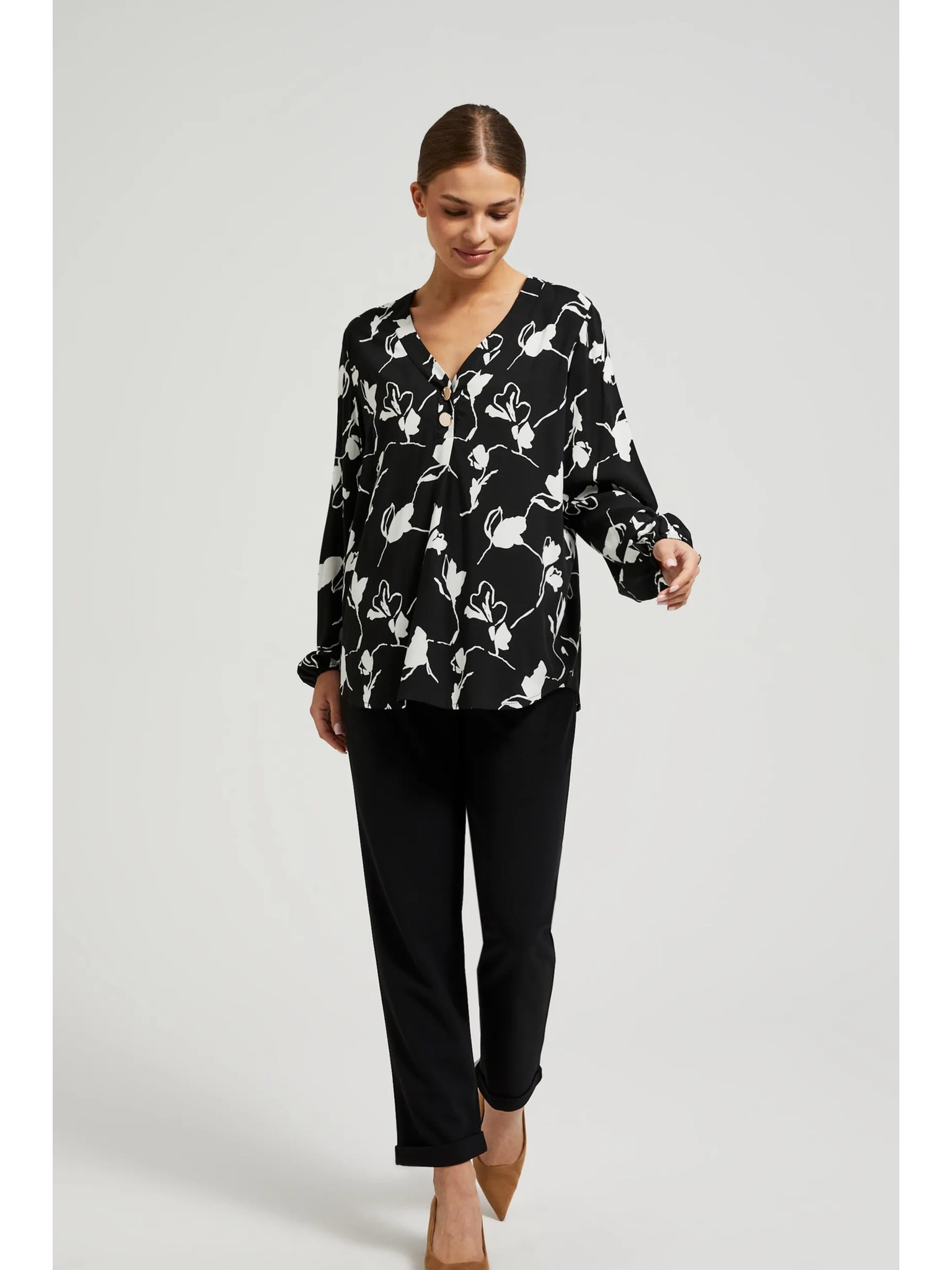 Čierna dámska blúzka s kvetinovým vzorom ORSAY