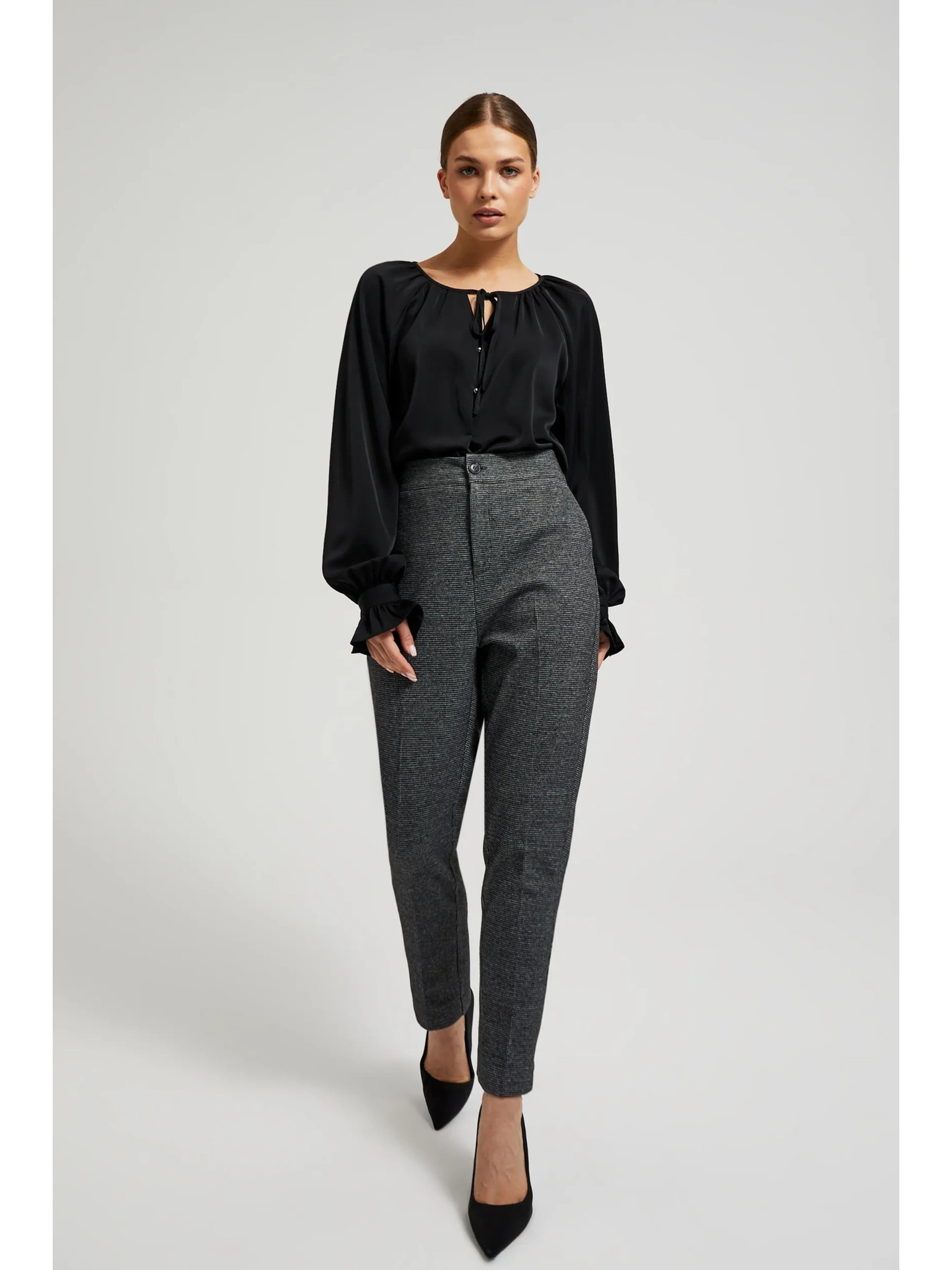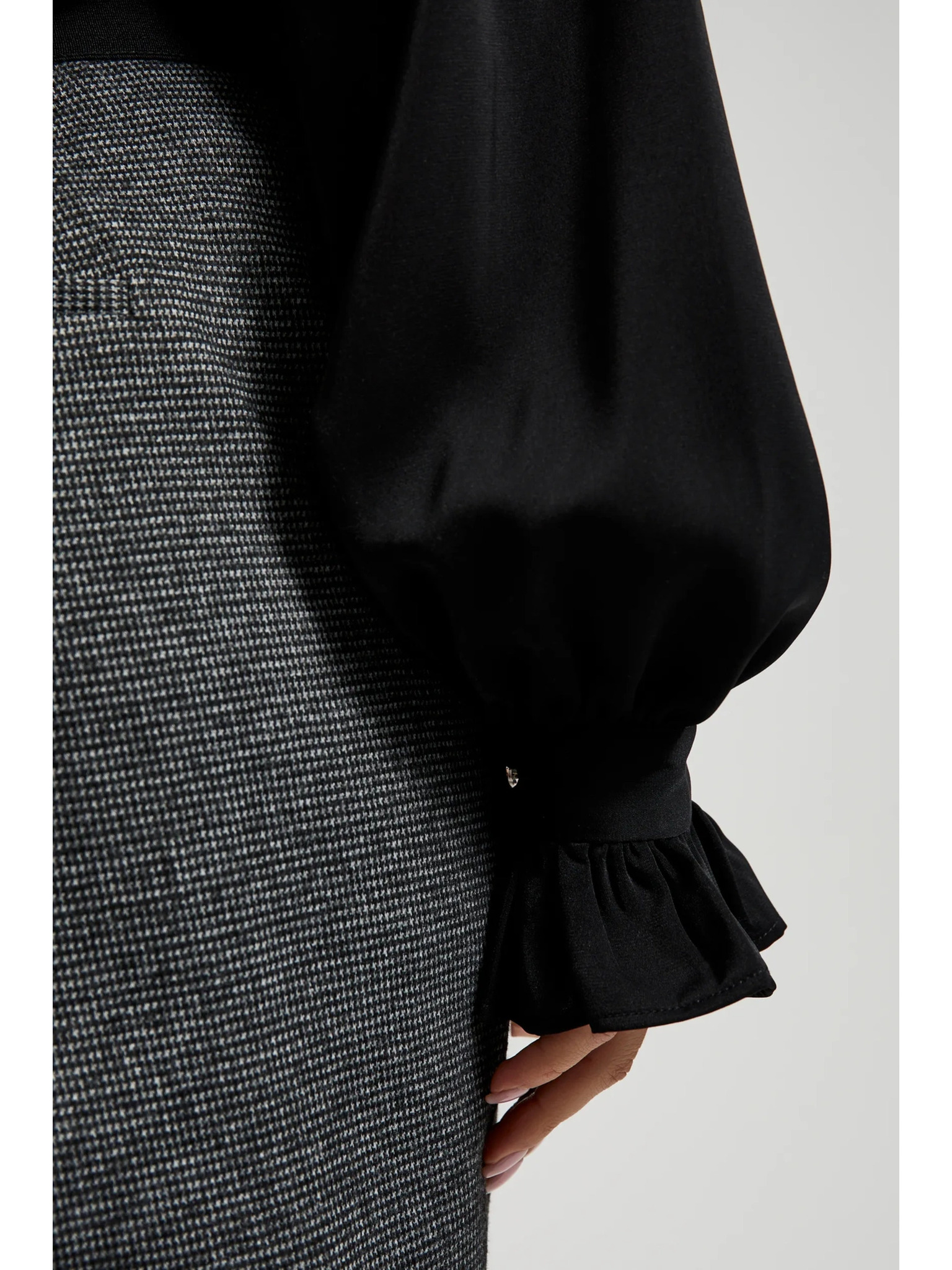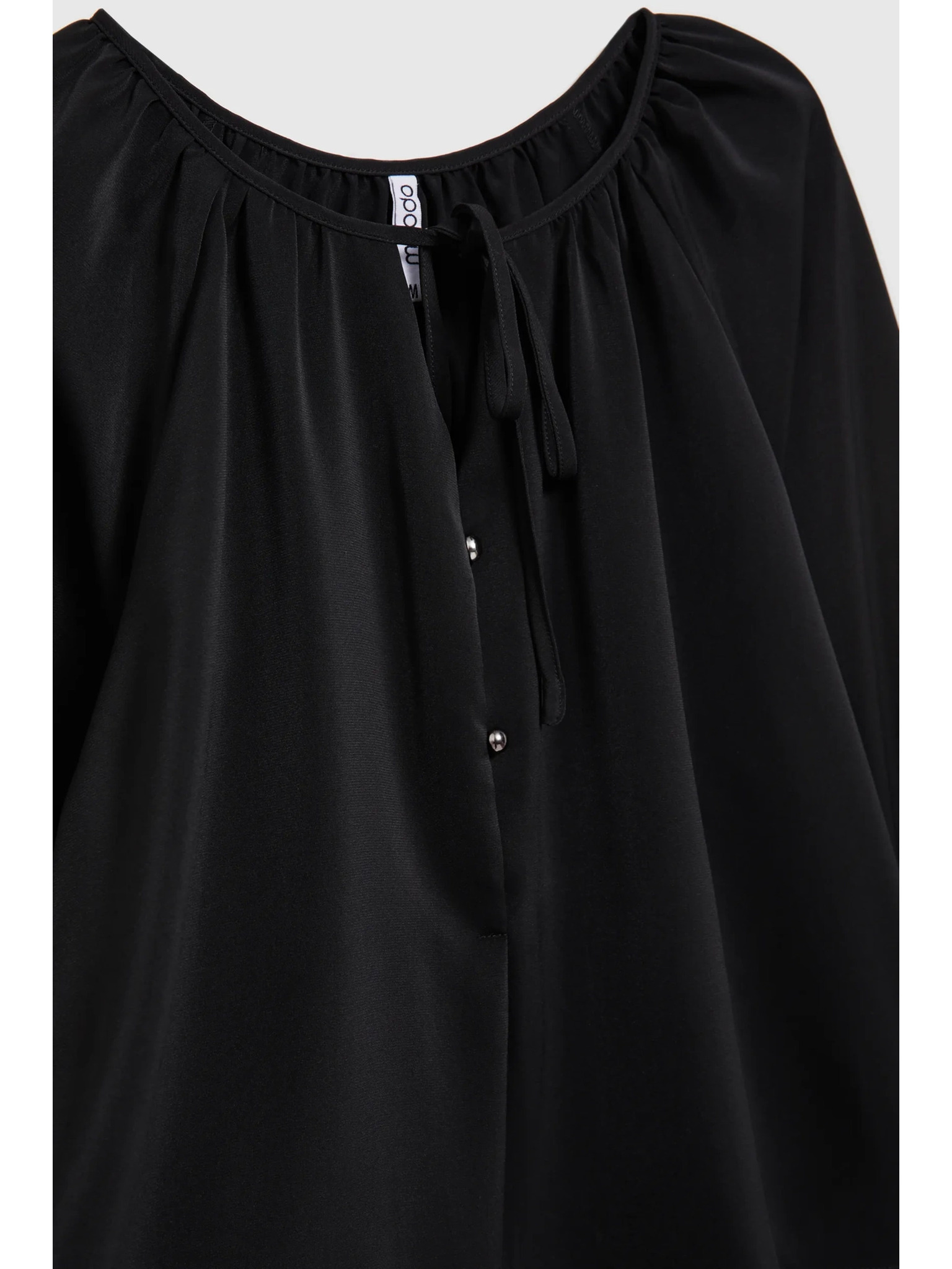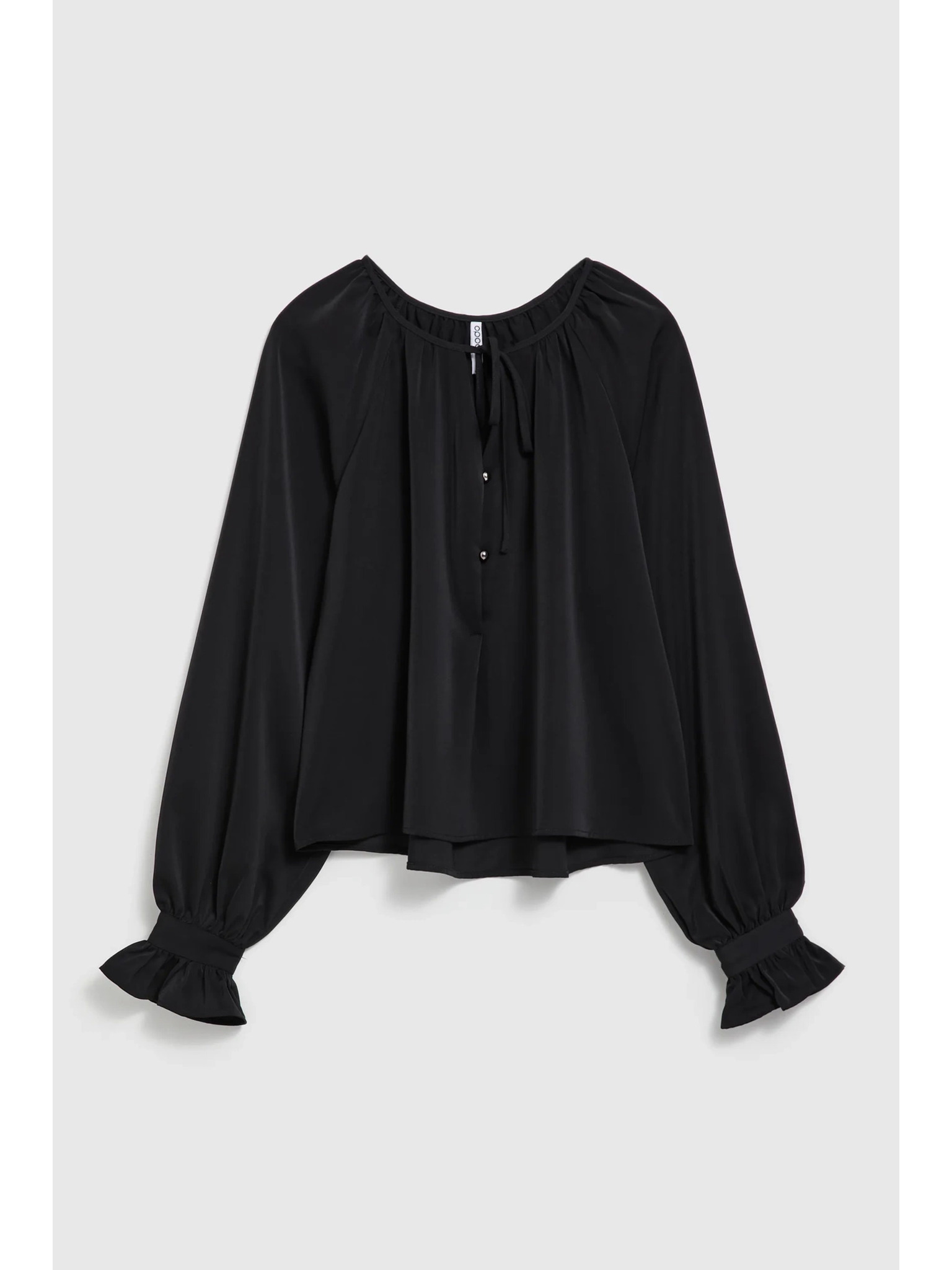 Čierna košeľa s naberanými rukávmi a viazaným výstrihom Moodo