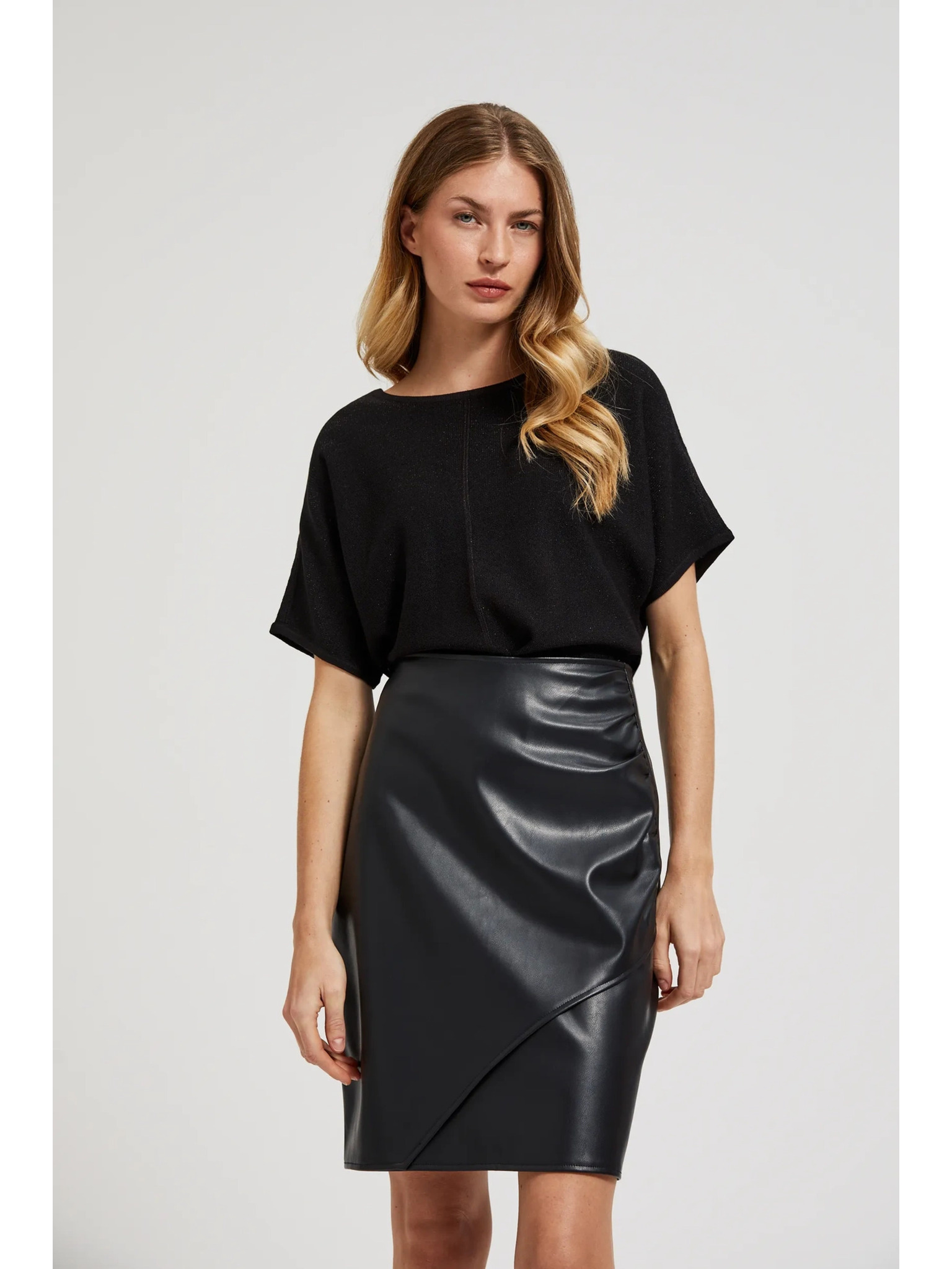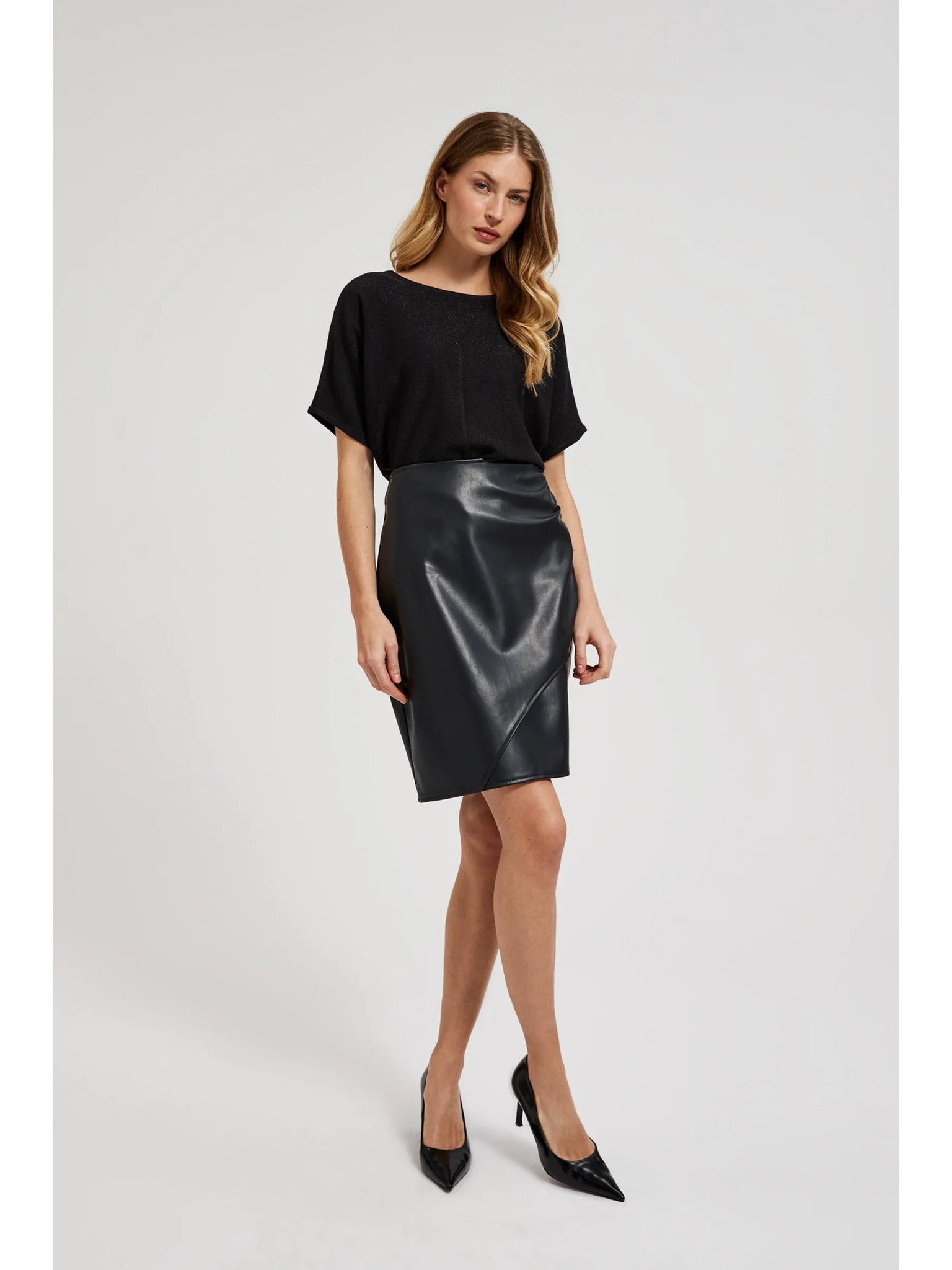 Ceruzková sukňa z ekokože čierna Moodo