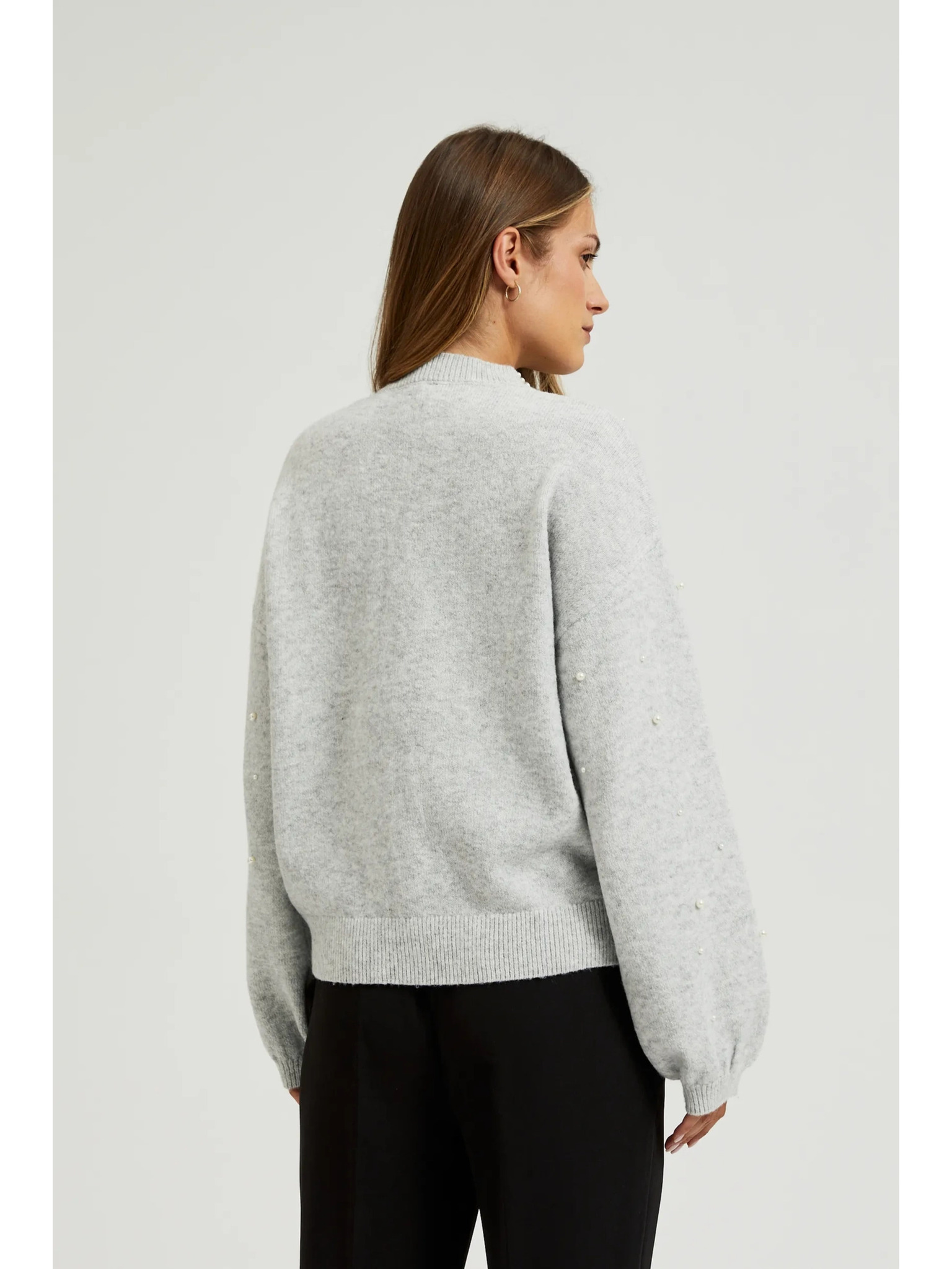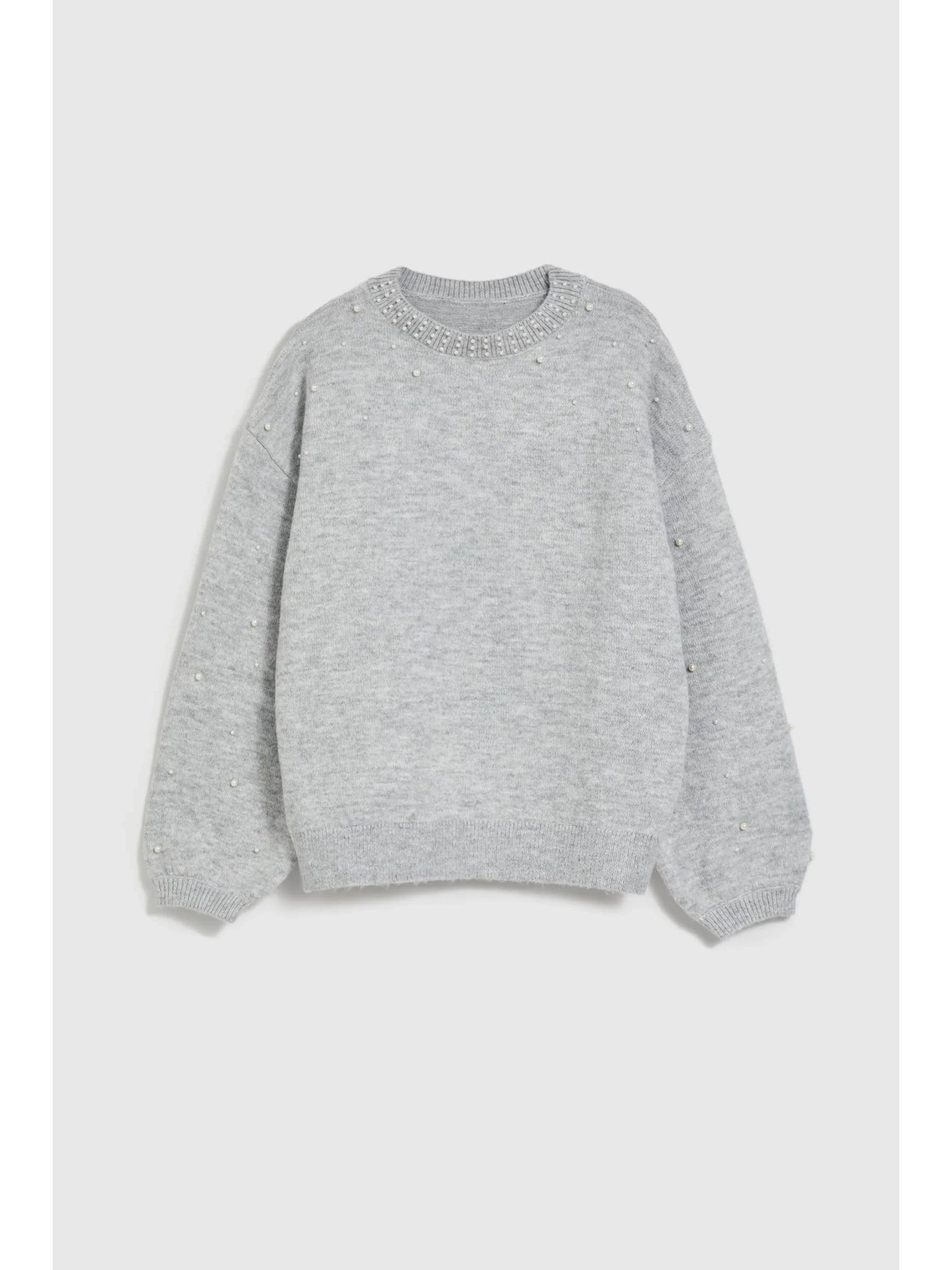 Sveter zdobený perličkami šedý Moodo