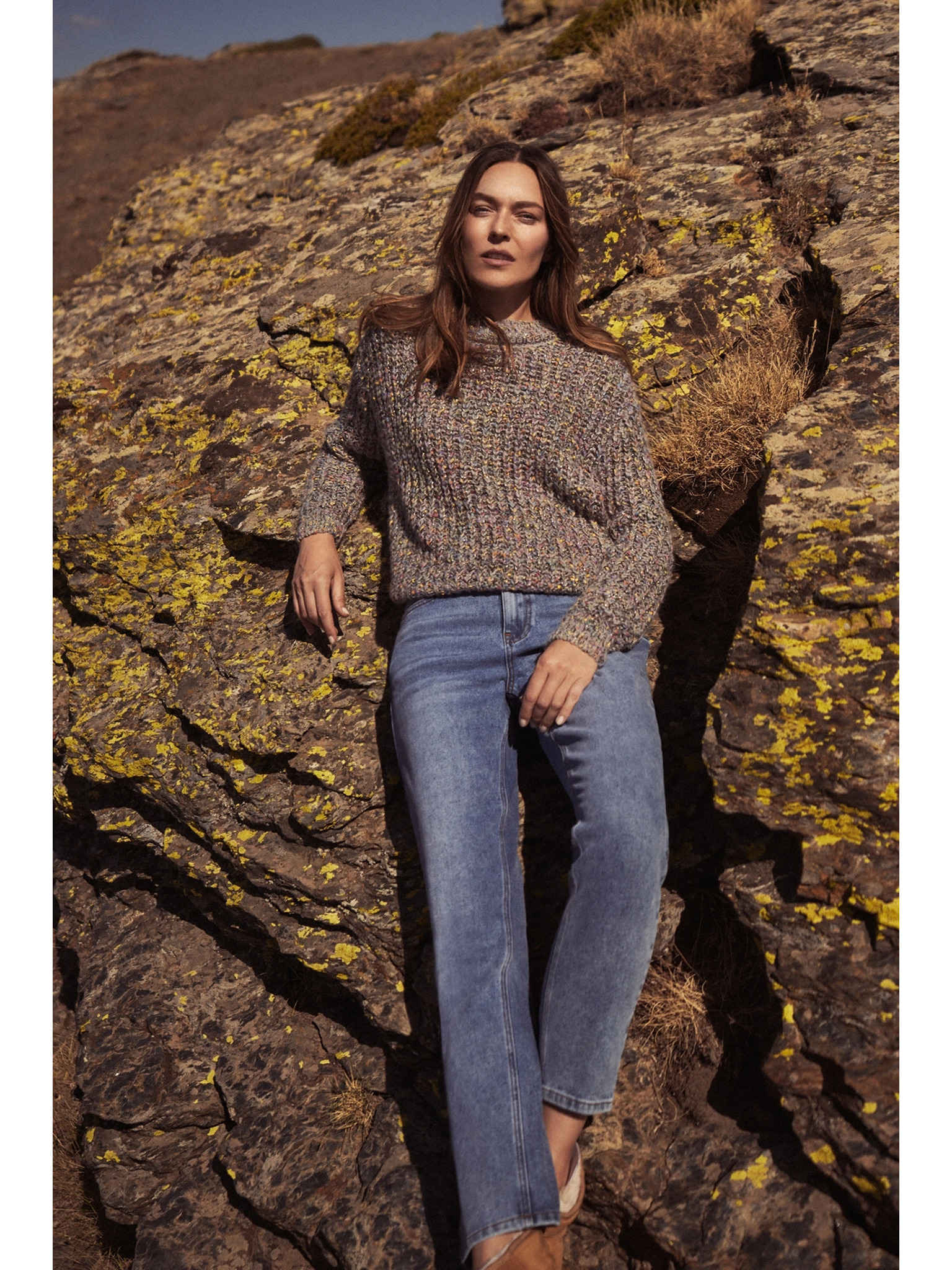 Sveter s výstrihom ku krku zo vzdušnej príze Marks & Spencer šedá