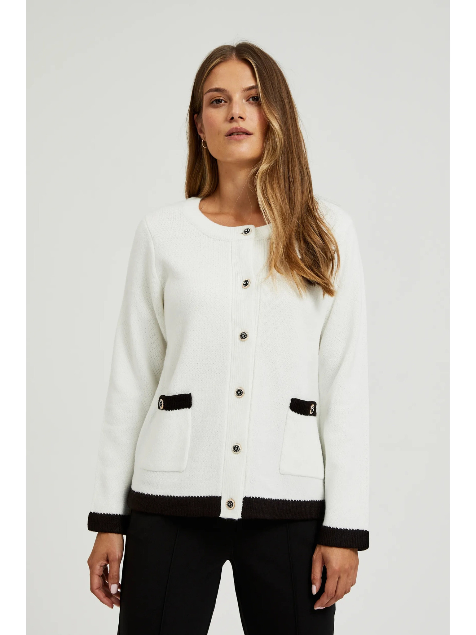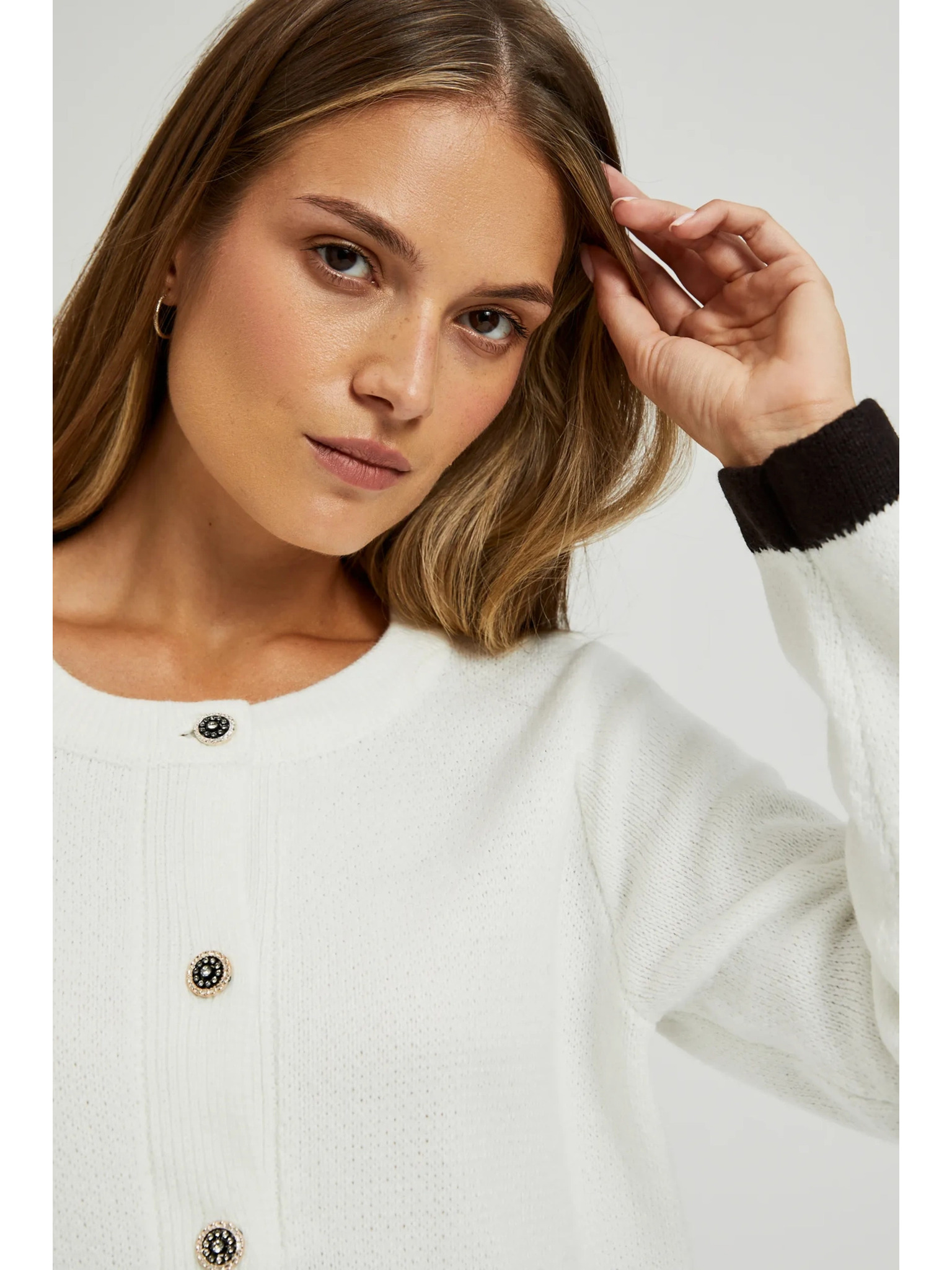 Rozopínací sveter so zdobnými gombíkmi biely Moodo
