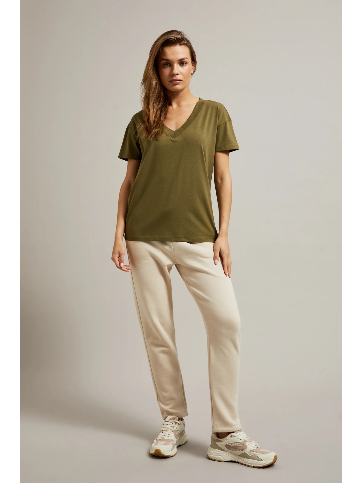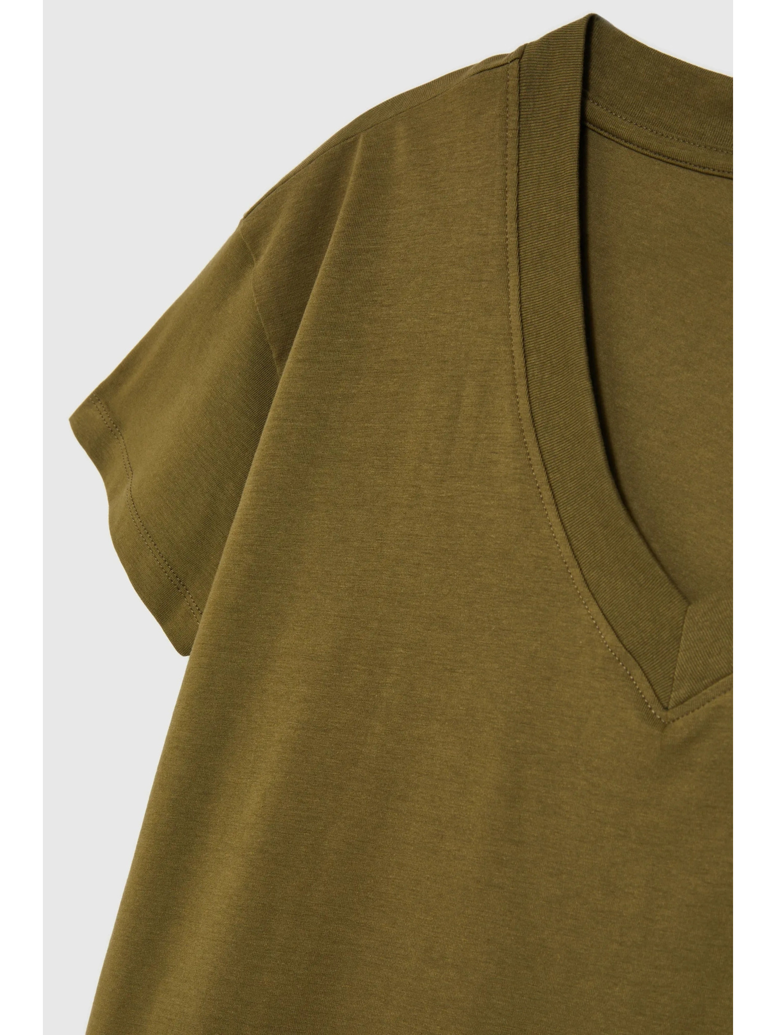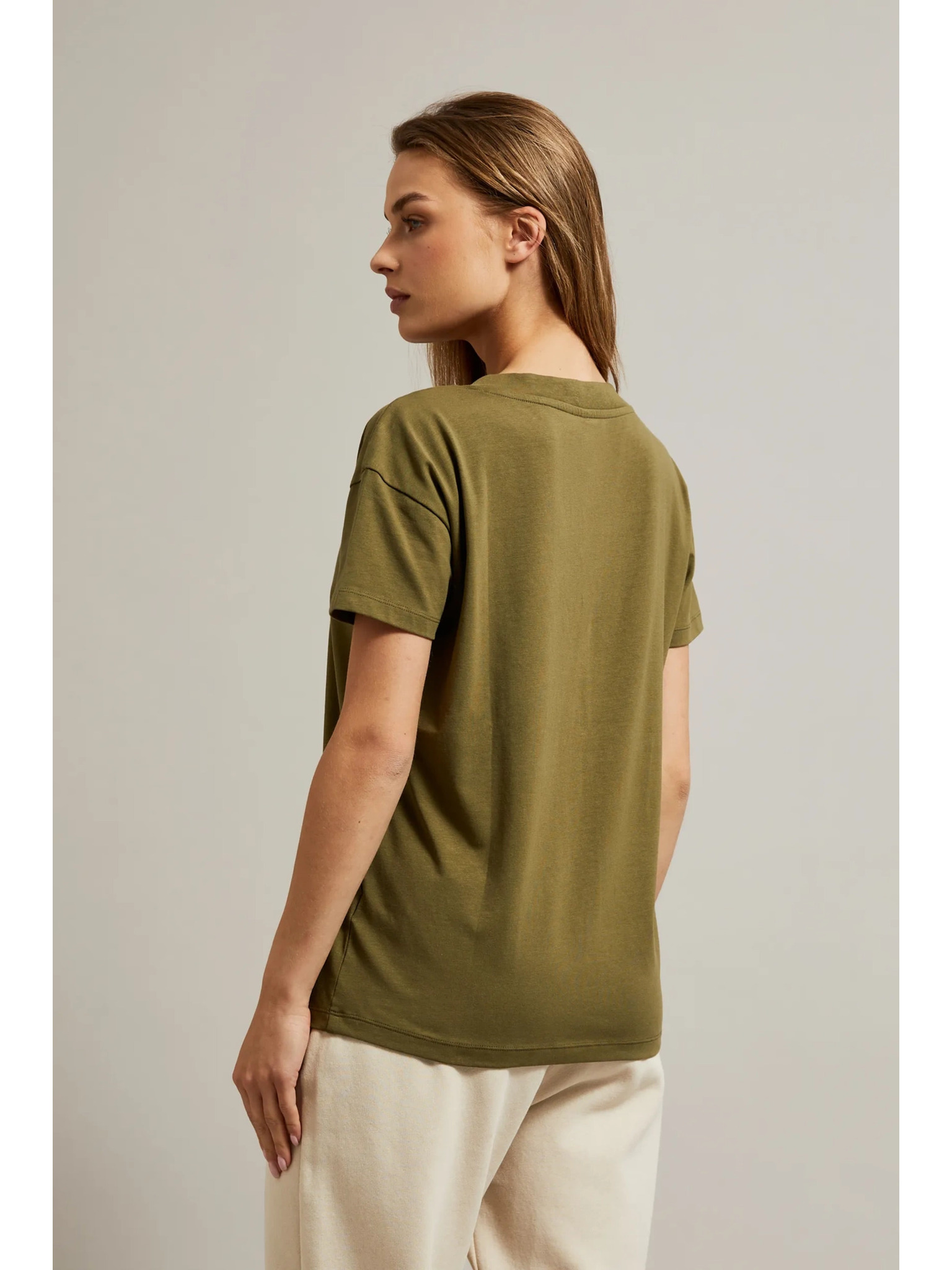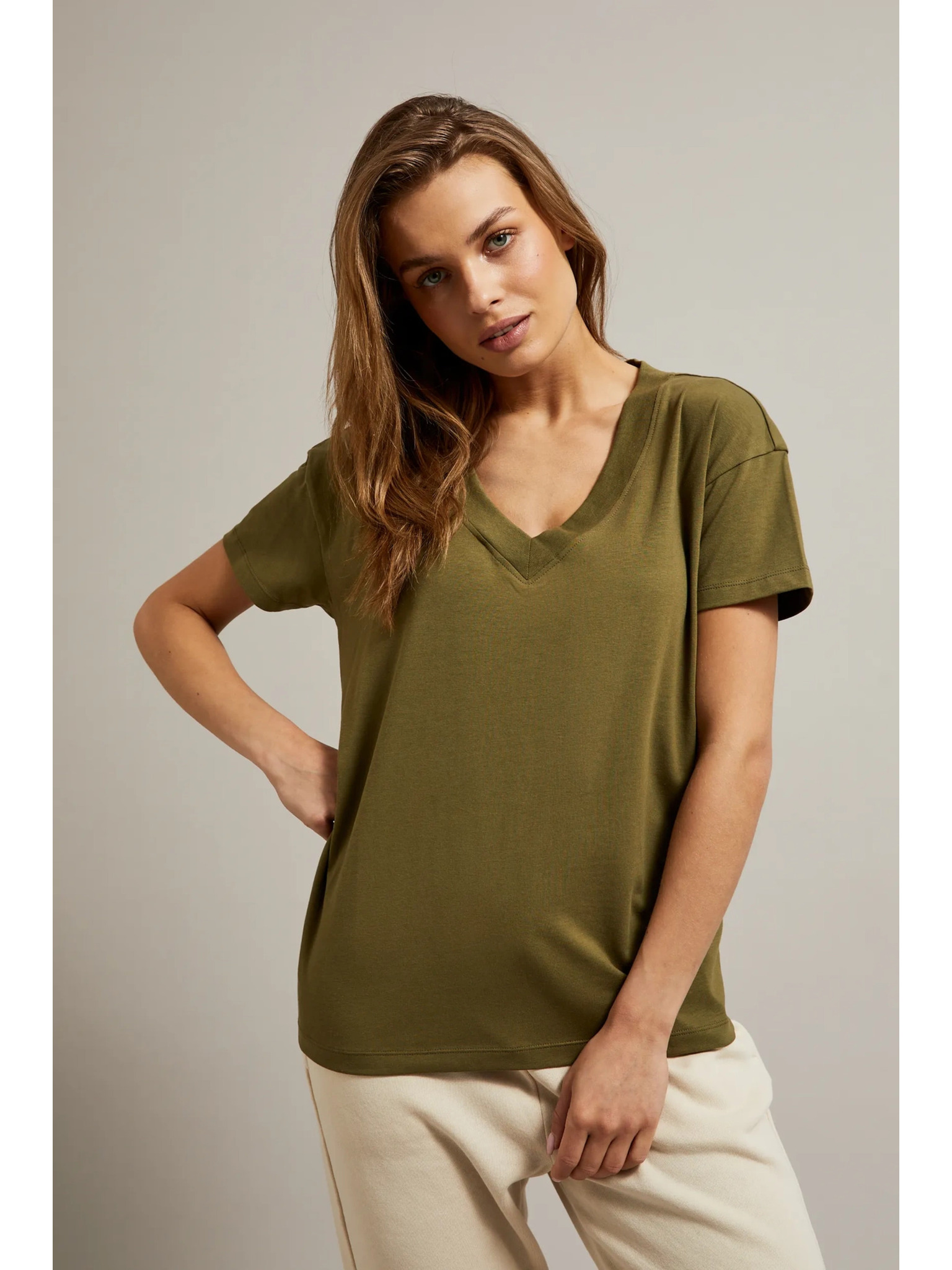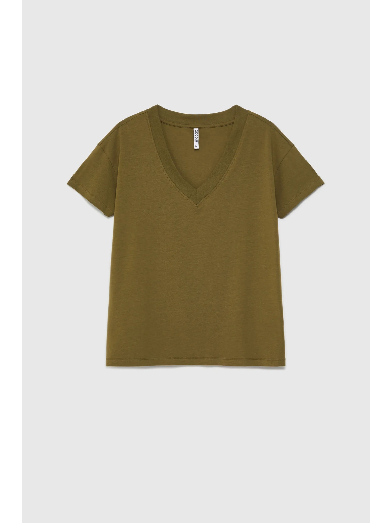 Bavlnené tričko so V-výstrihom, olivové Moodo