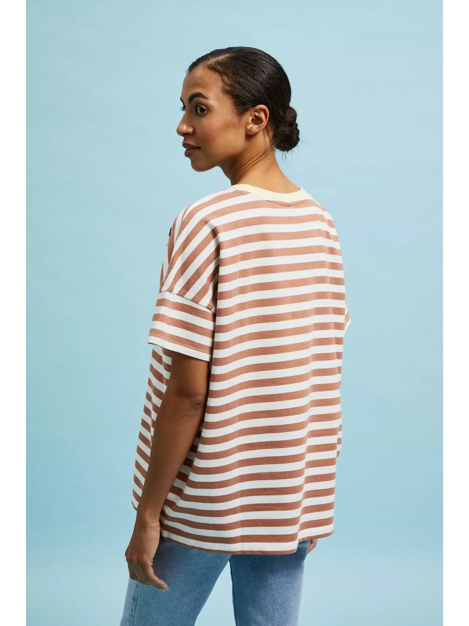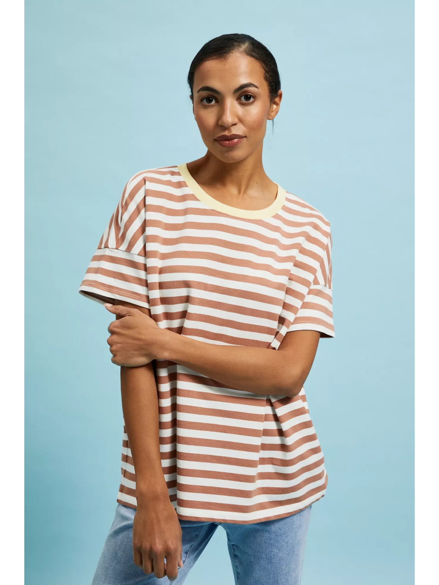 Hnedé dámske pruhované tričko ORSAY