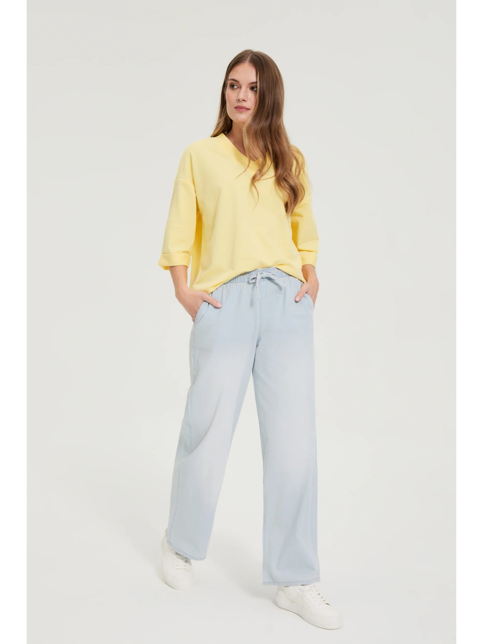 Džínsy so širokými nohavicami svetlomodré Moodo