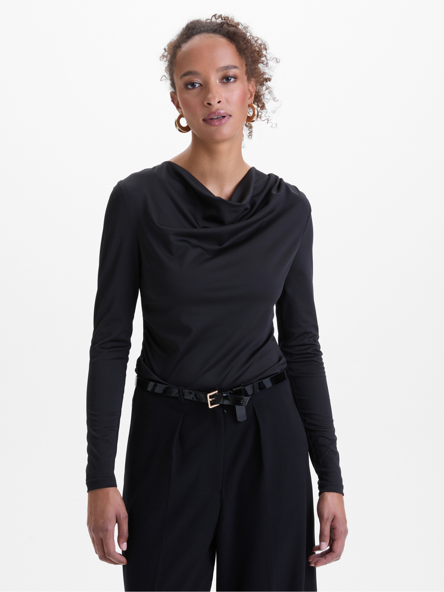 Lesklý top sa zaväzovaním na chrbte čierny Moodo