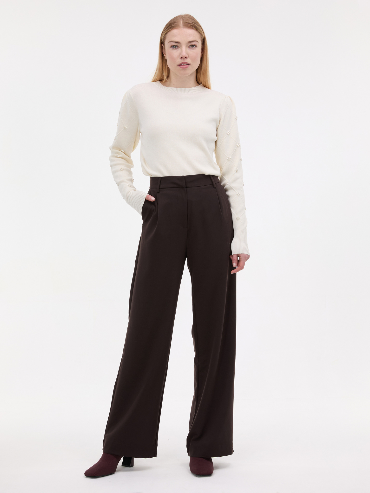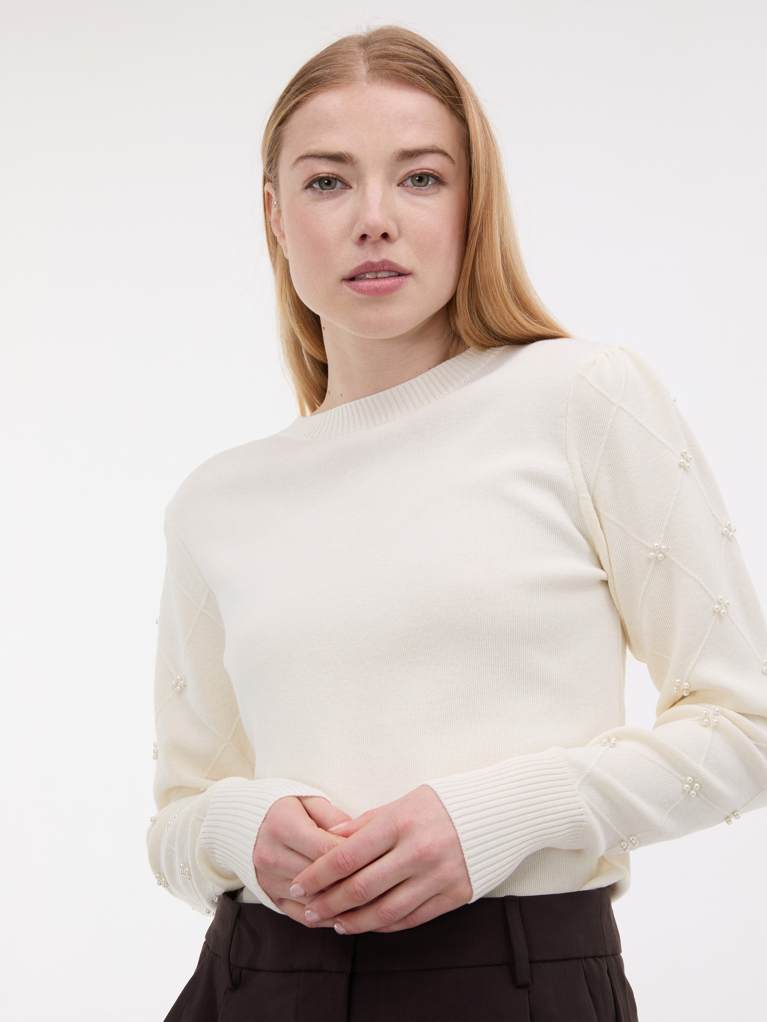 Sveter s perlami béžový Moodo