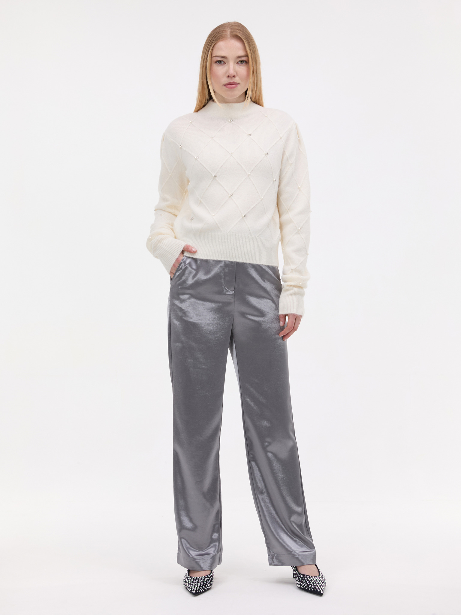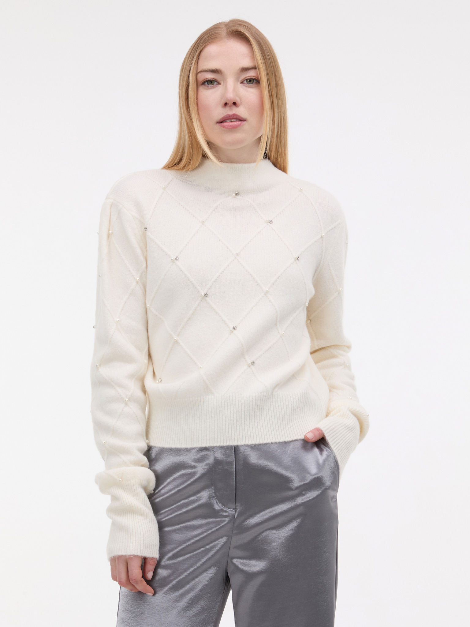 Krémový dámsky sveter s aplikáciou ORSAY