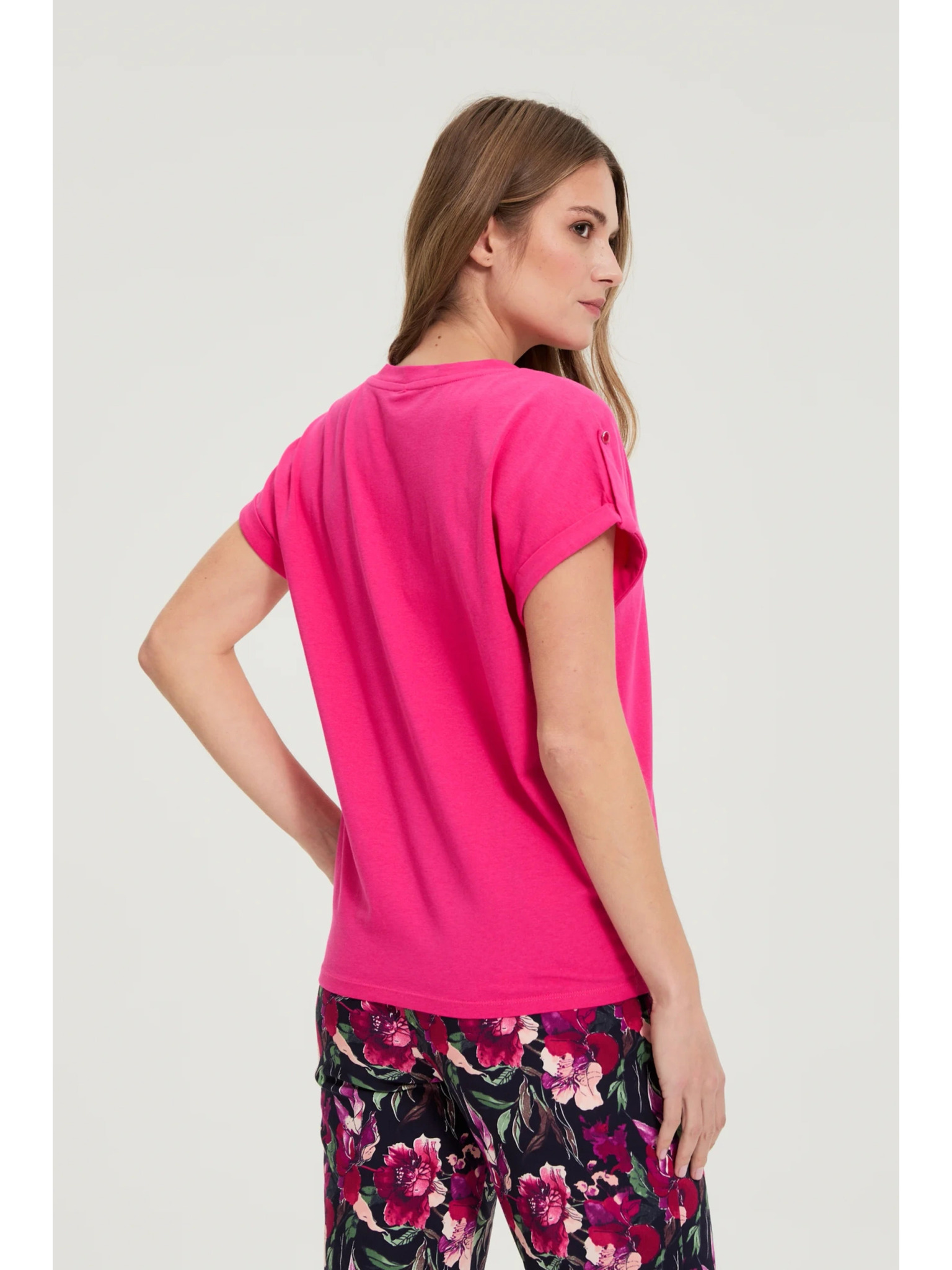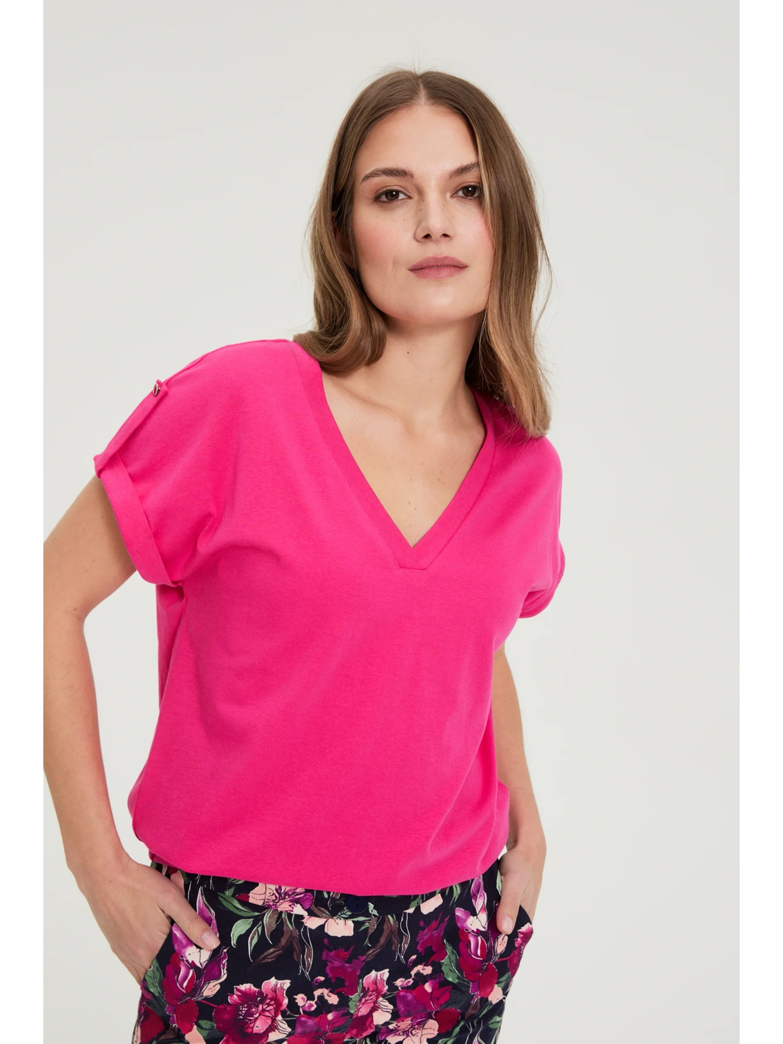 Bavlnené tričko s V výstrihom ružové Moodo