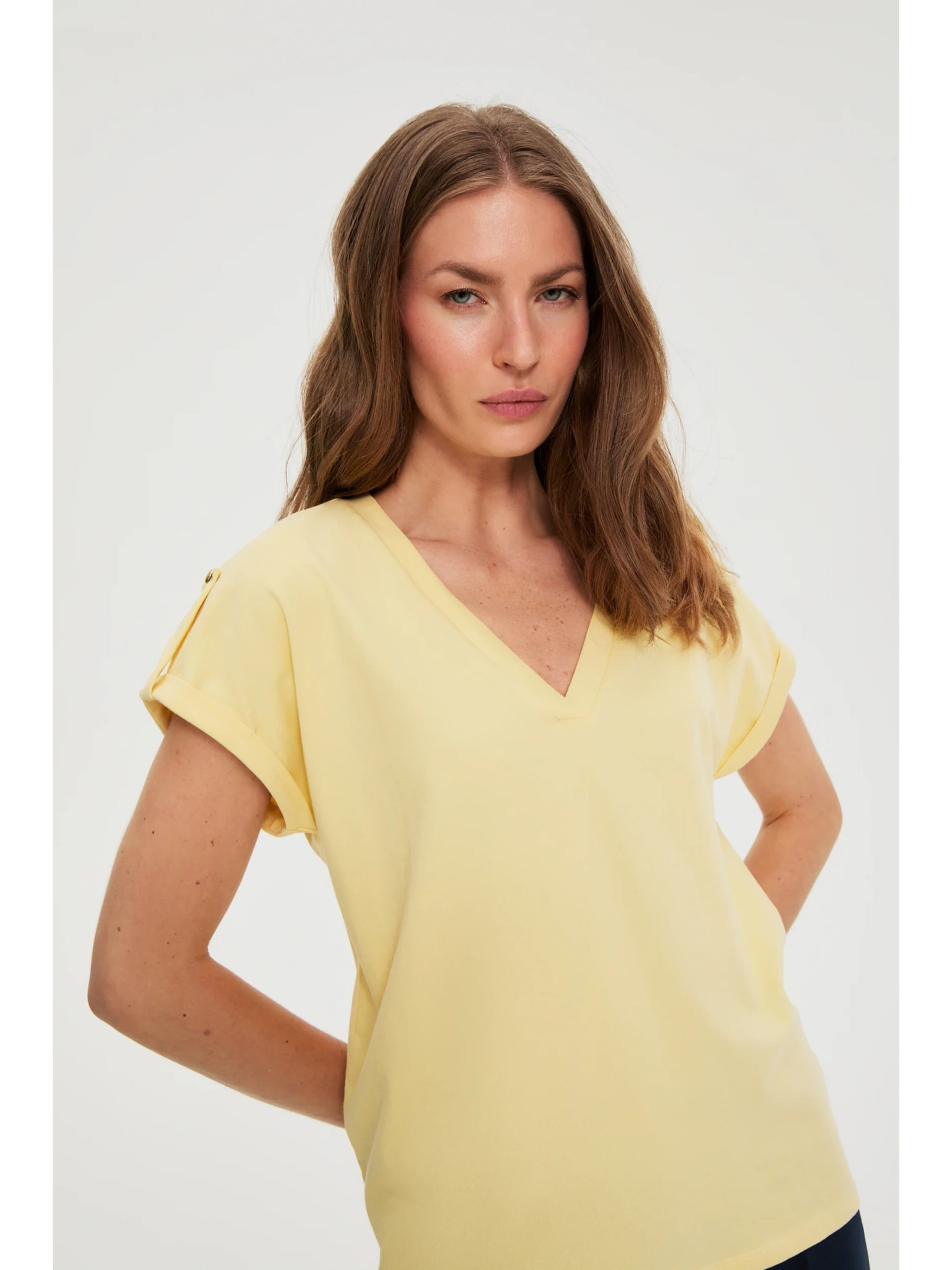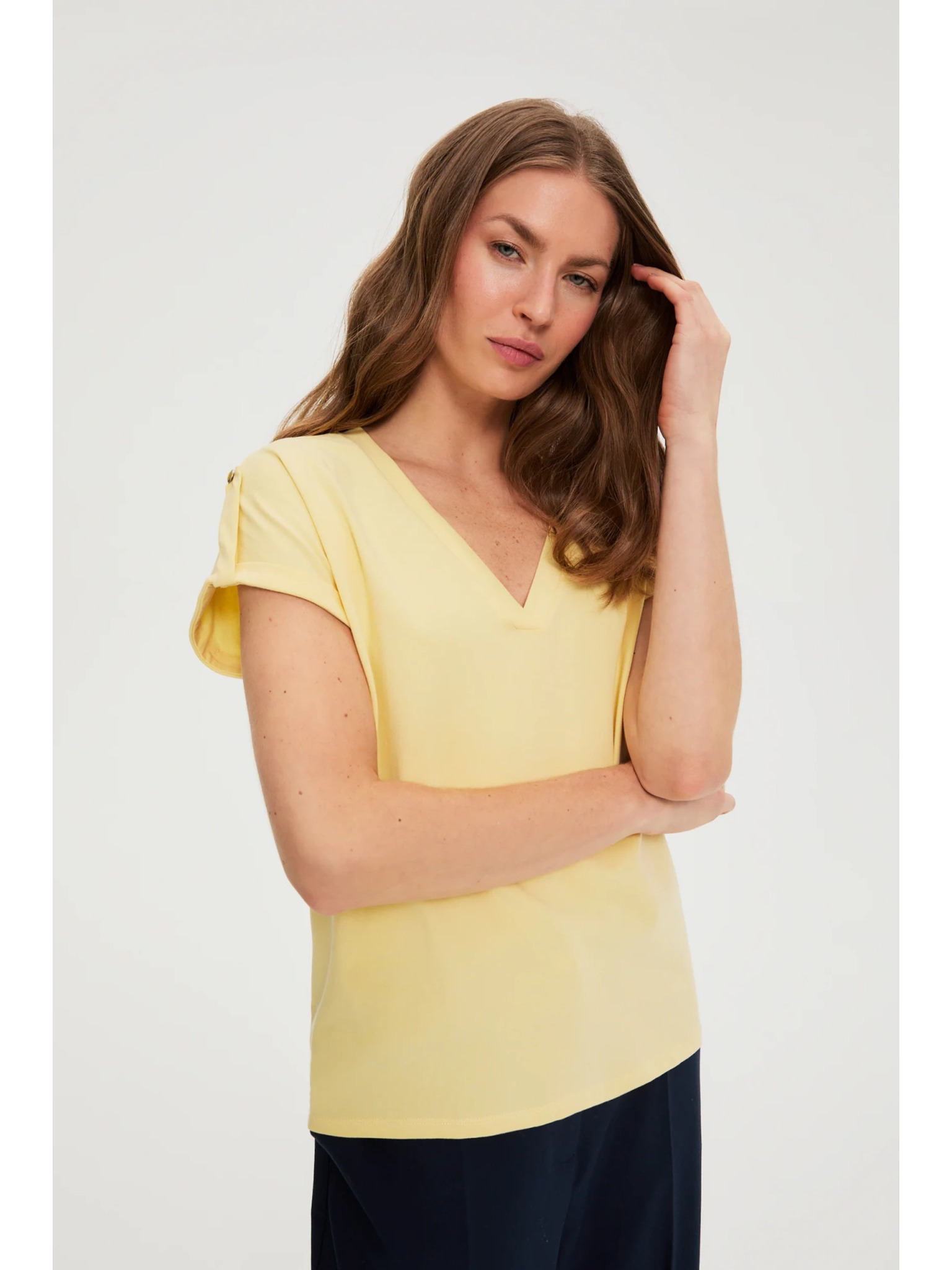 Blúzka s výstrihom do V žltá Moodo