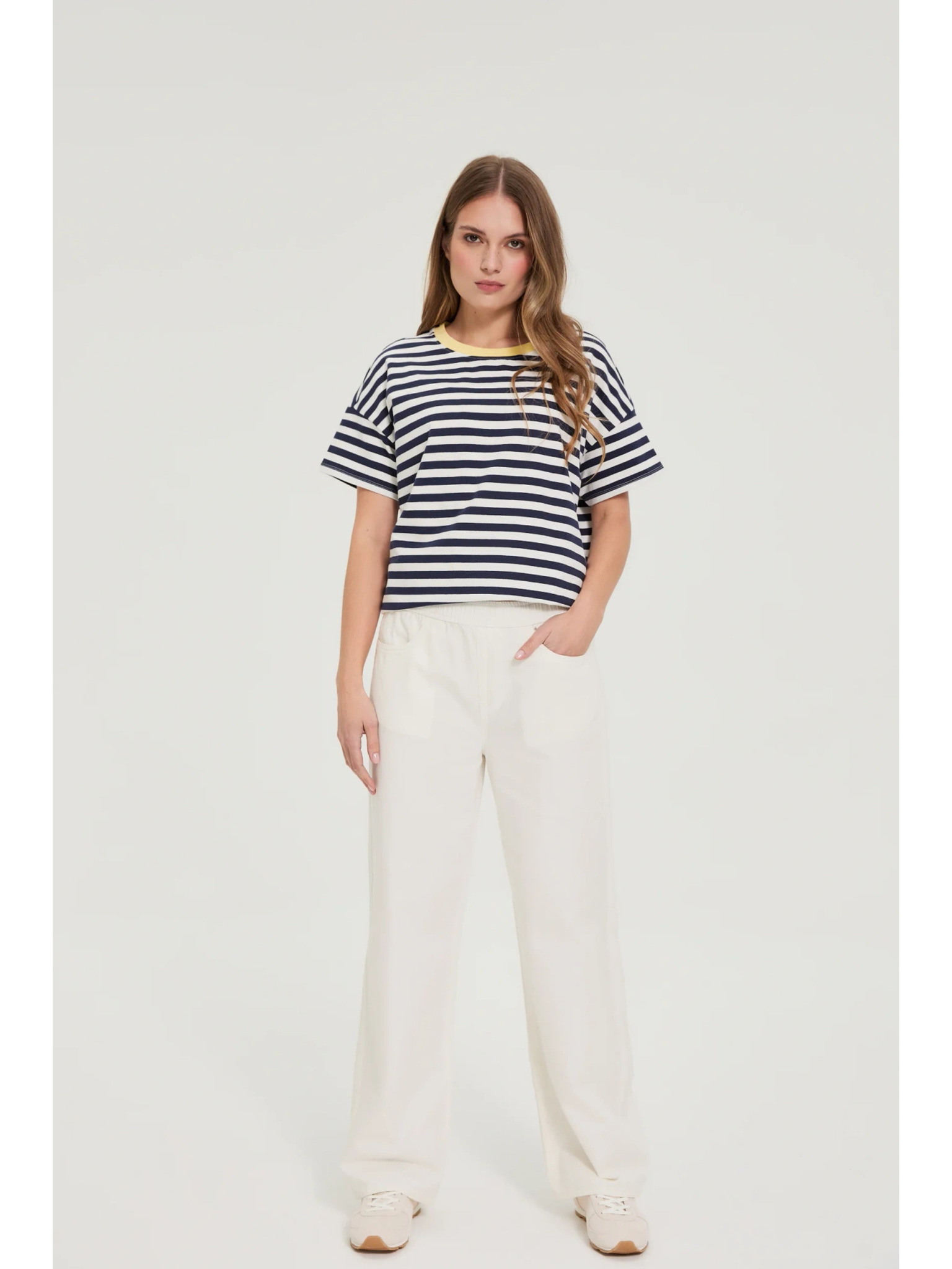 Béžové dámske pruhované tričko ORSAY