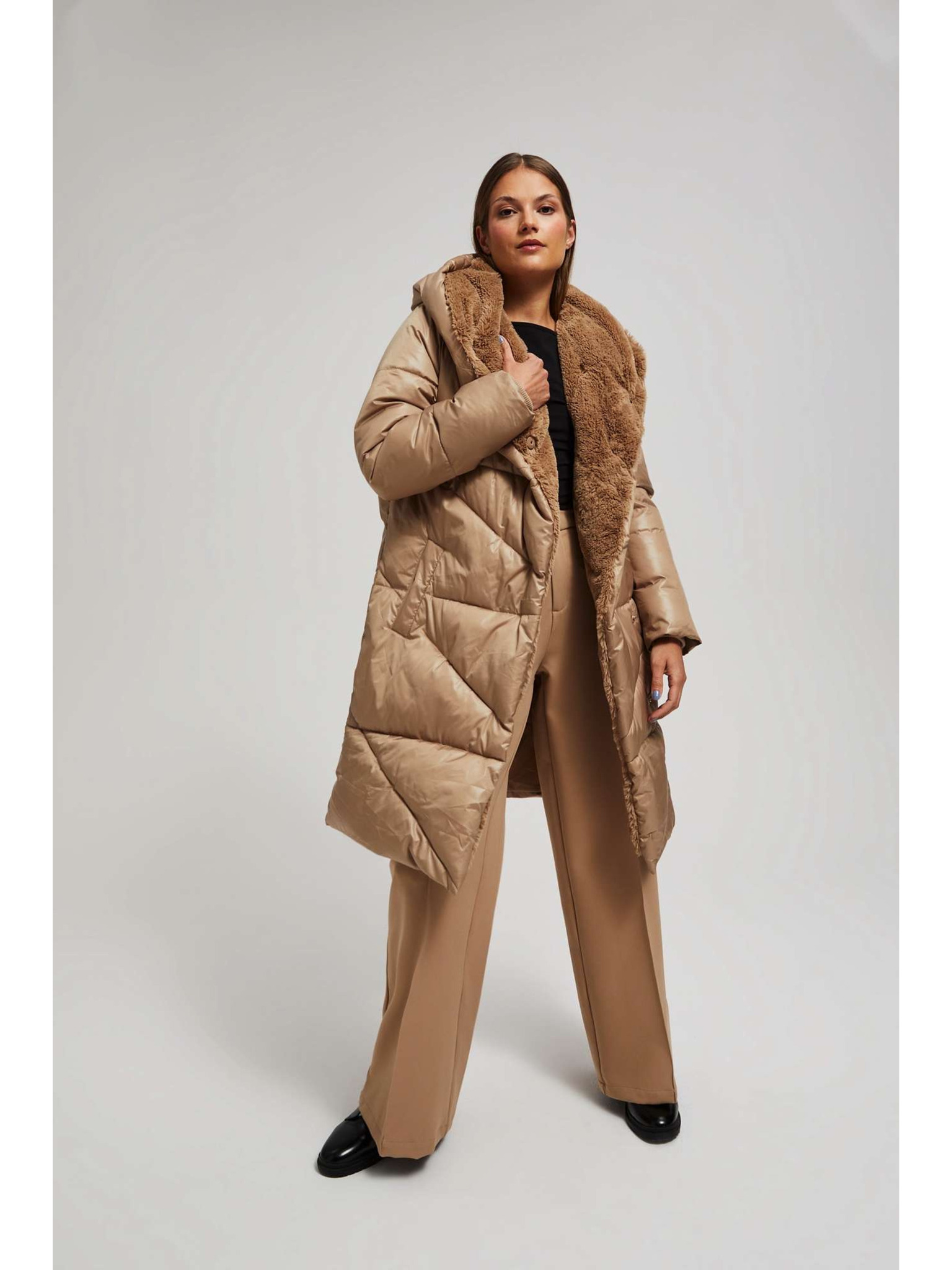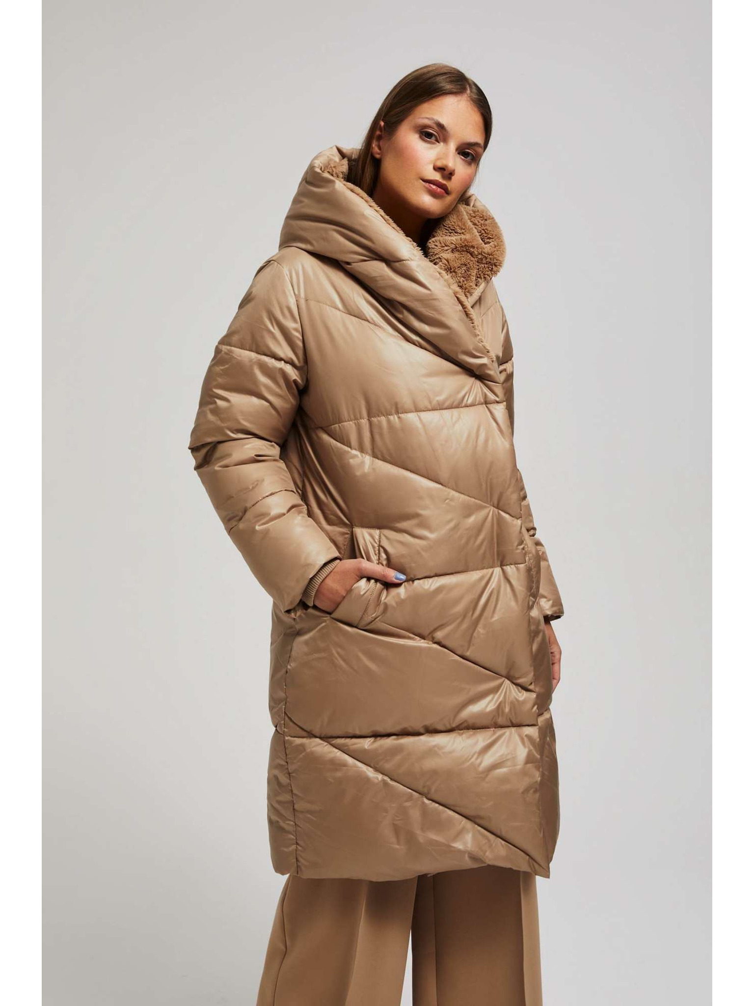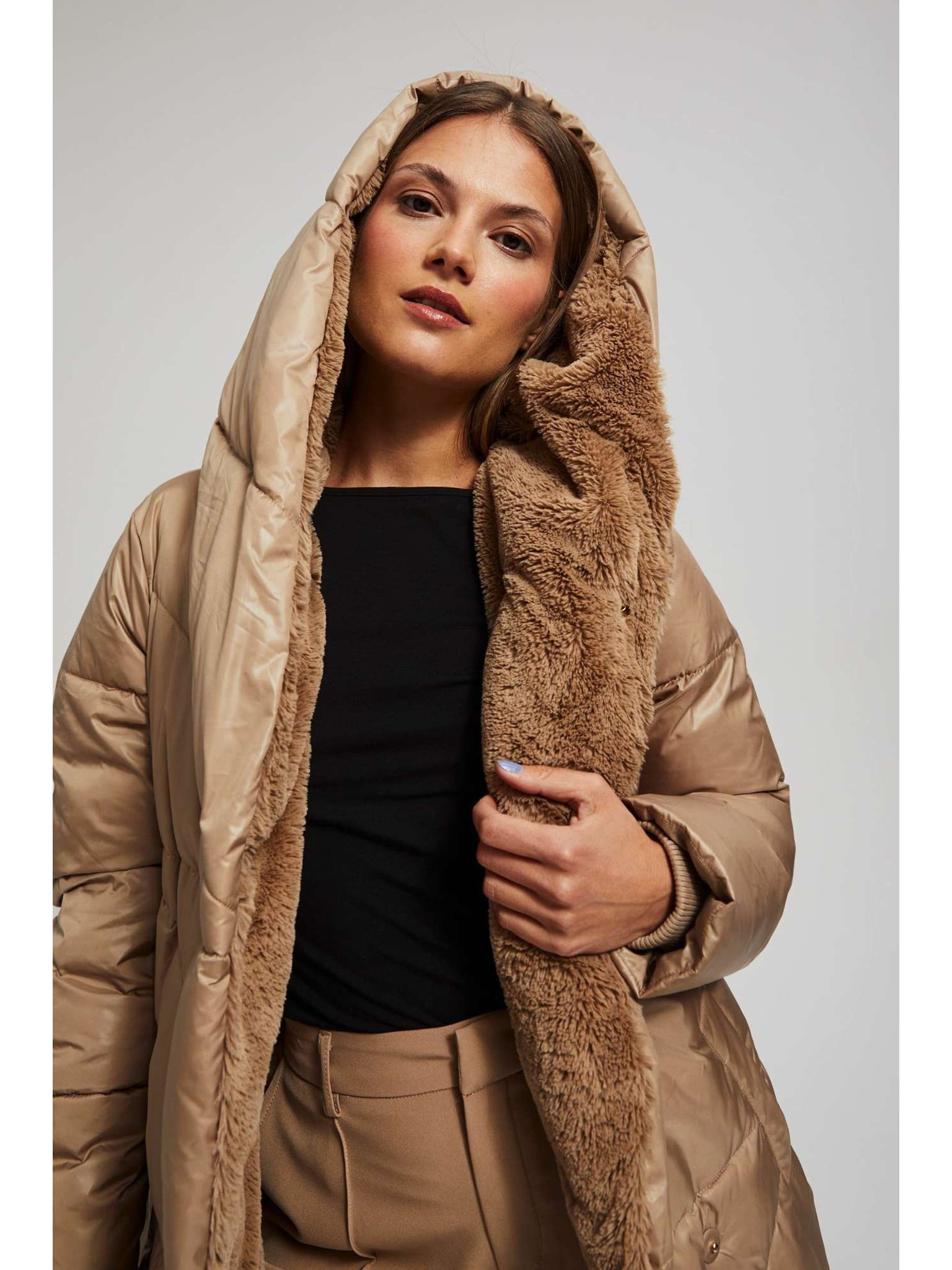 Bunda s prešívanou kapucňou hnedá Moodo