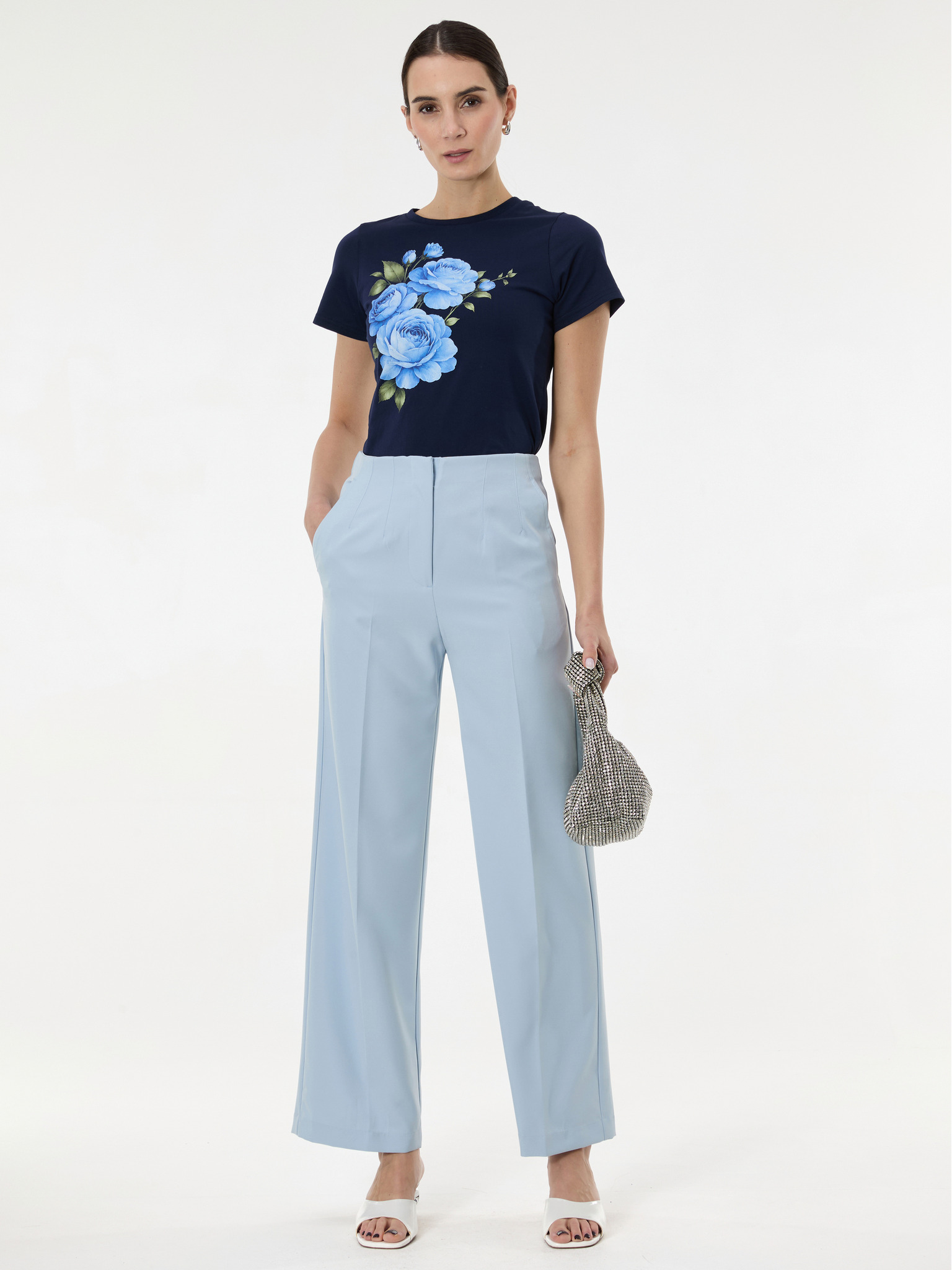 Svetlomodrá blúzka s okrúhlym výstrihom Moodo