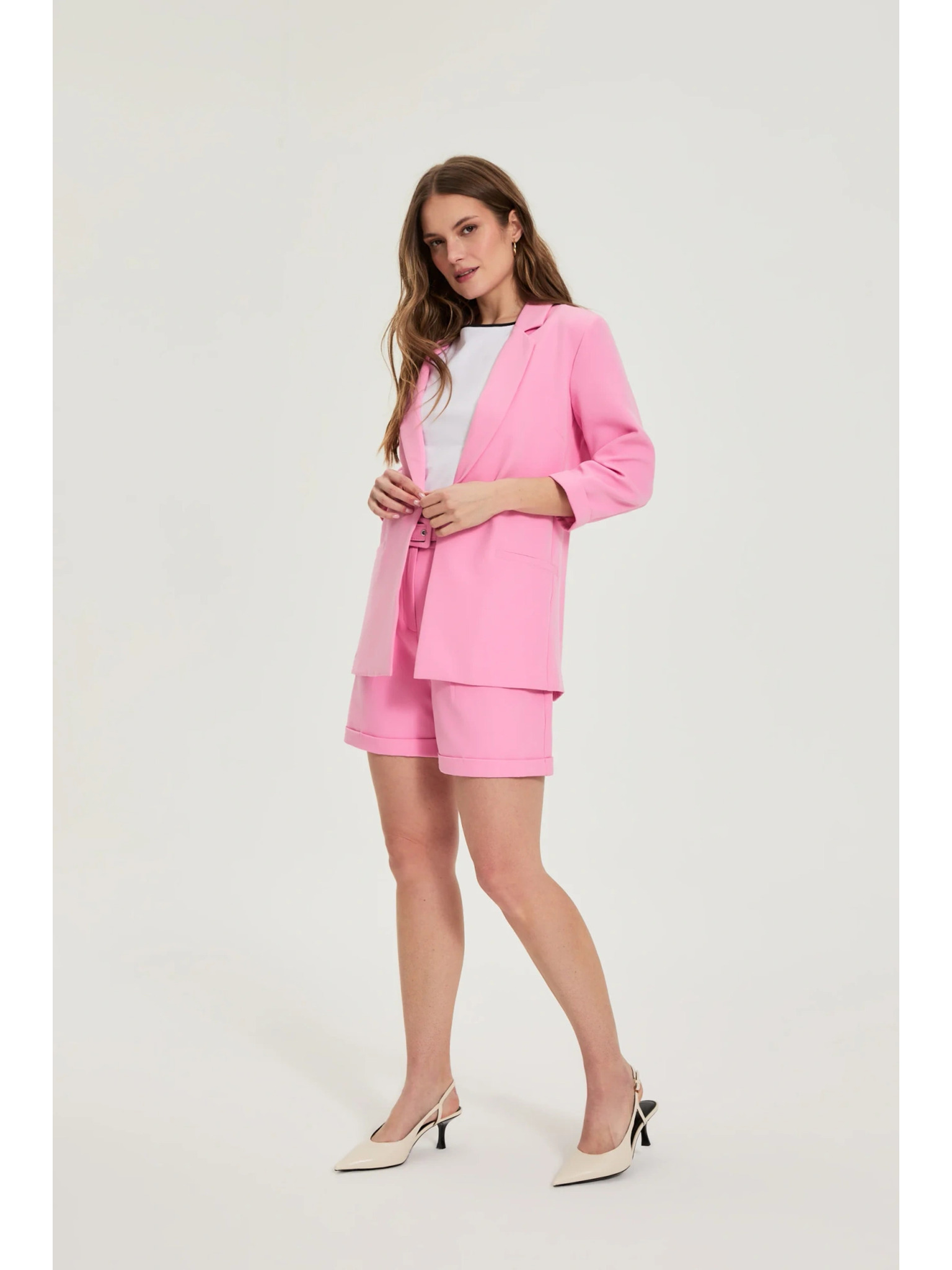 Ružové jednoradové sako s dlhým rukávom Moodo