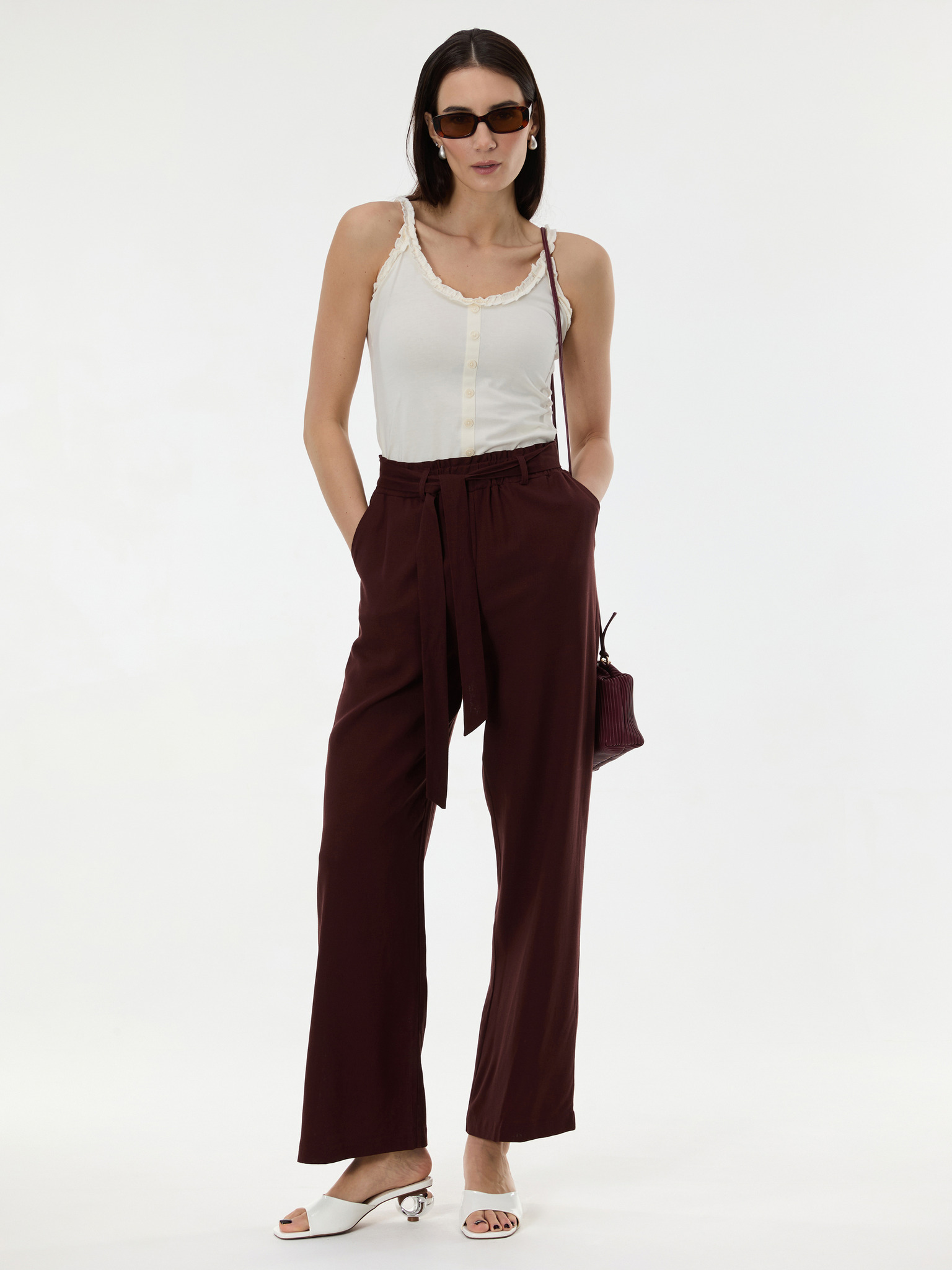 Hnedé nohavice so širokými nohavicami Moodo