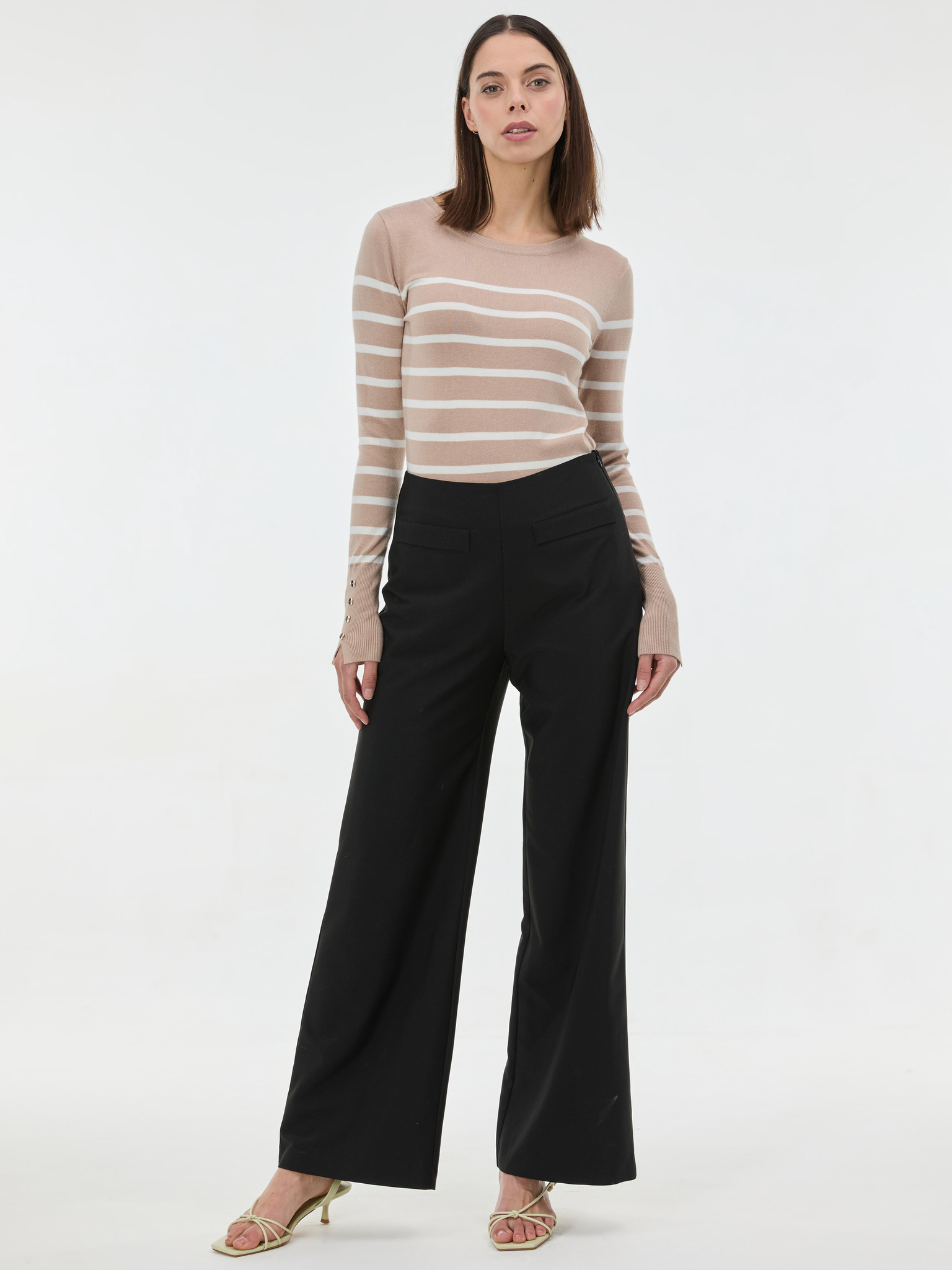 Sveter s prúžkami béžovo-čierny Moodo