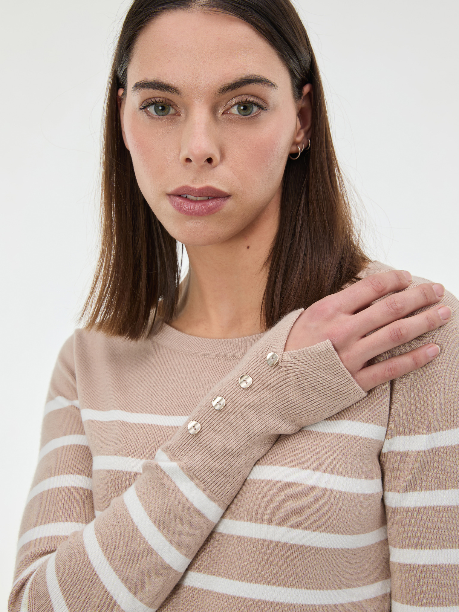 Béžový sveter s pruhmi Moodo