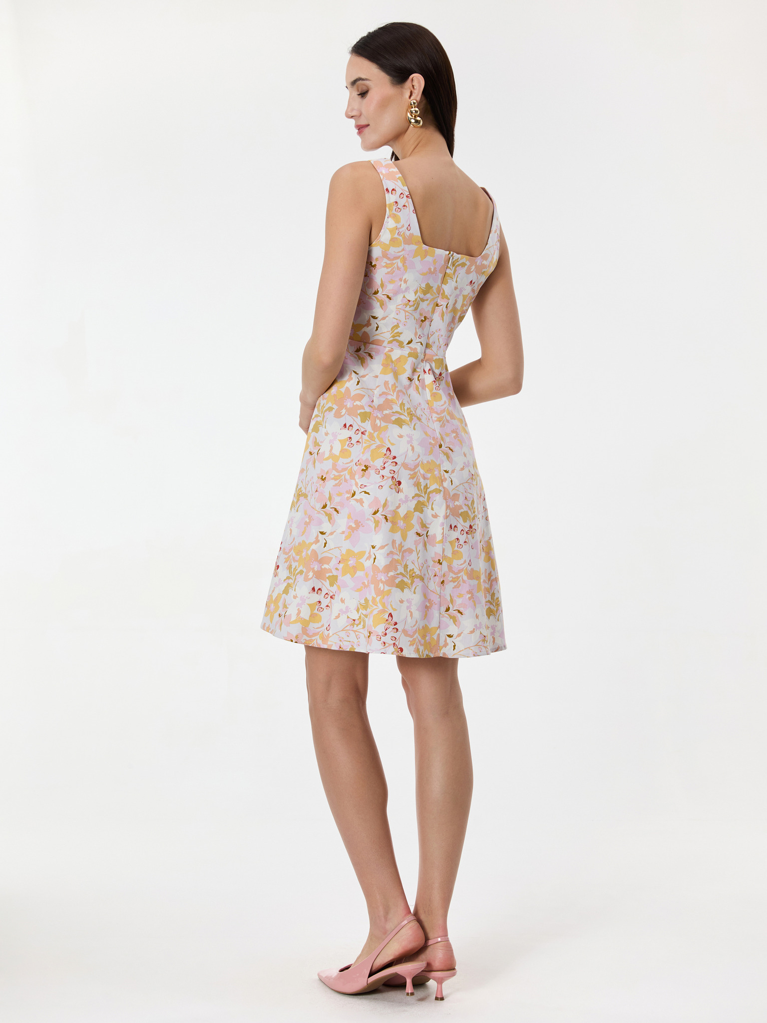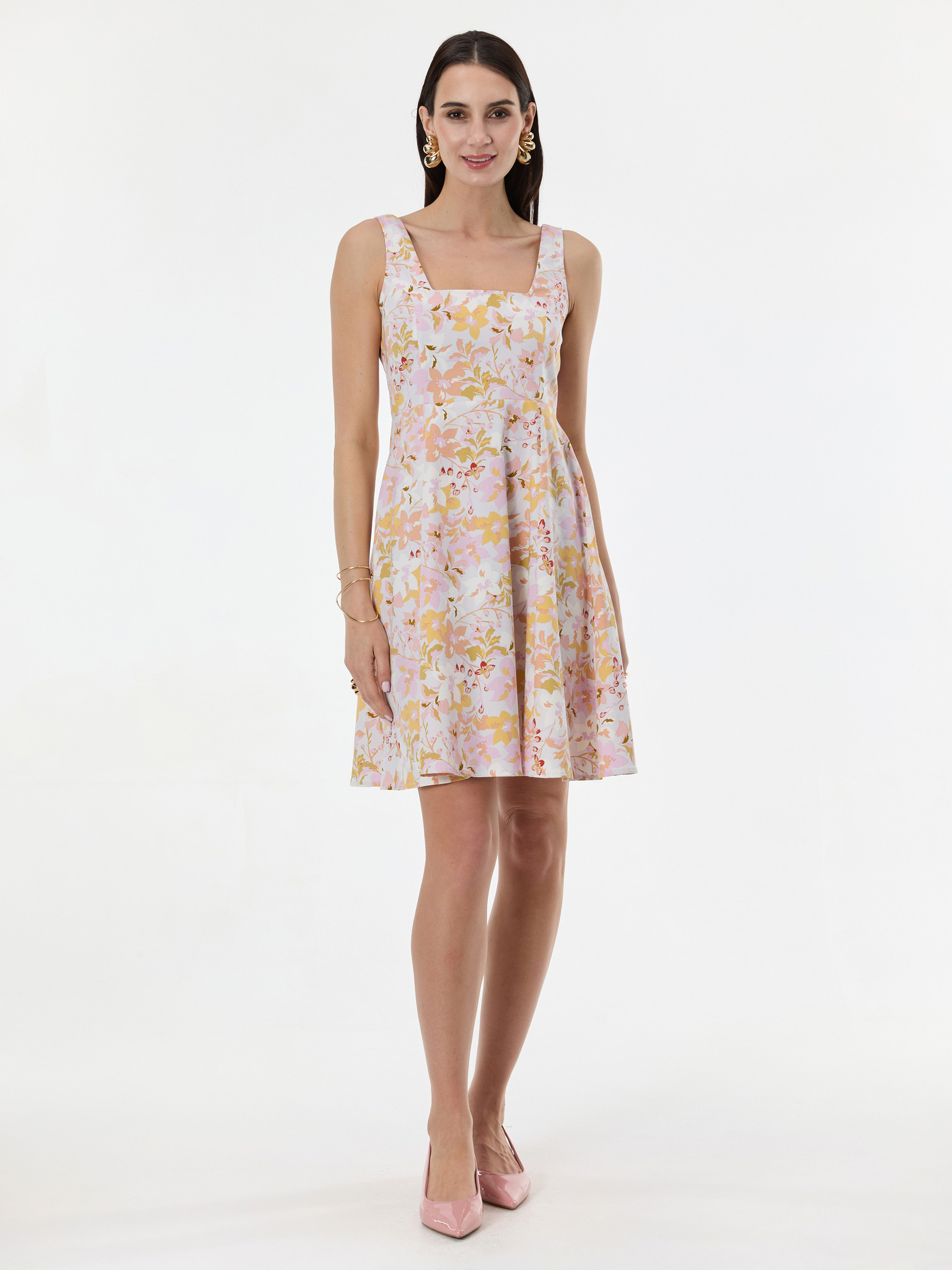 Svetloružové vzorované dámske šaty ku kolenám ORSAY